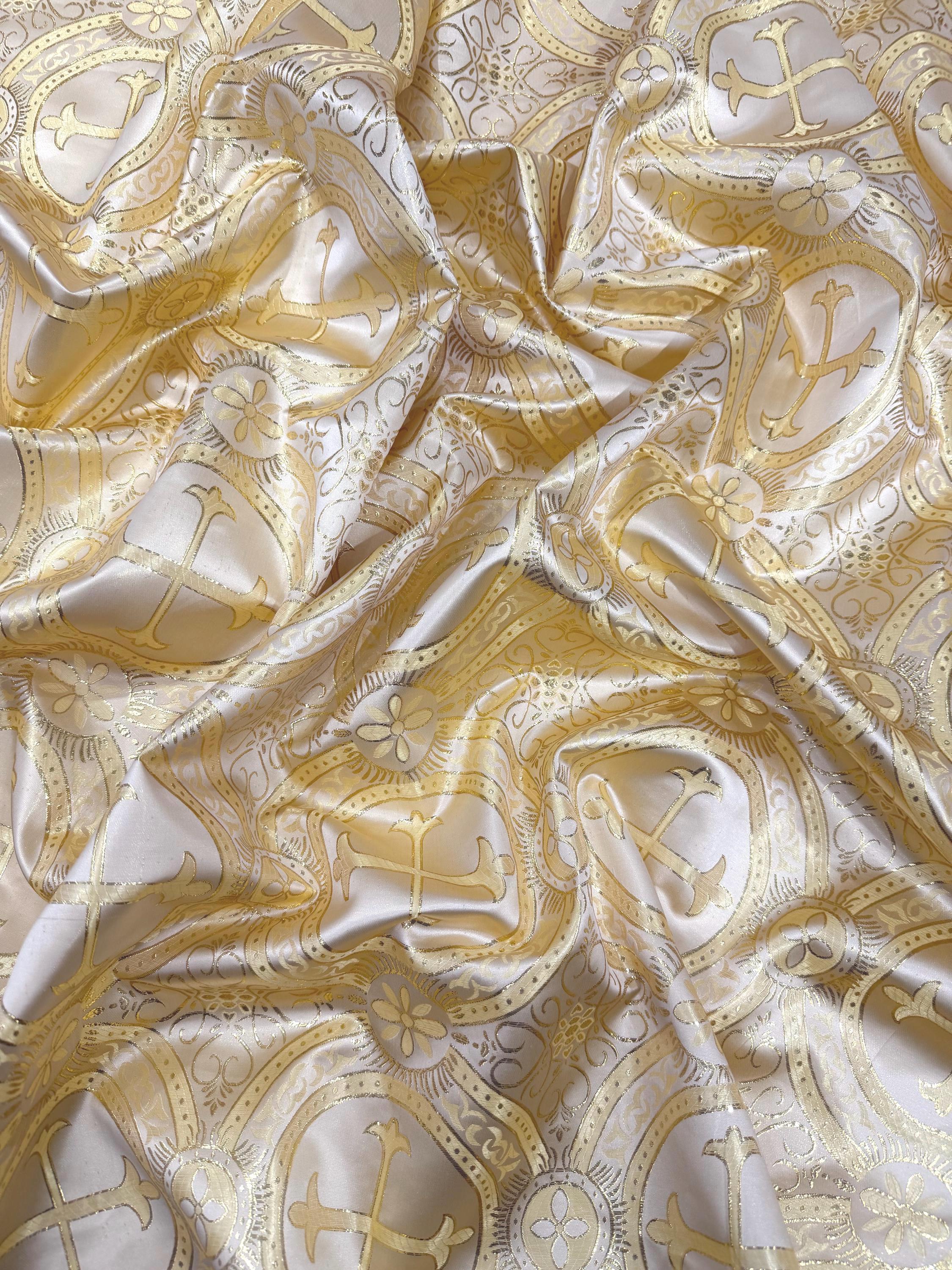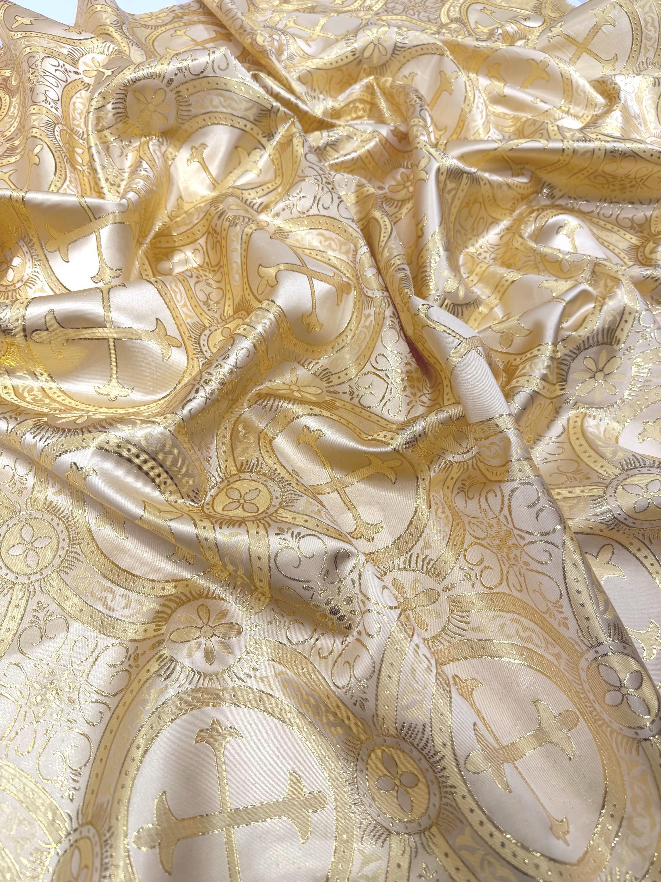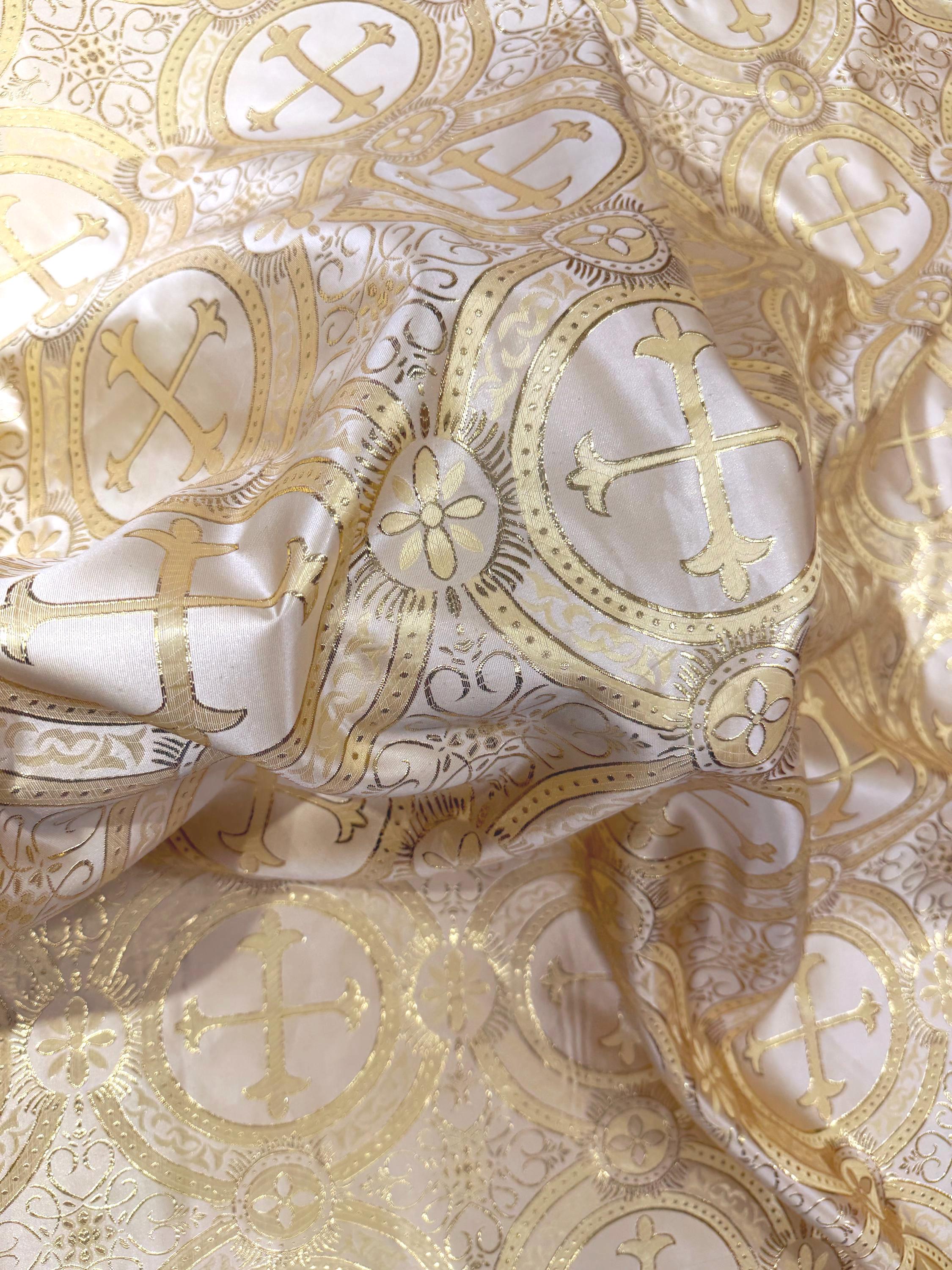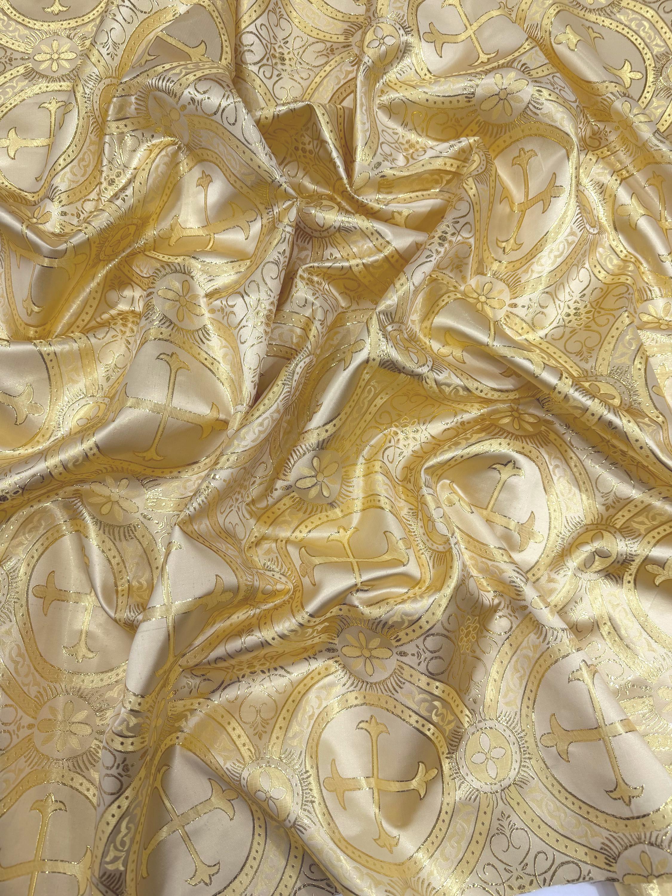 Gold/Gold Cross Brocade Fabric: Religious Vestment Material - 58/60" Wide