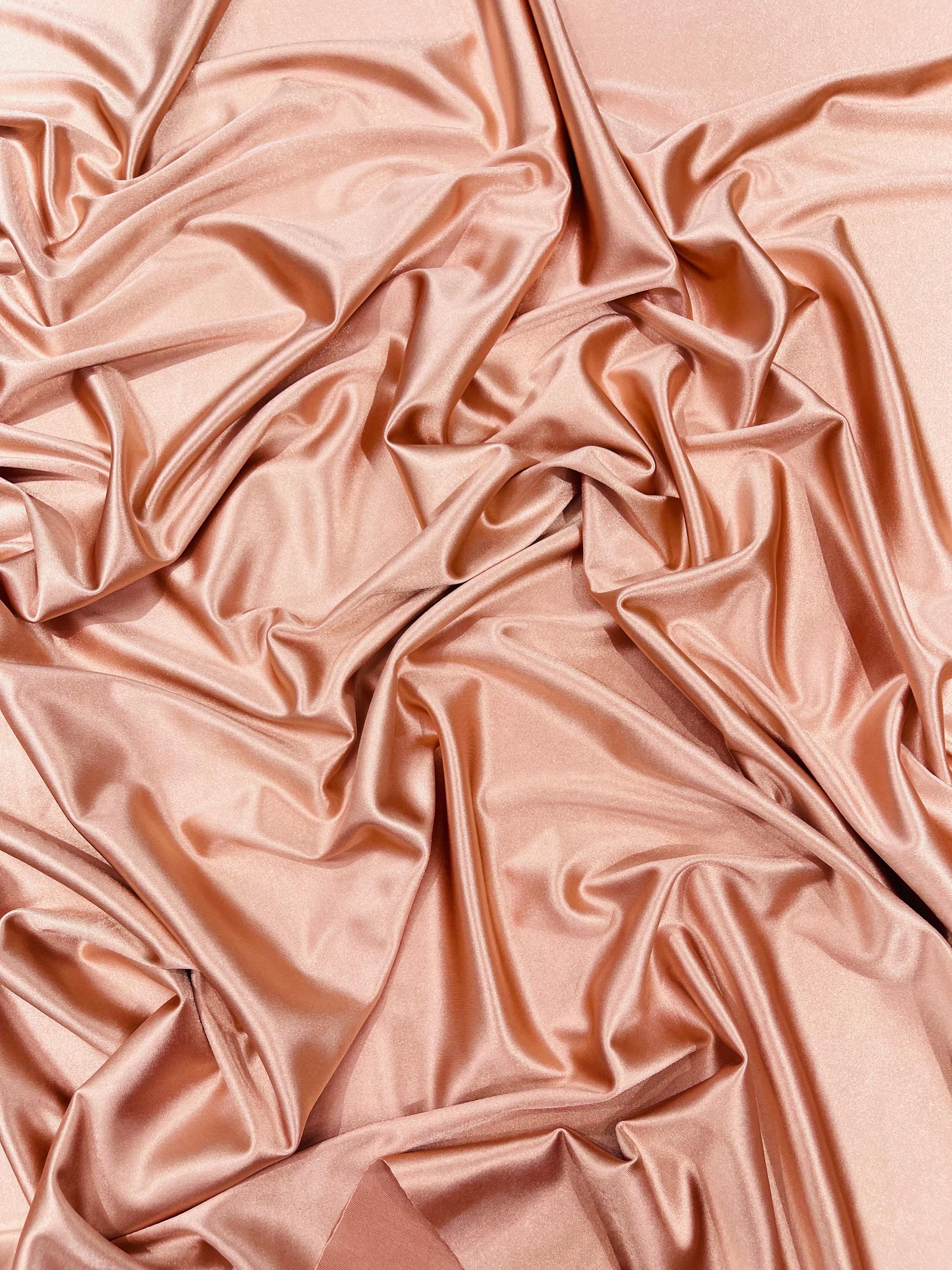 Shiny Rose Gold Polyester Spandex Stretch Fabric: 4-Way Stretch, Sold By The Yard