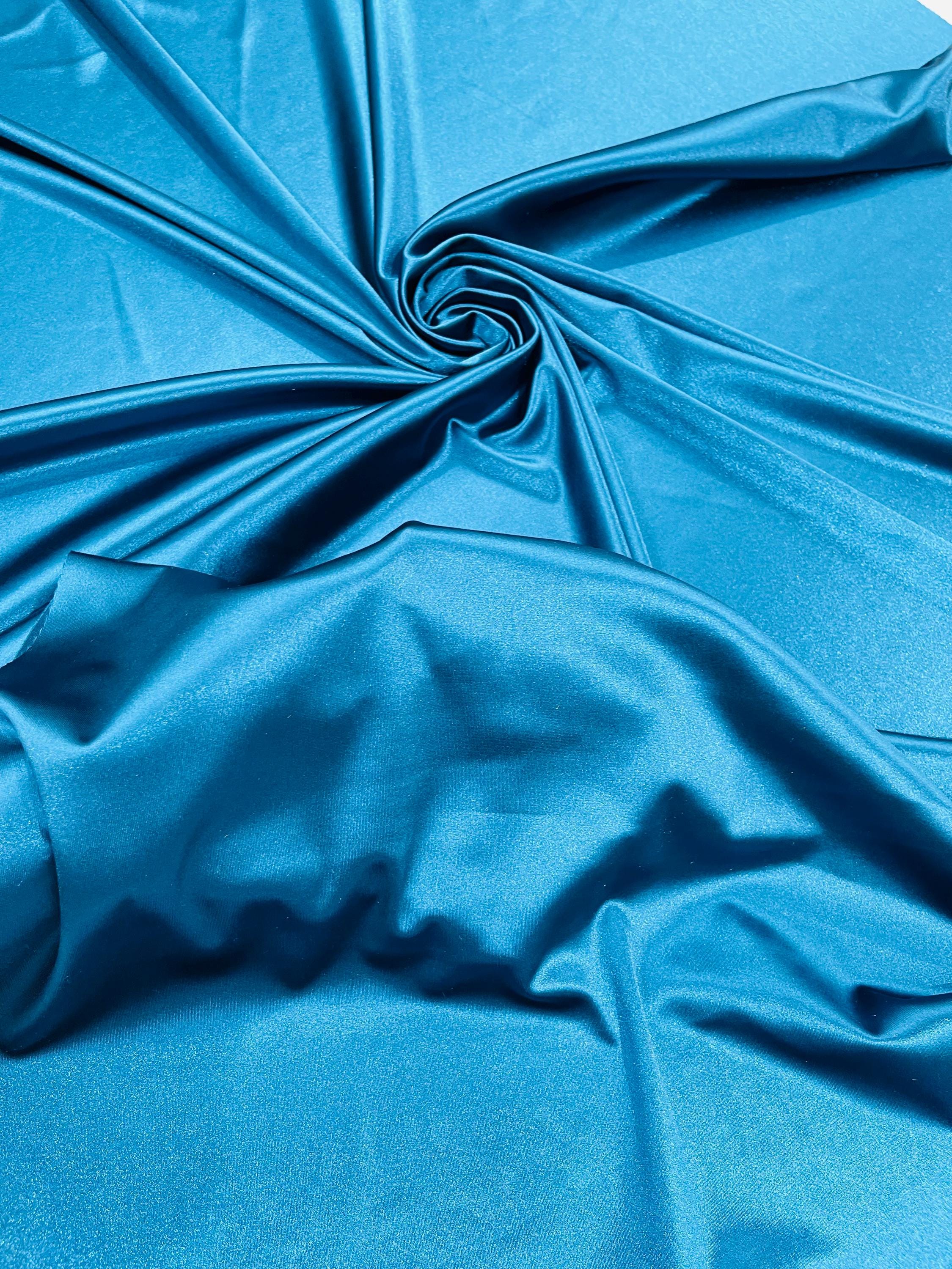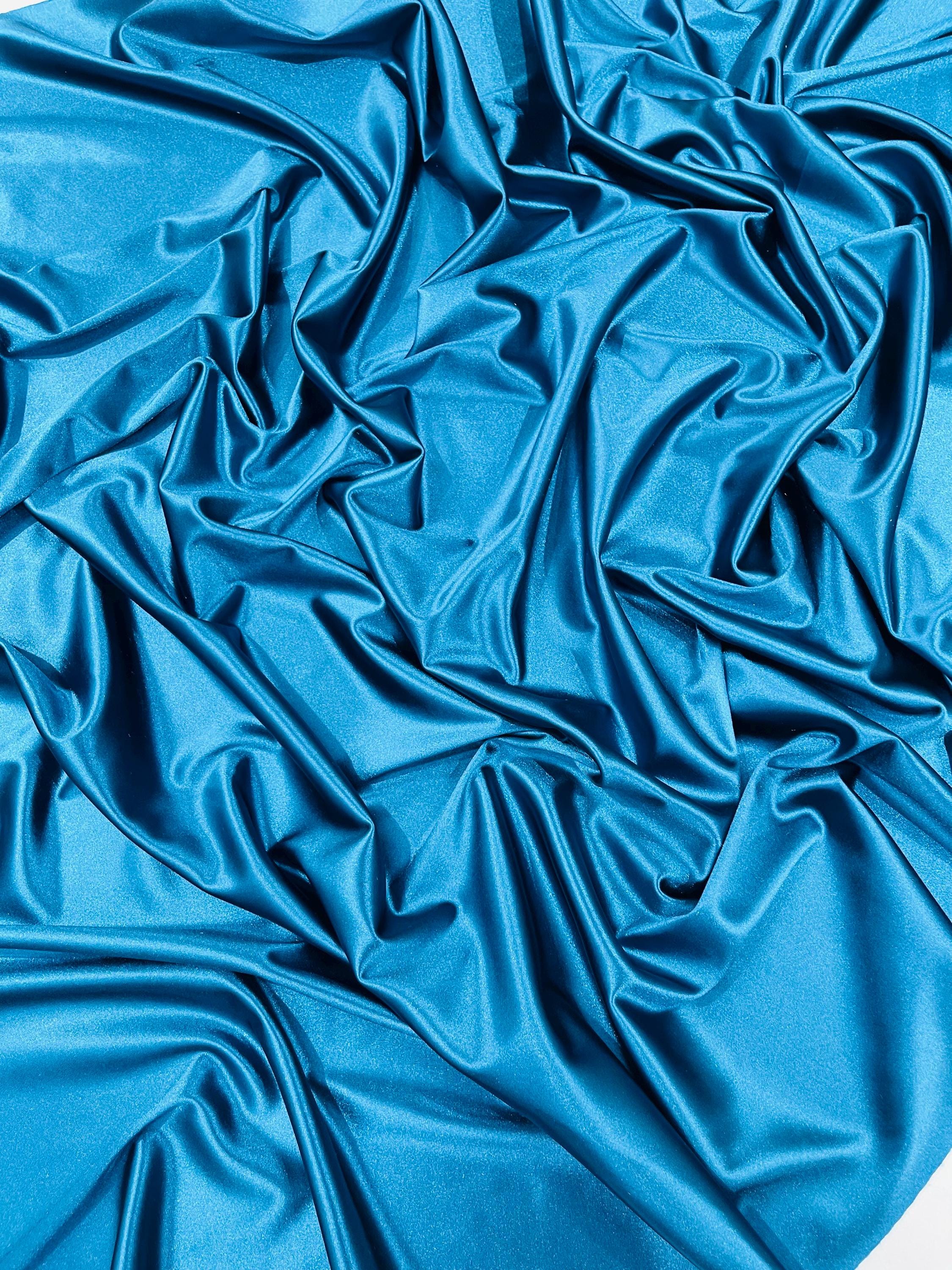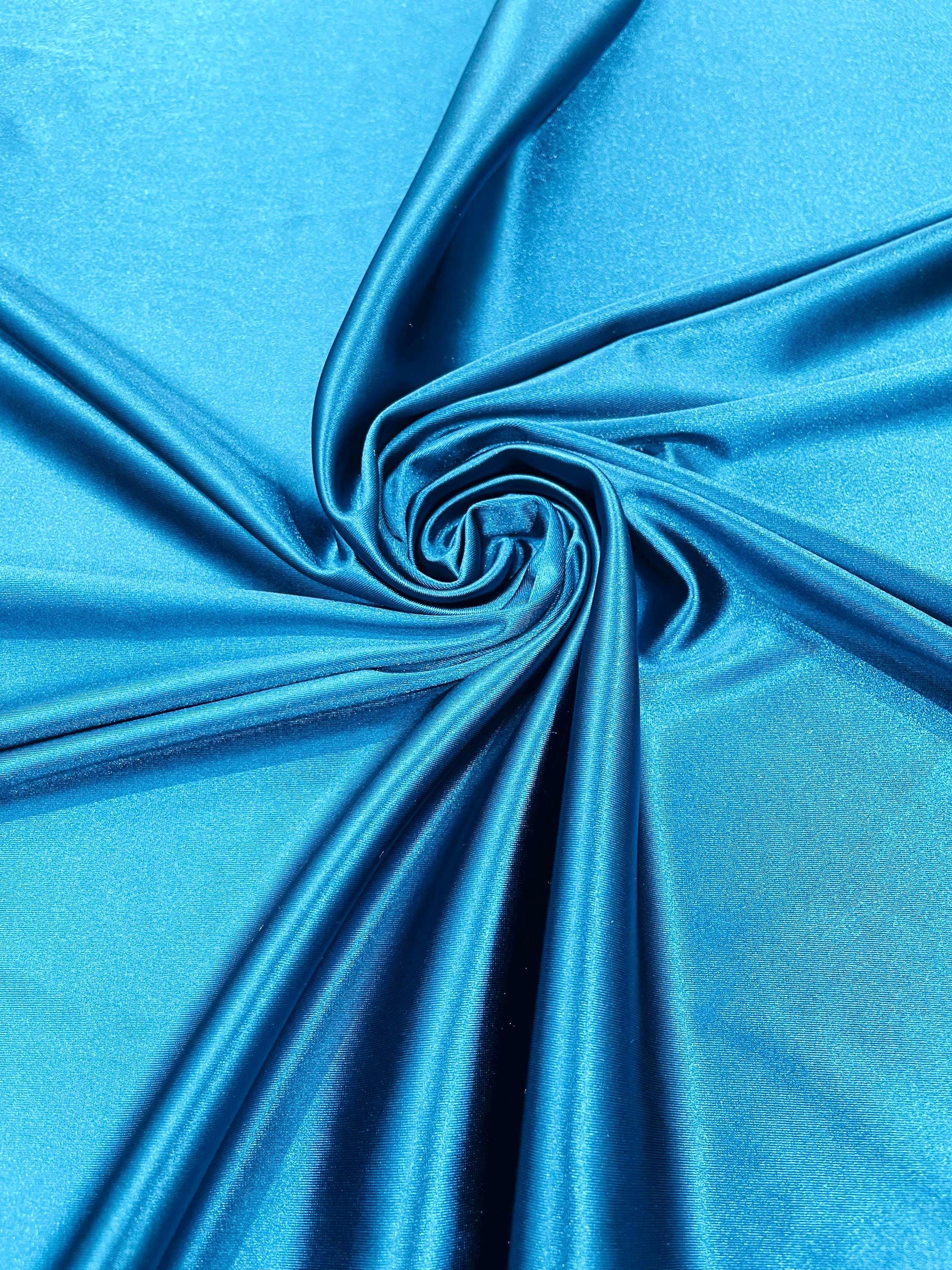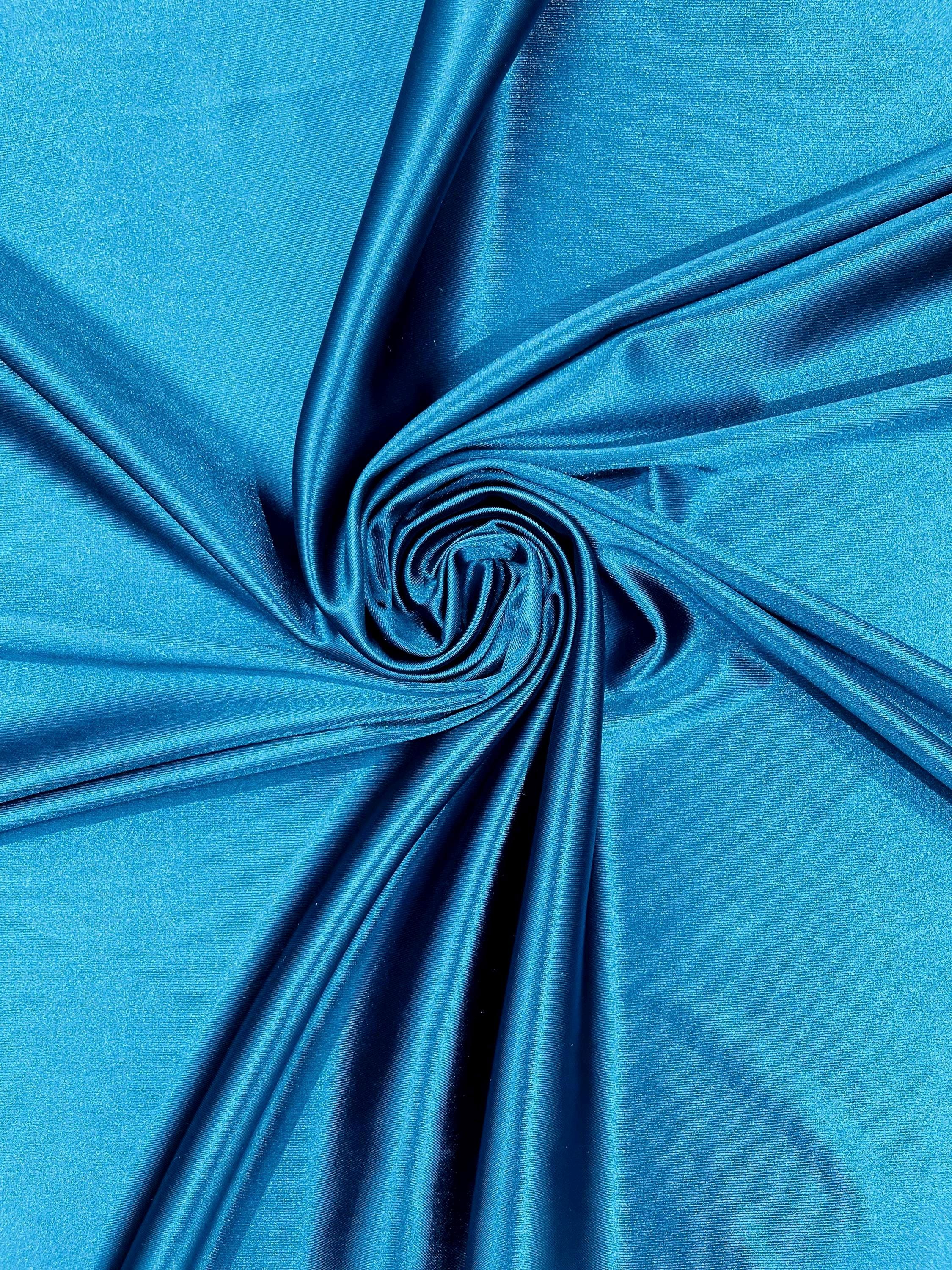 Teal Blue Shiny Spandex Satin Fabric By Yard, 4-Way Stretch Polyester, 60" Wide