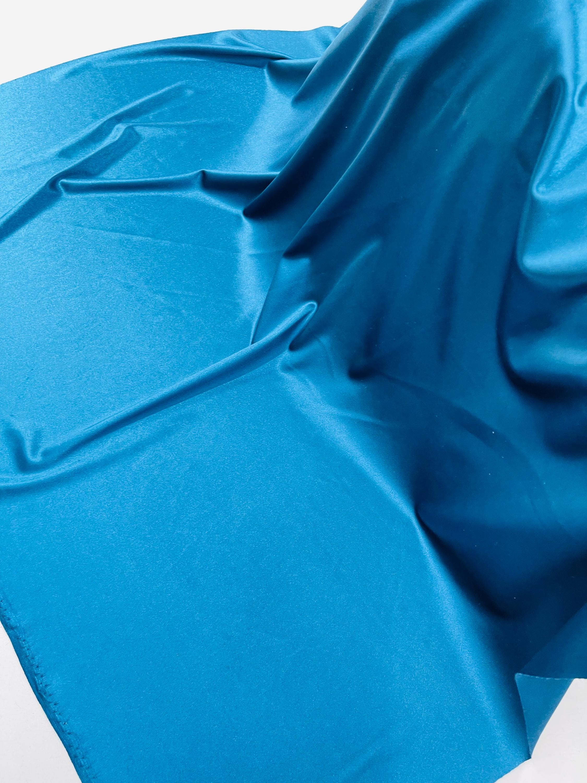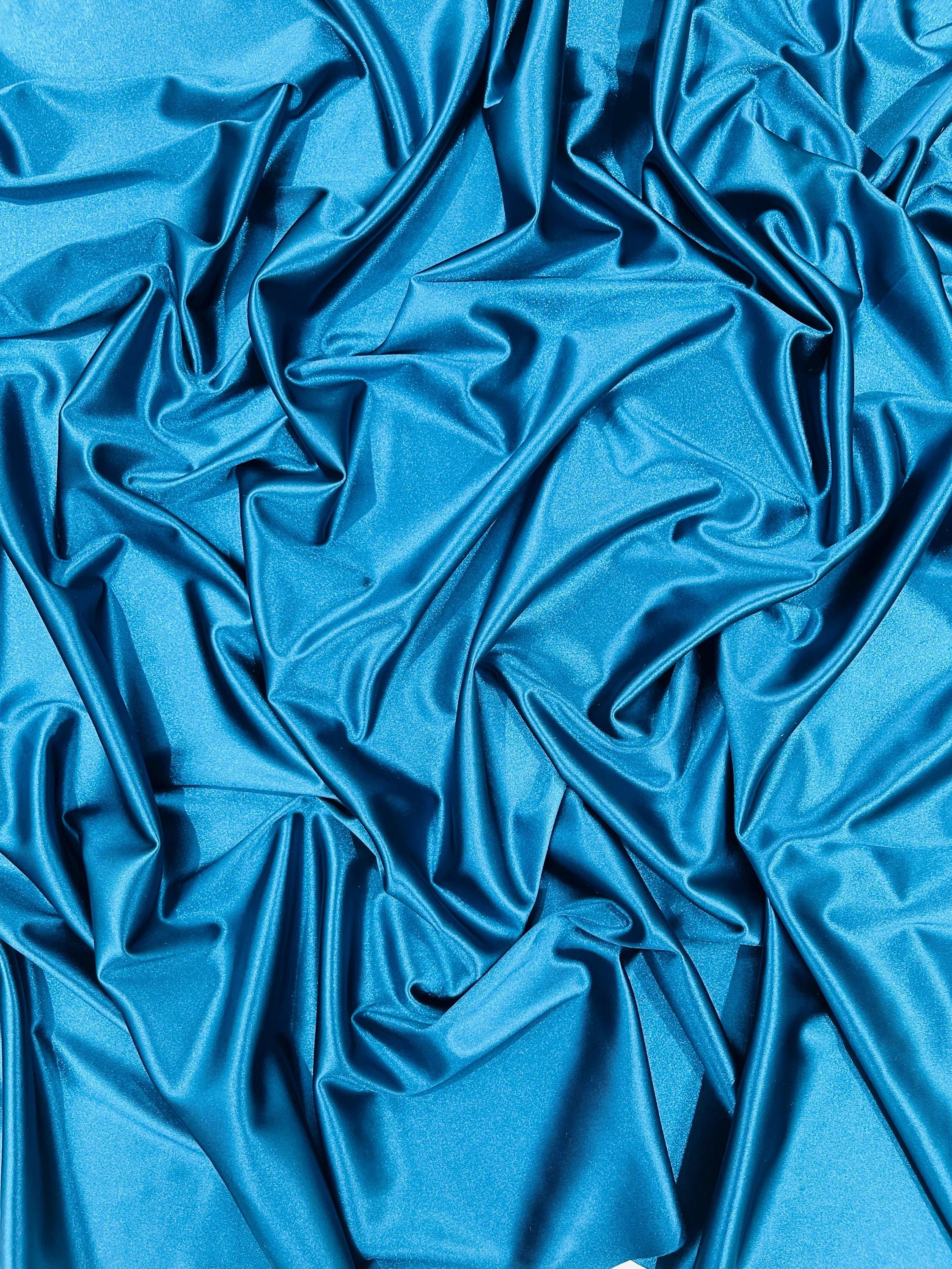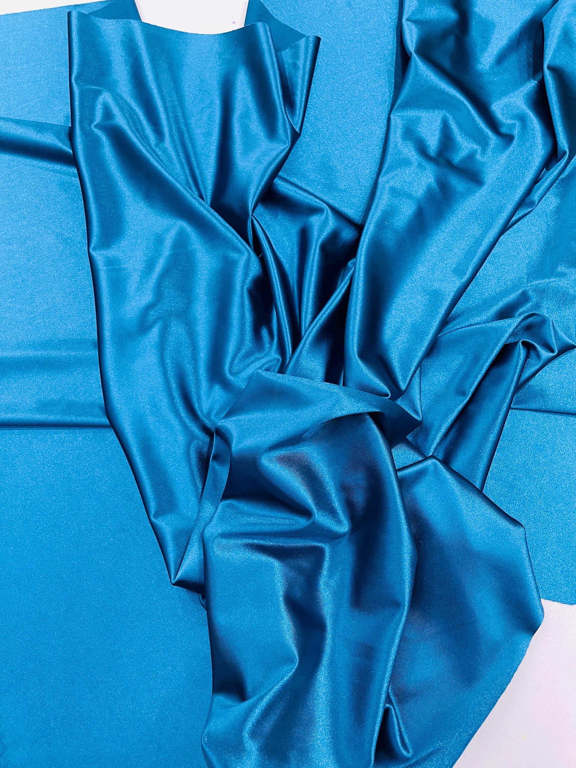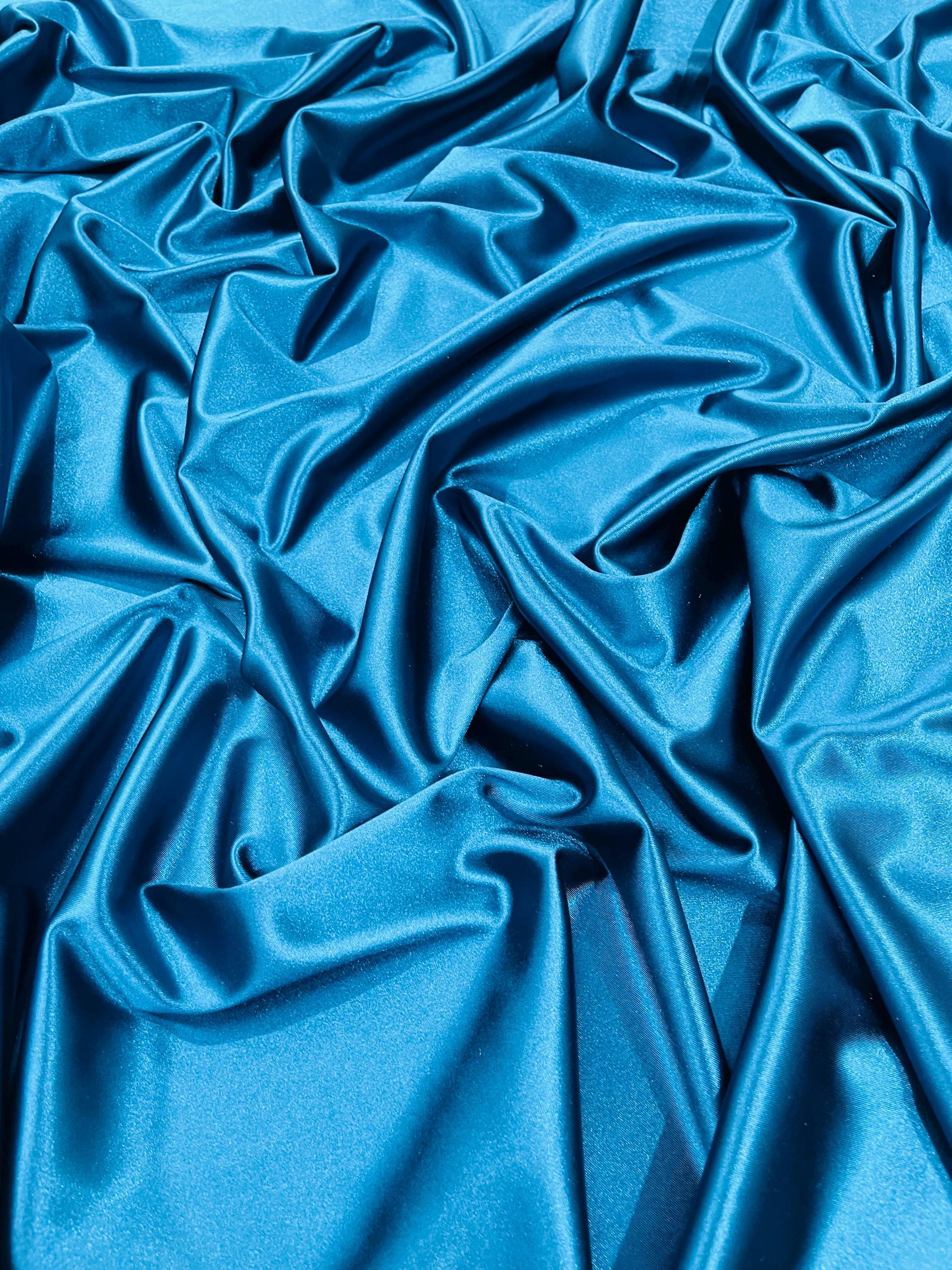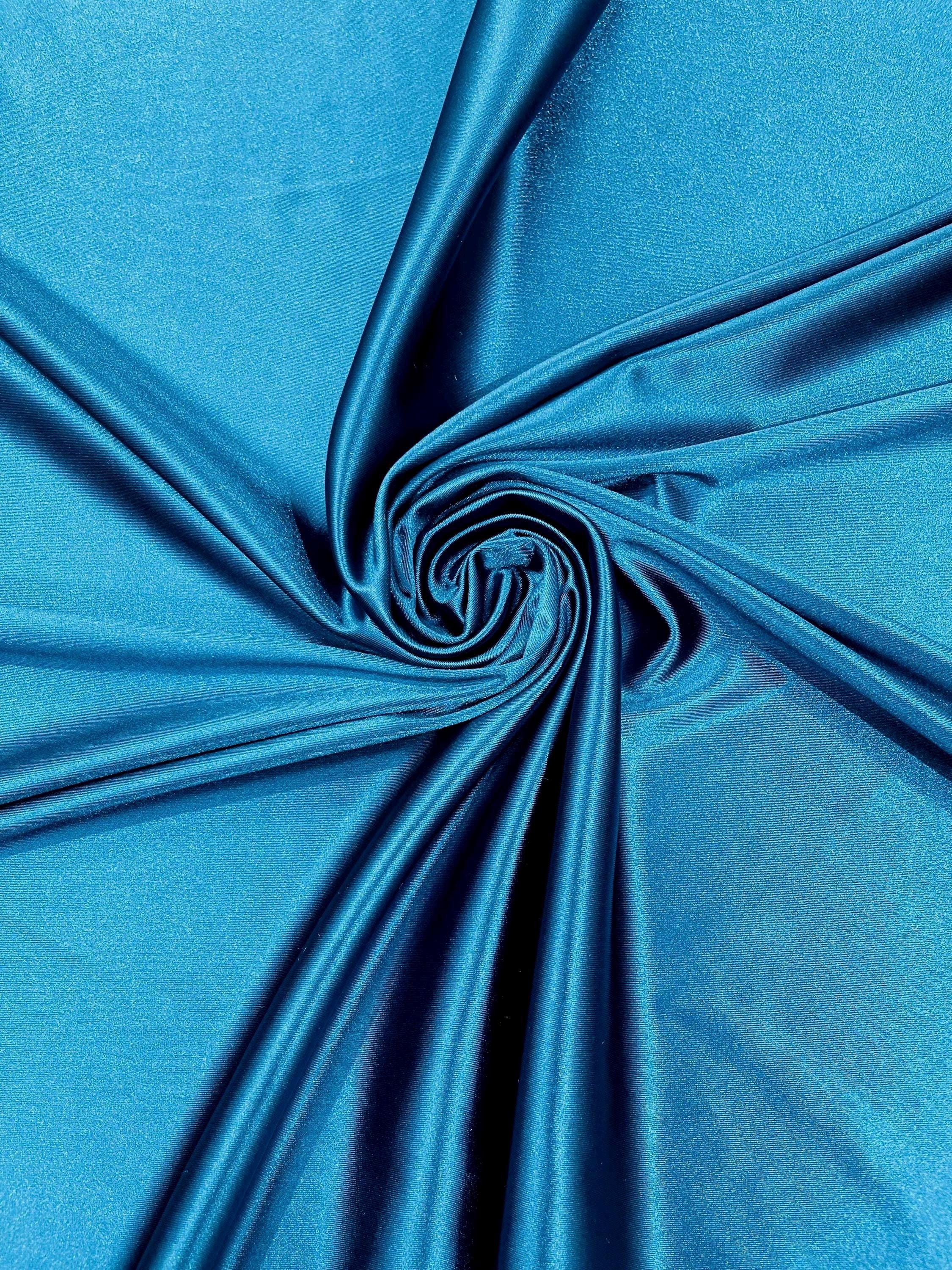 Teal Blue Shiny Spandex Satin Fabric By Yard, 4-Way Stretch Polyester, 60" Wide