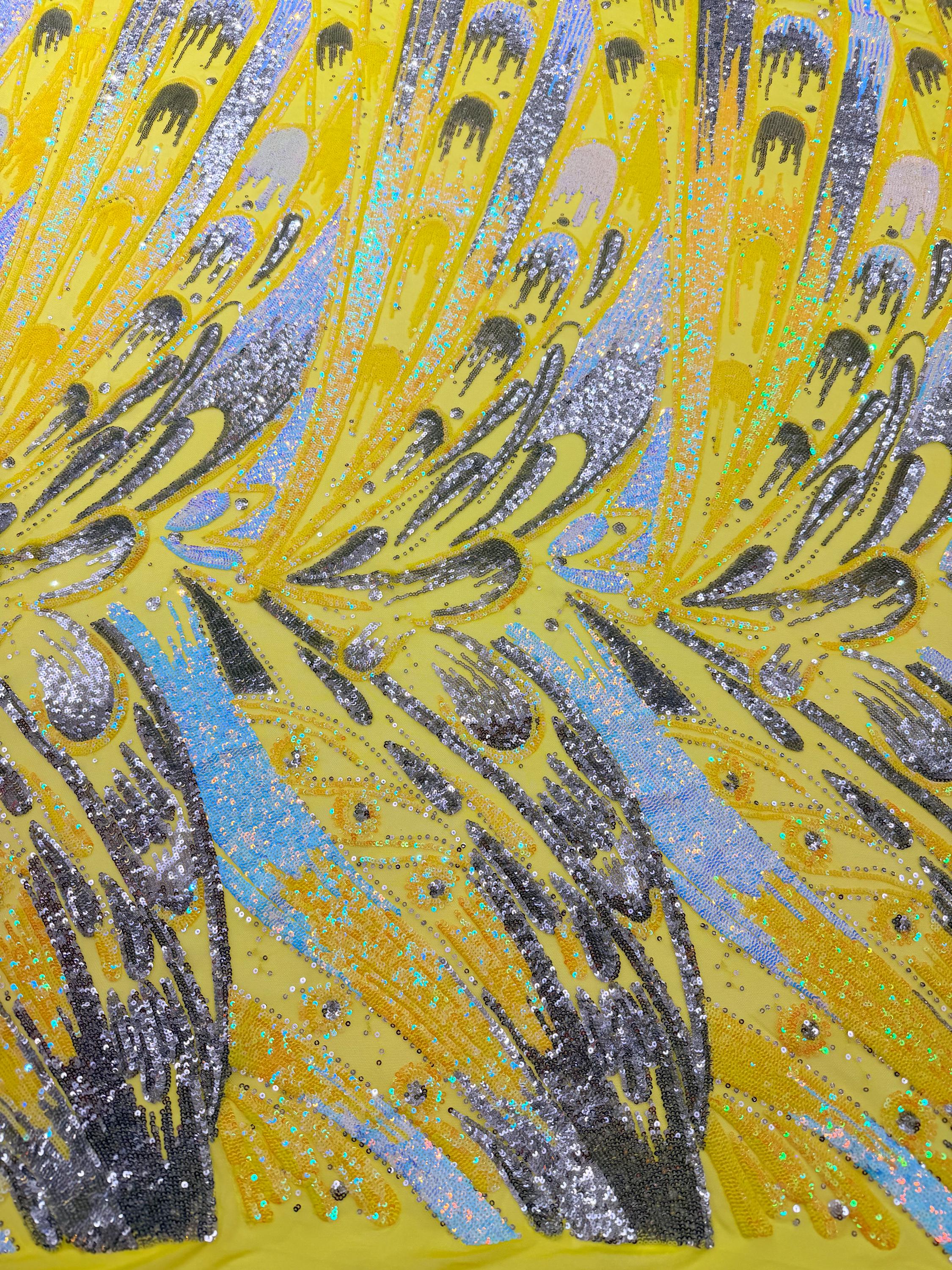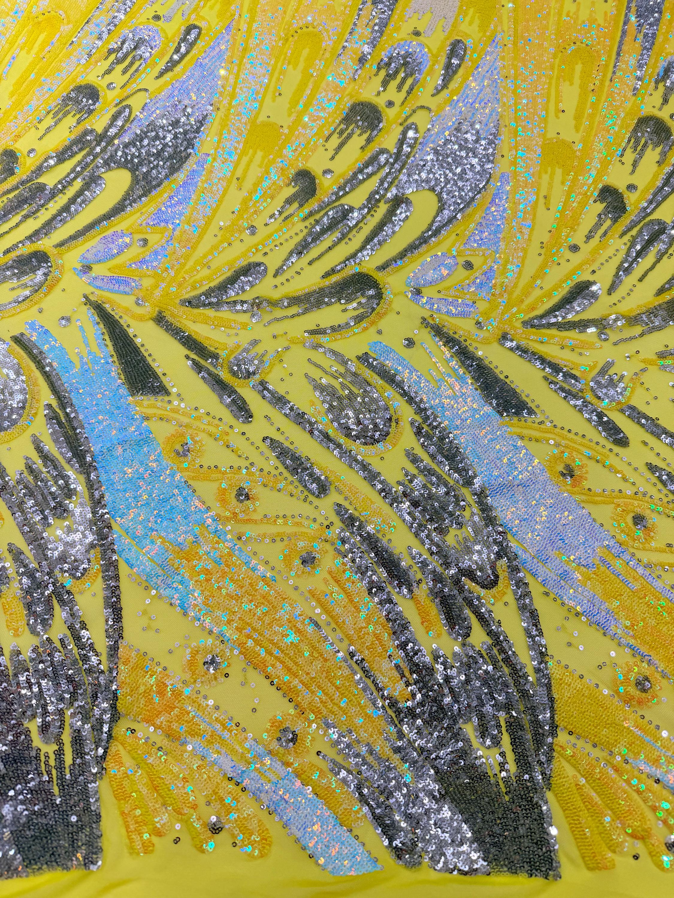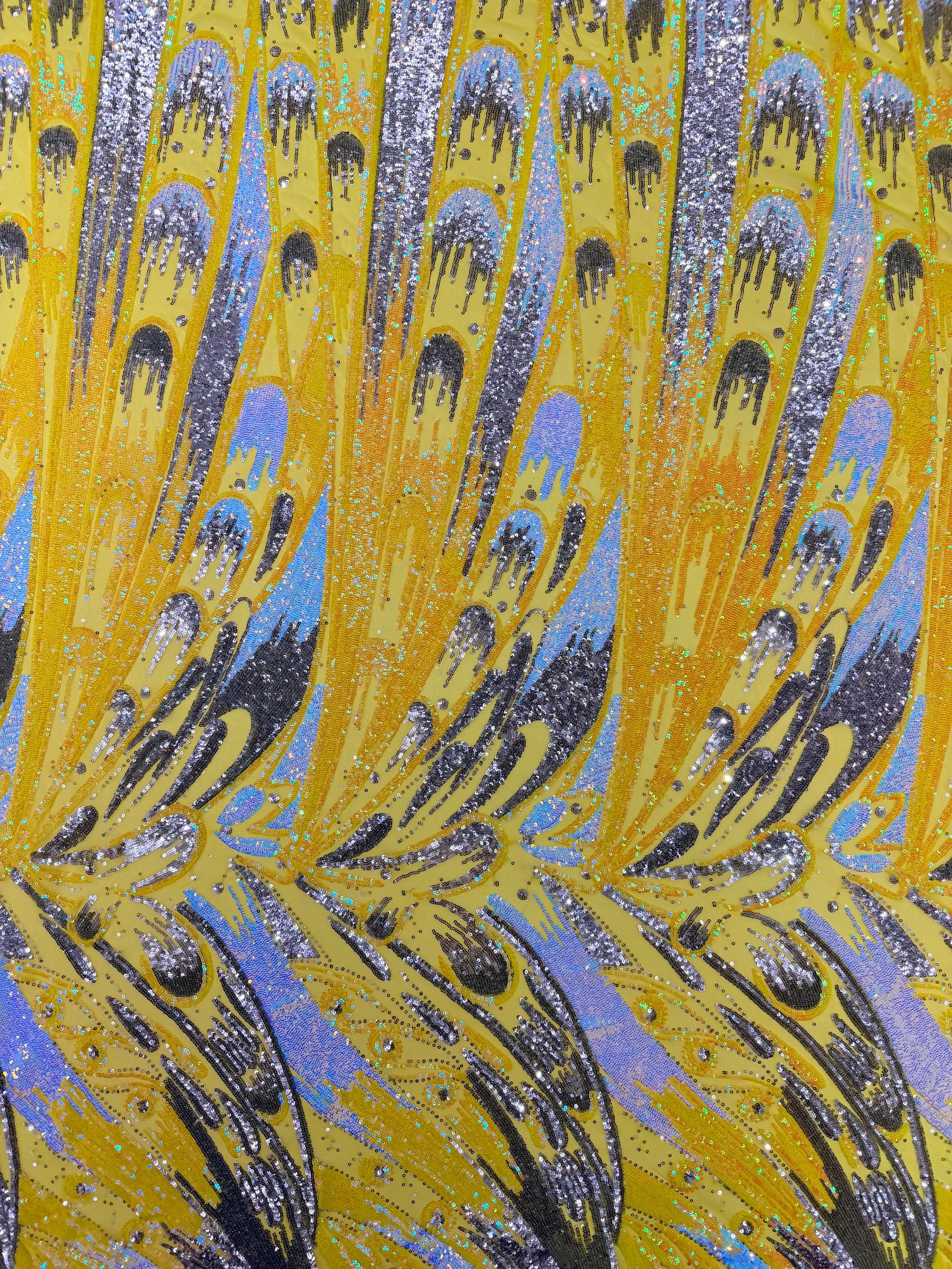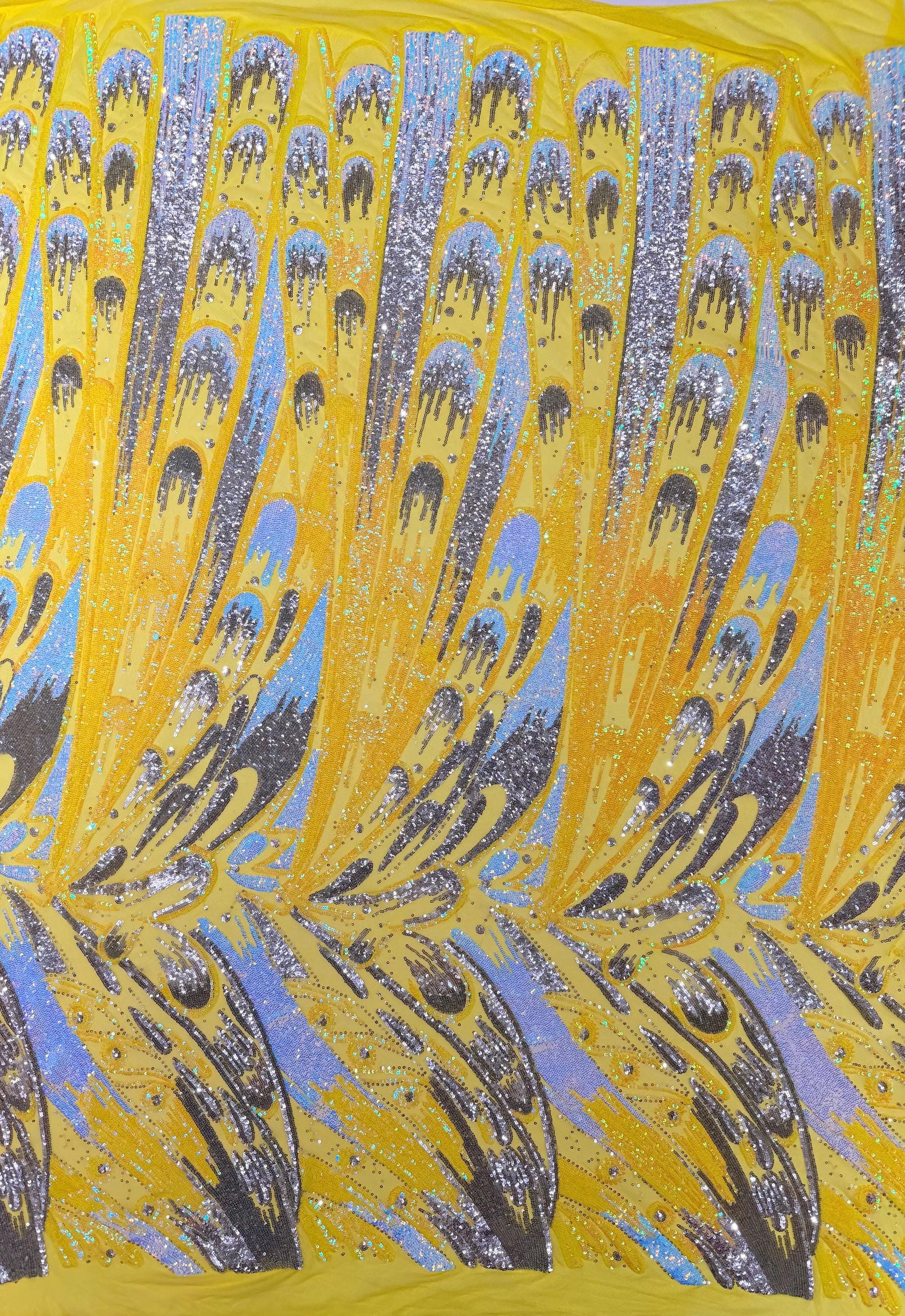 The material has a luxurious sequin design embroidered on the mesh.