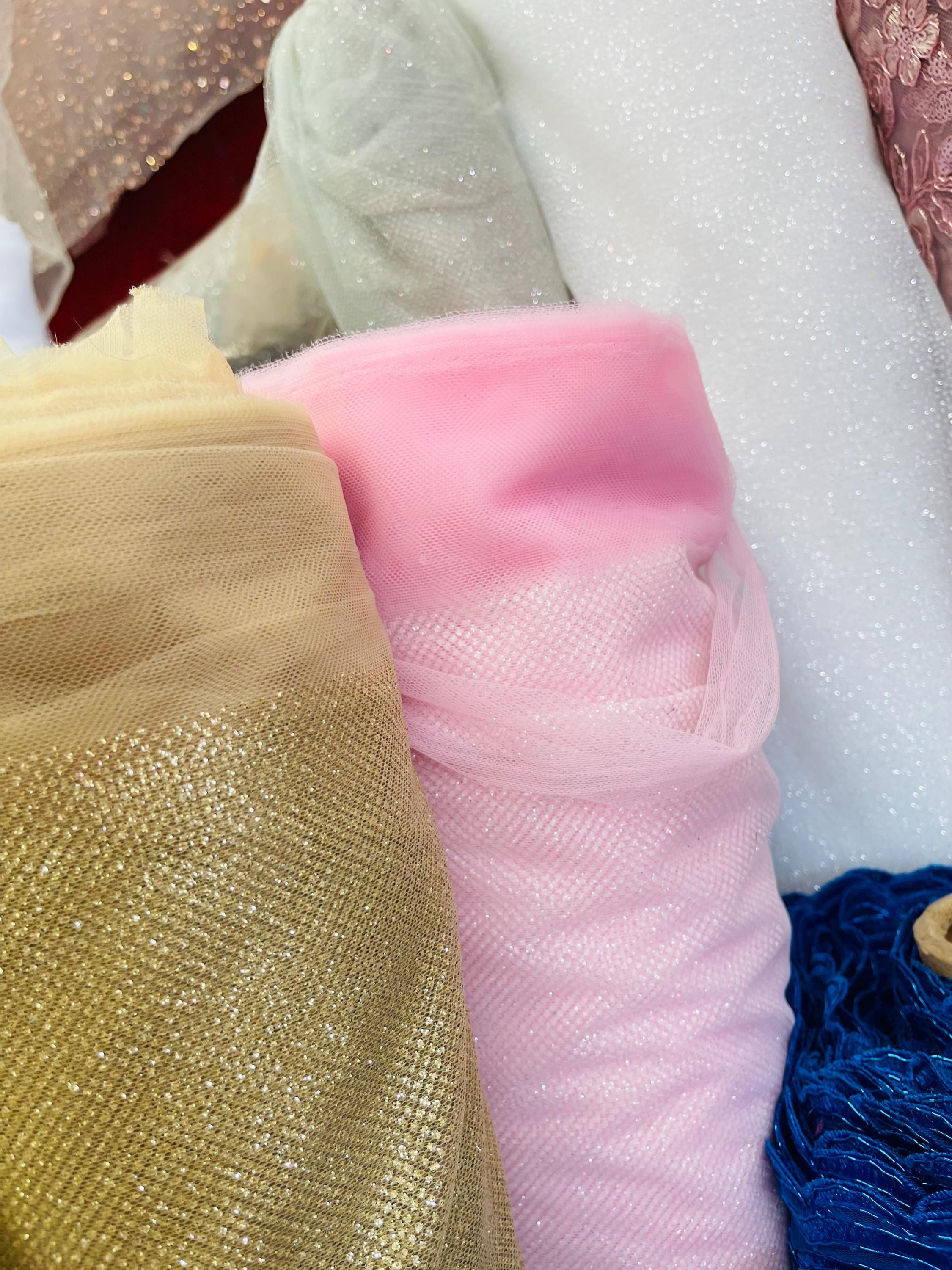 Shimmer Glitter Tulle Fabric, Tulle Glitter Mesh Fabric with glitter