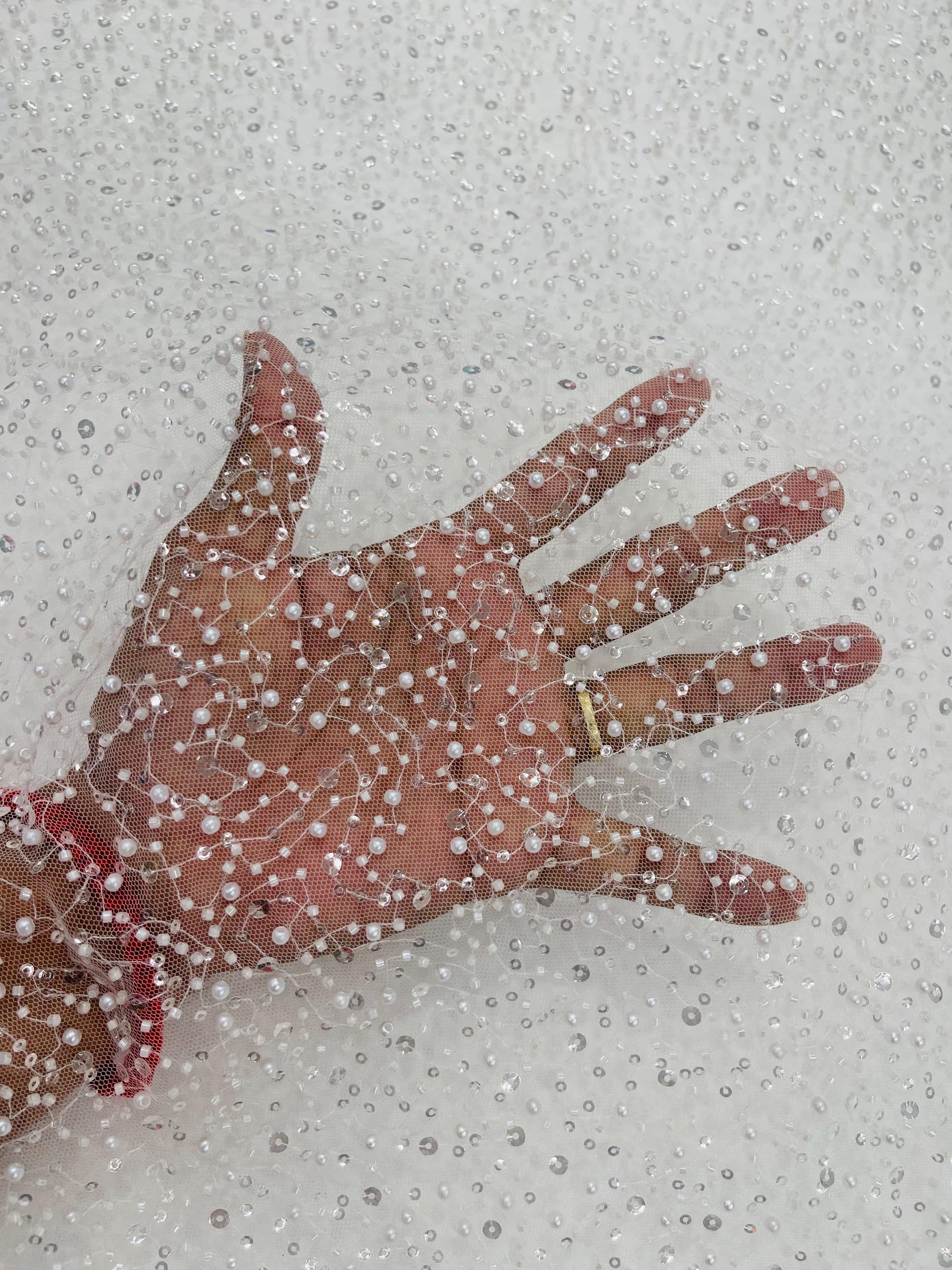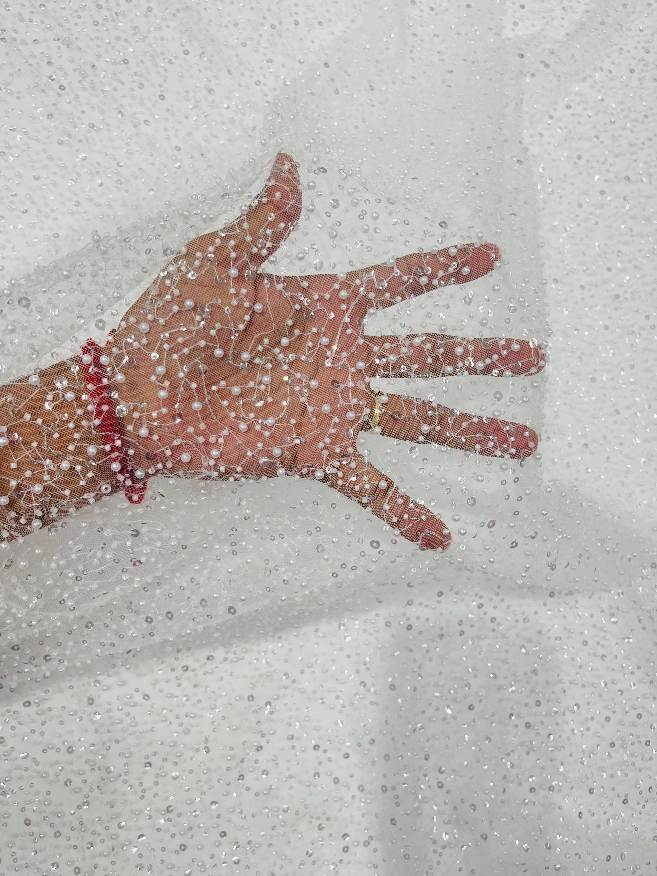 Embroidered beaded Fabric on Mesh