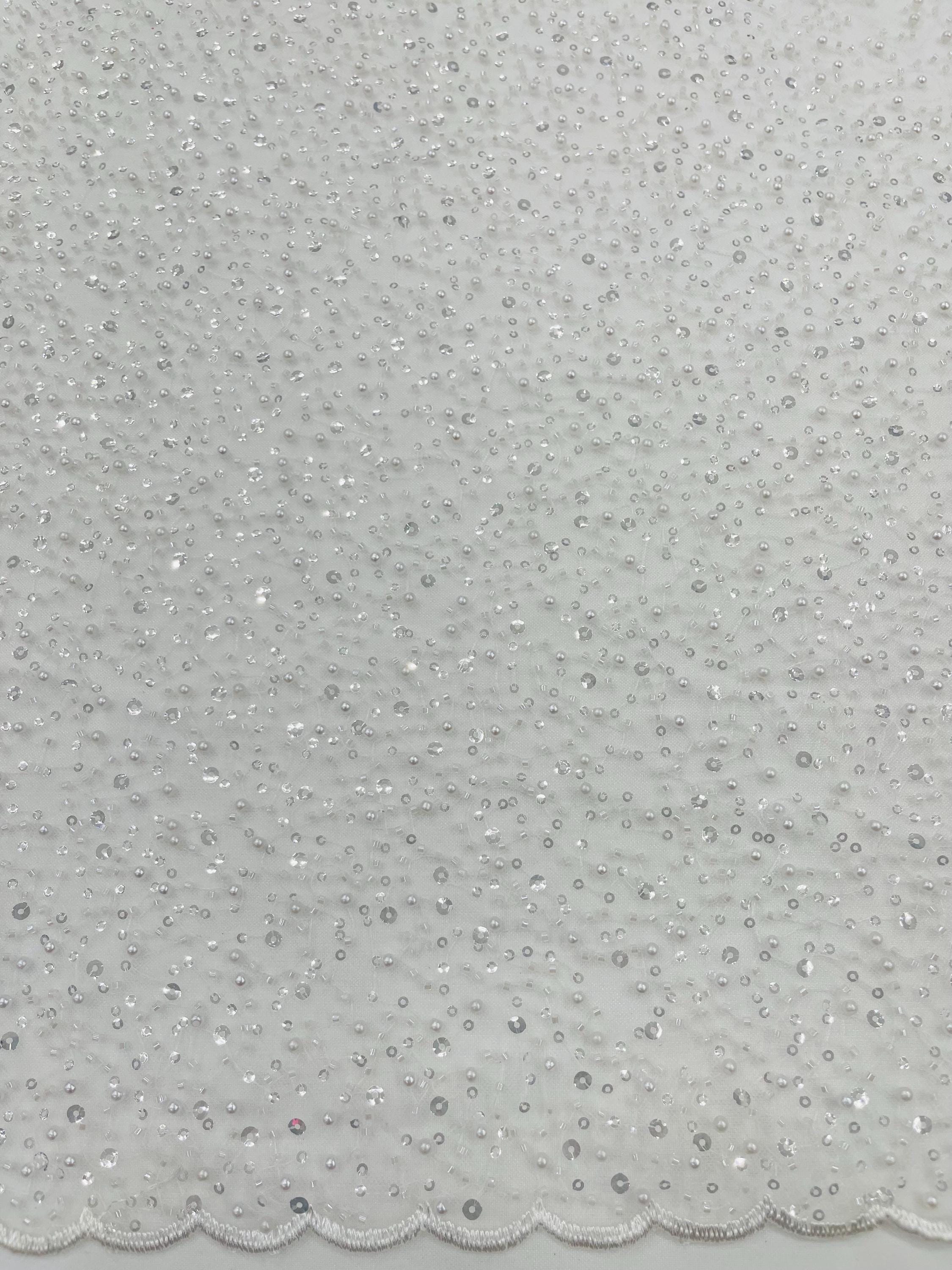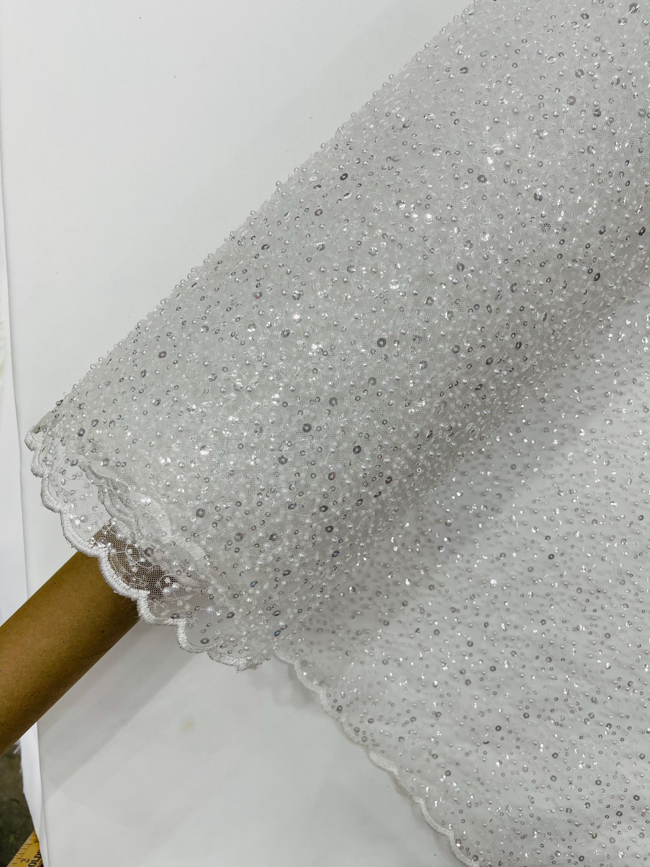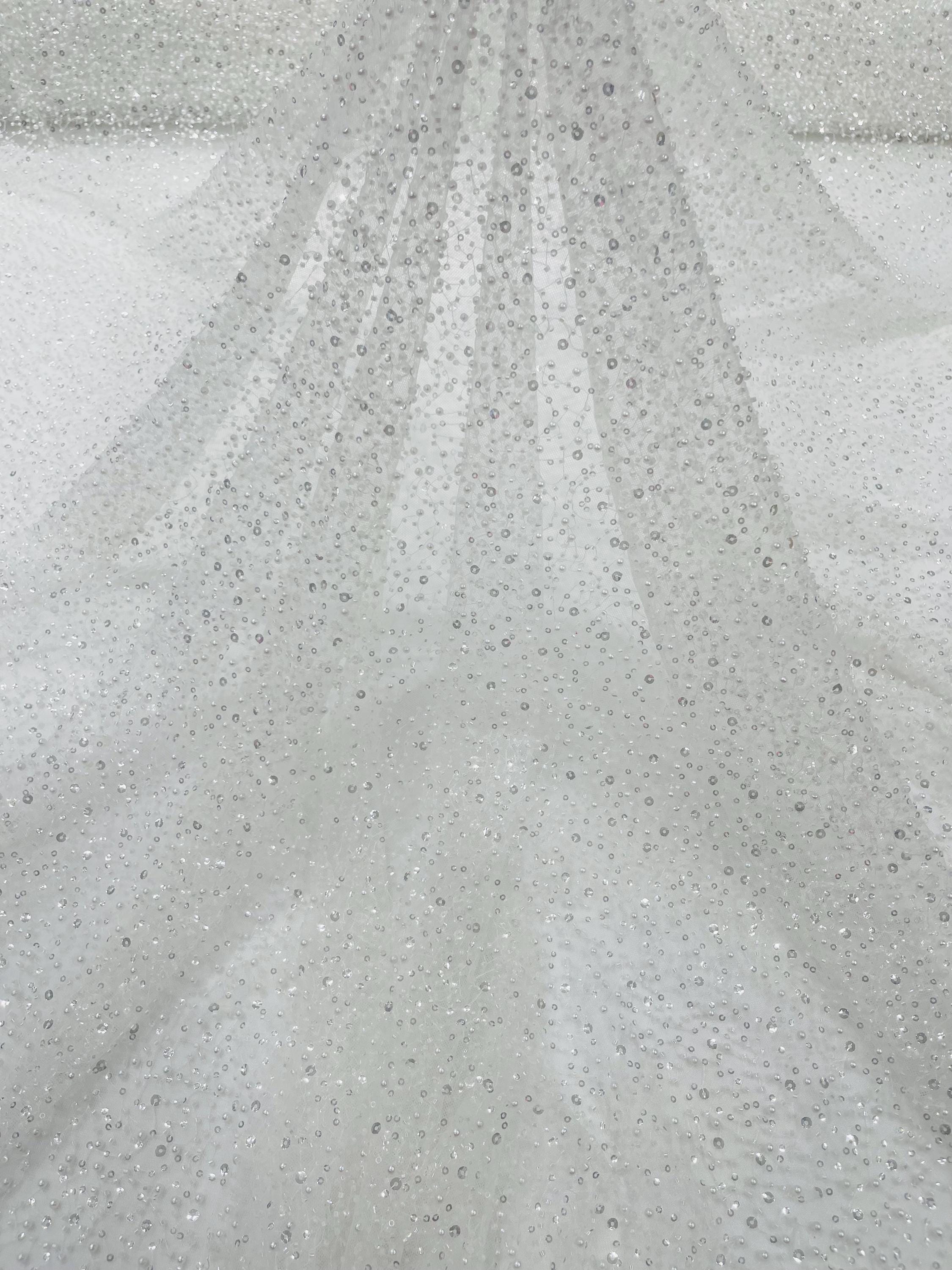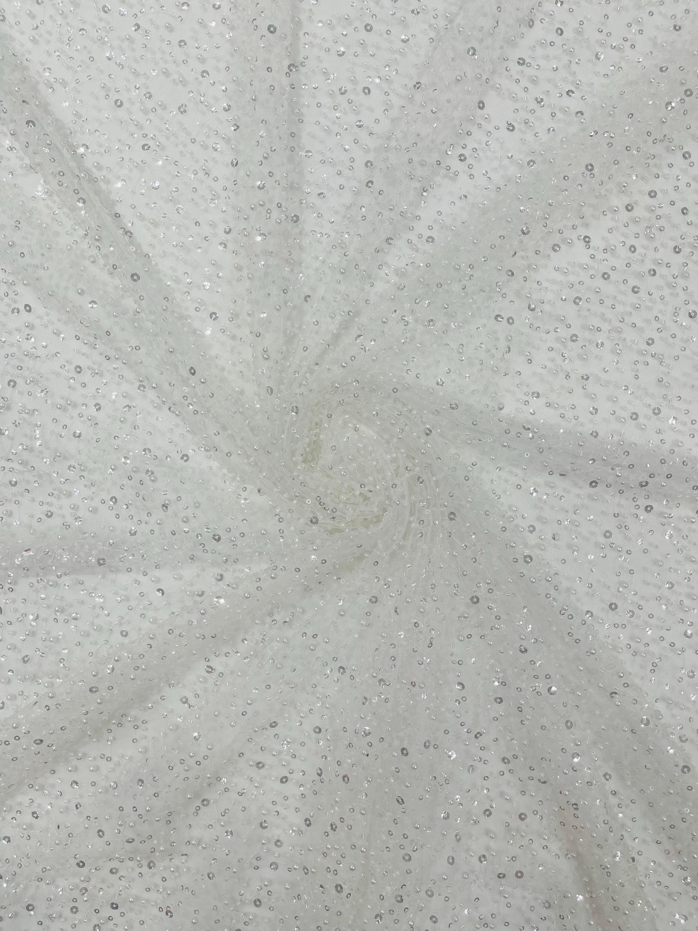 Ivory Beaded Sequin Mesh Lace Fabric, Rain Design Embroidery By The Yard
