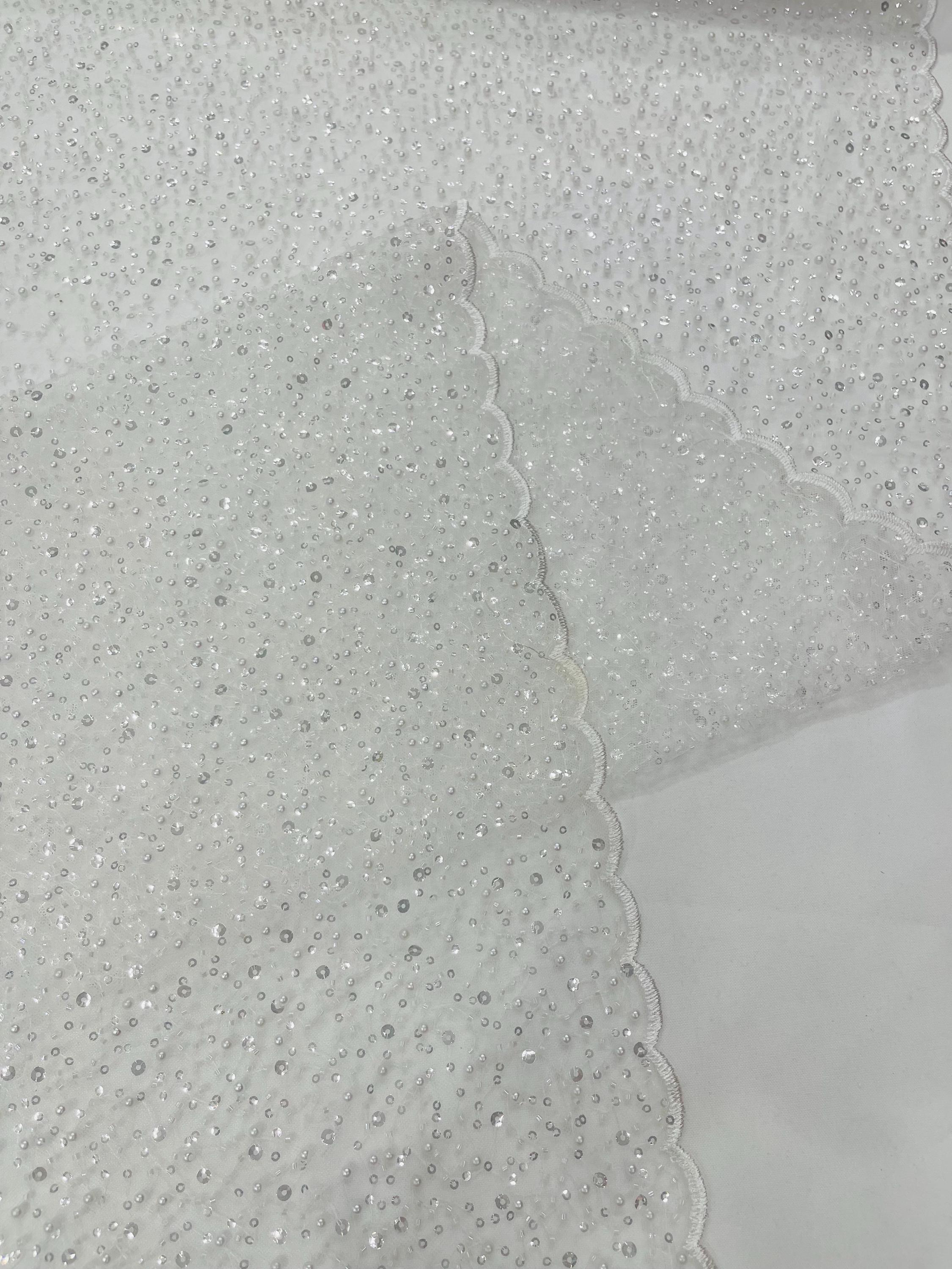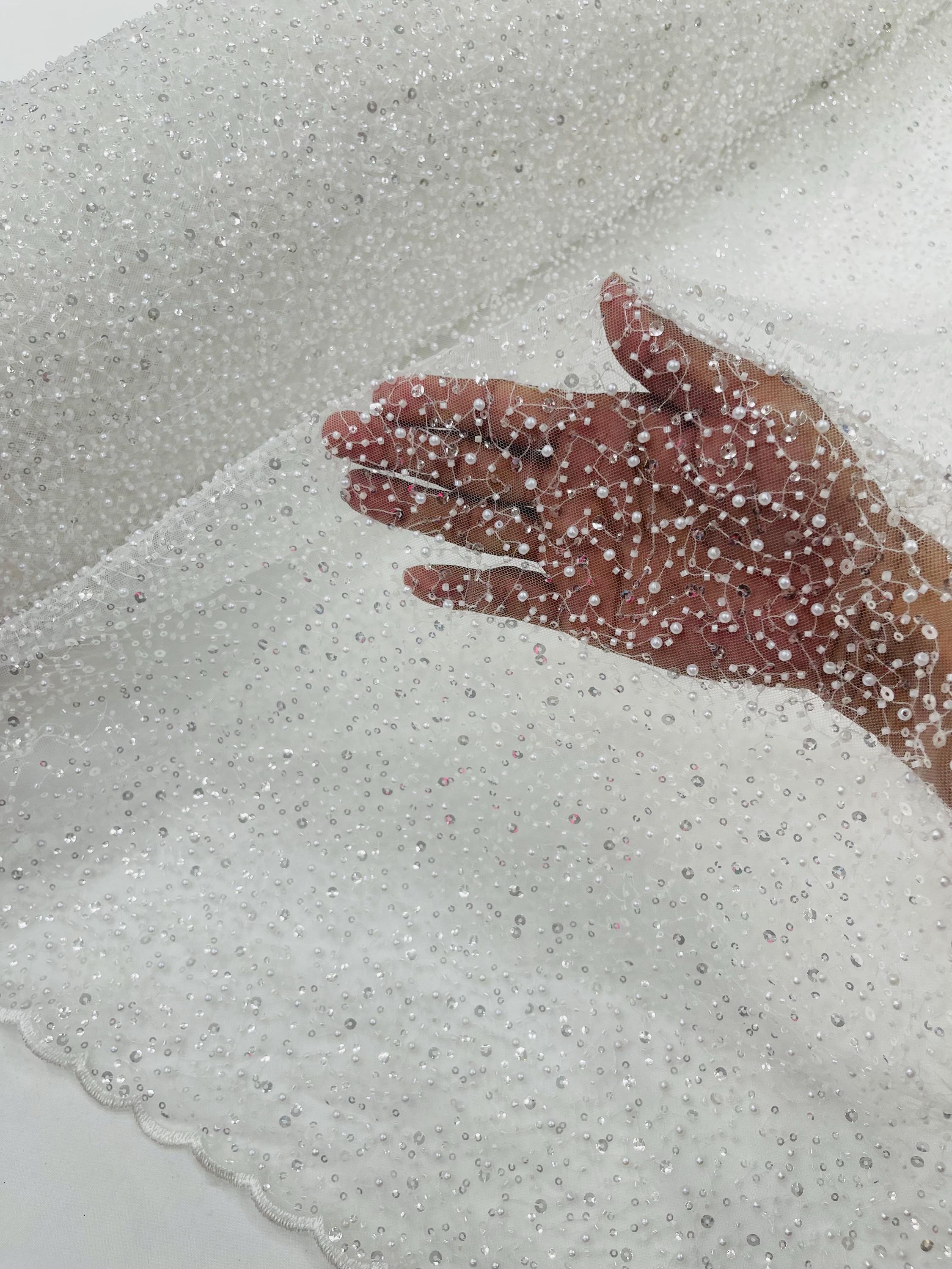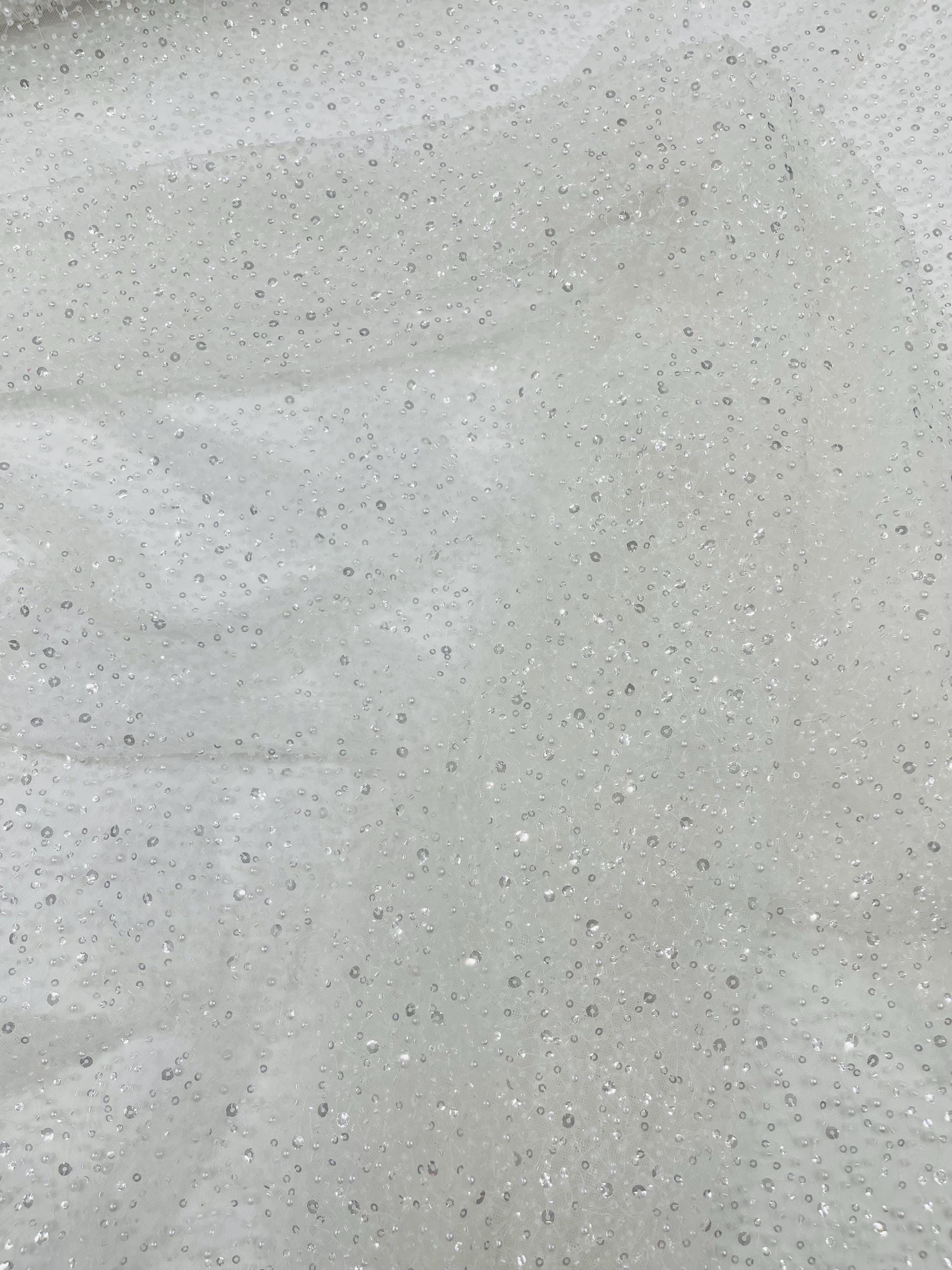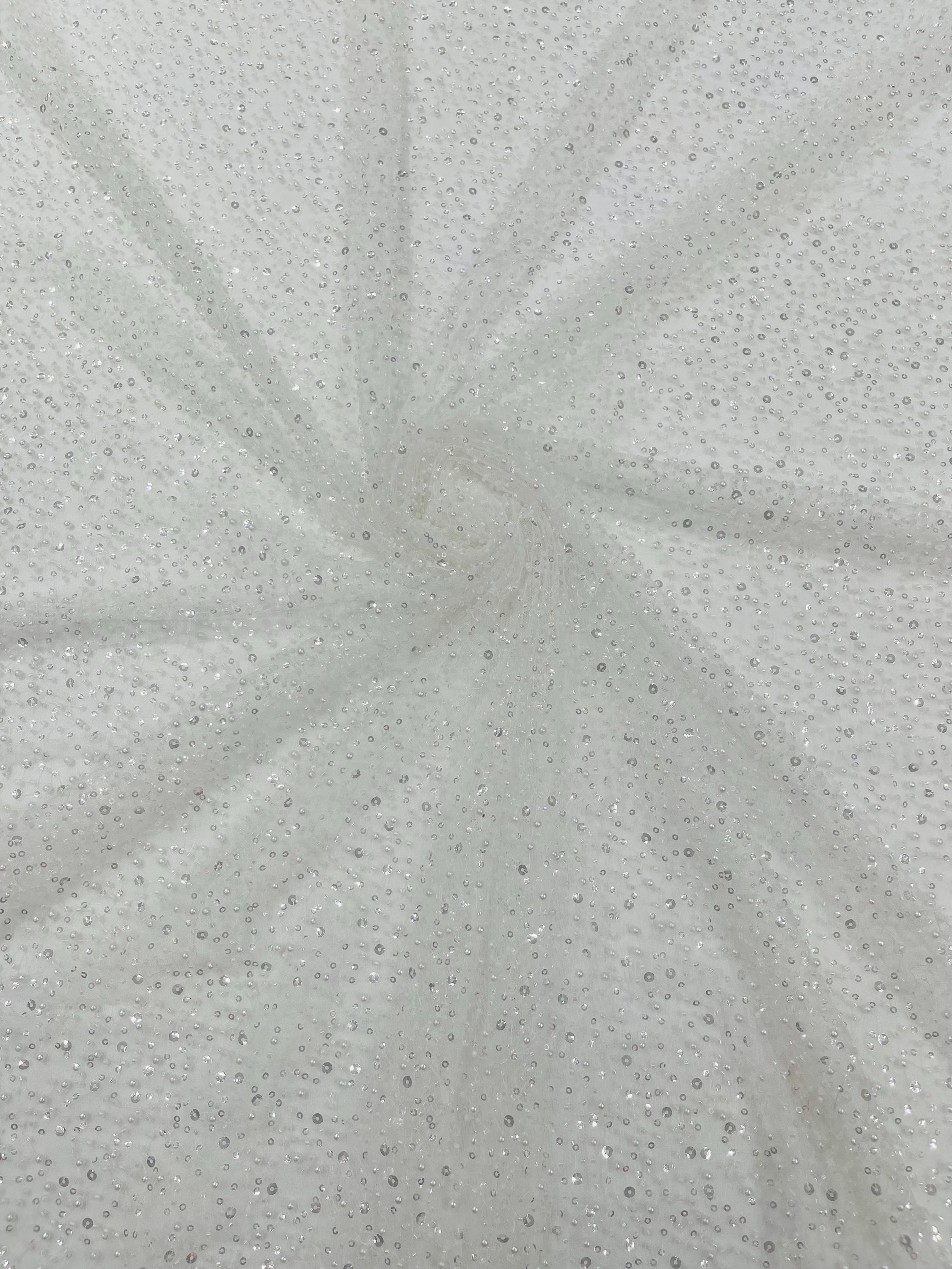 Ivory Beaded Sequin Mesh Lace Fabric, Rain Design Embroidery By The Yard