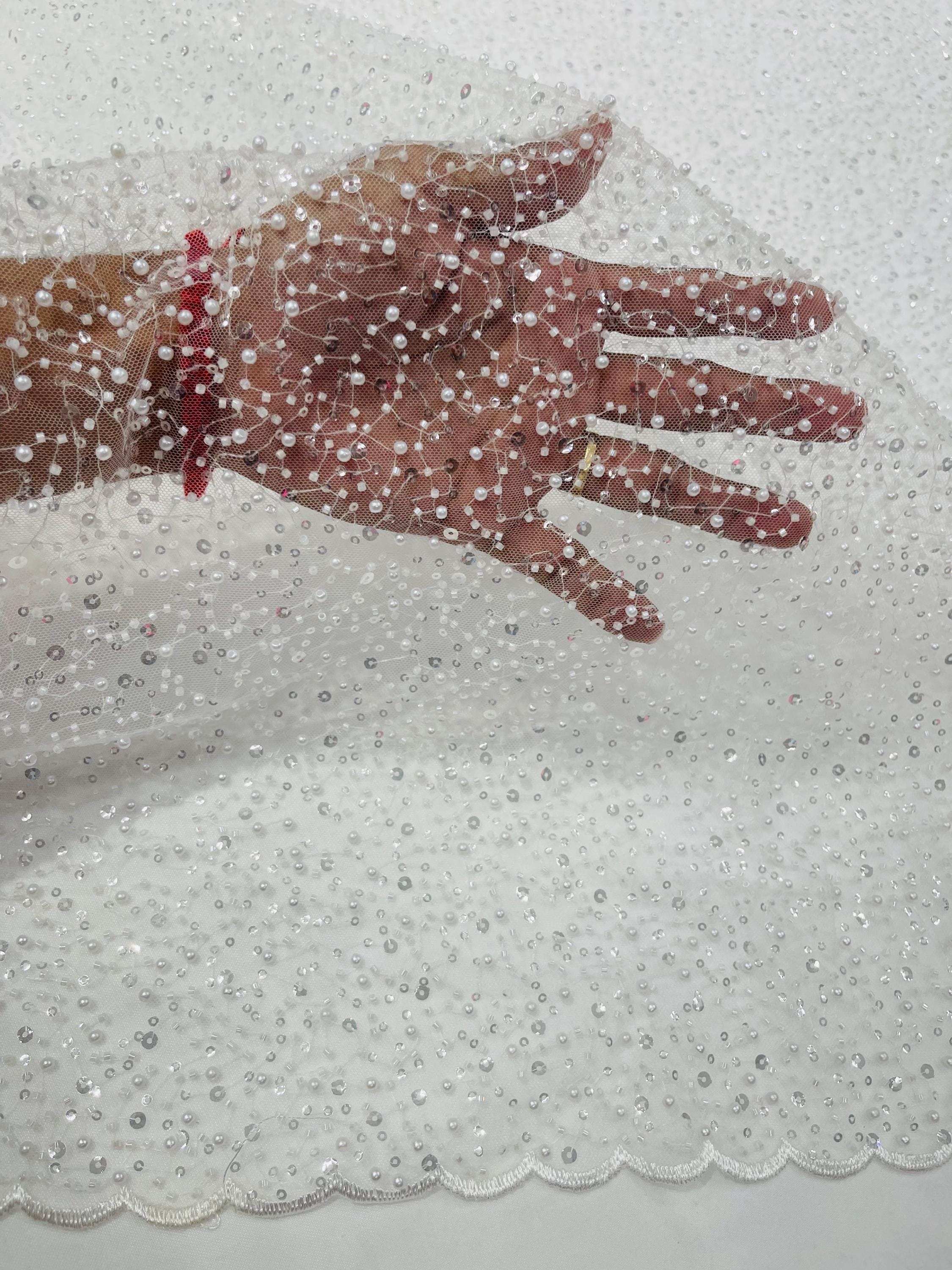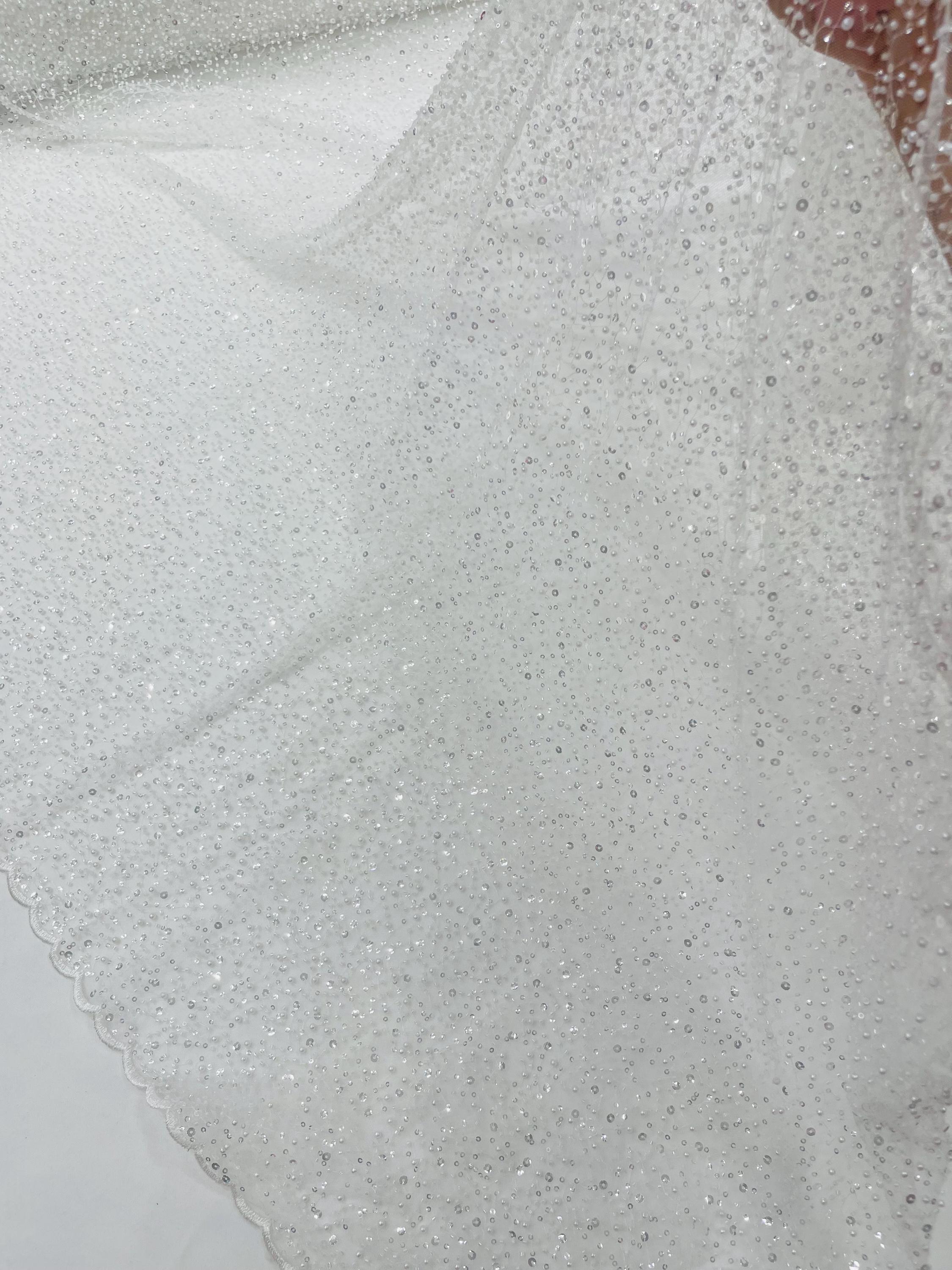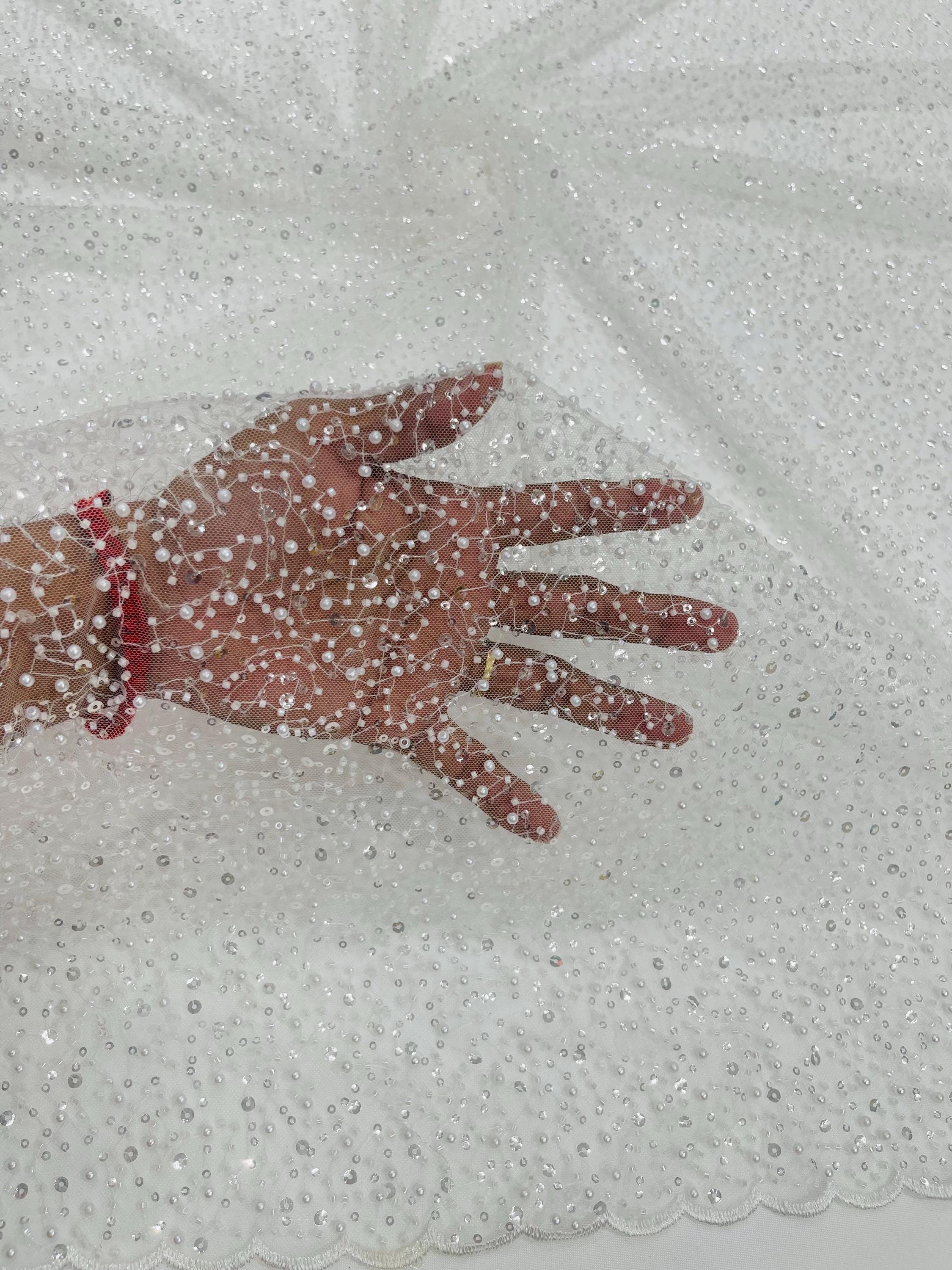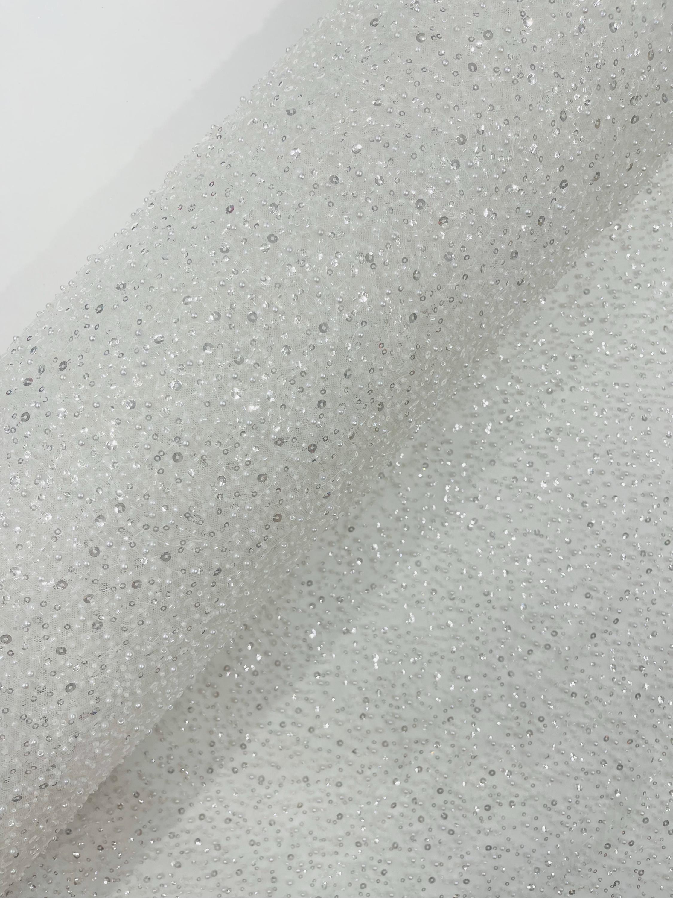 Ivory Beaded Sequin Mesh Lace Fabric, Rain Design Embroidery By The Yard