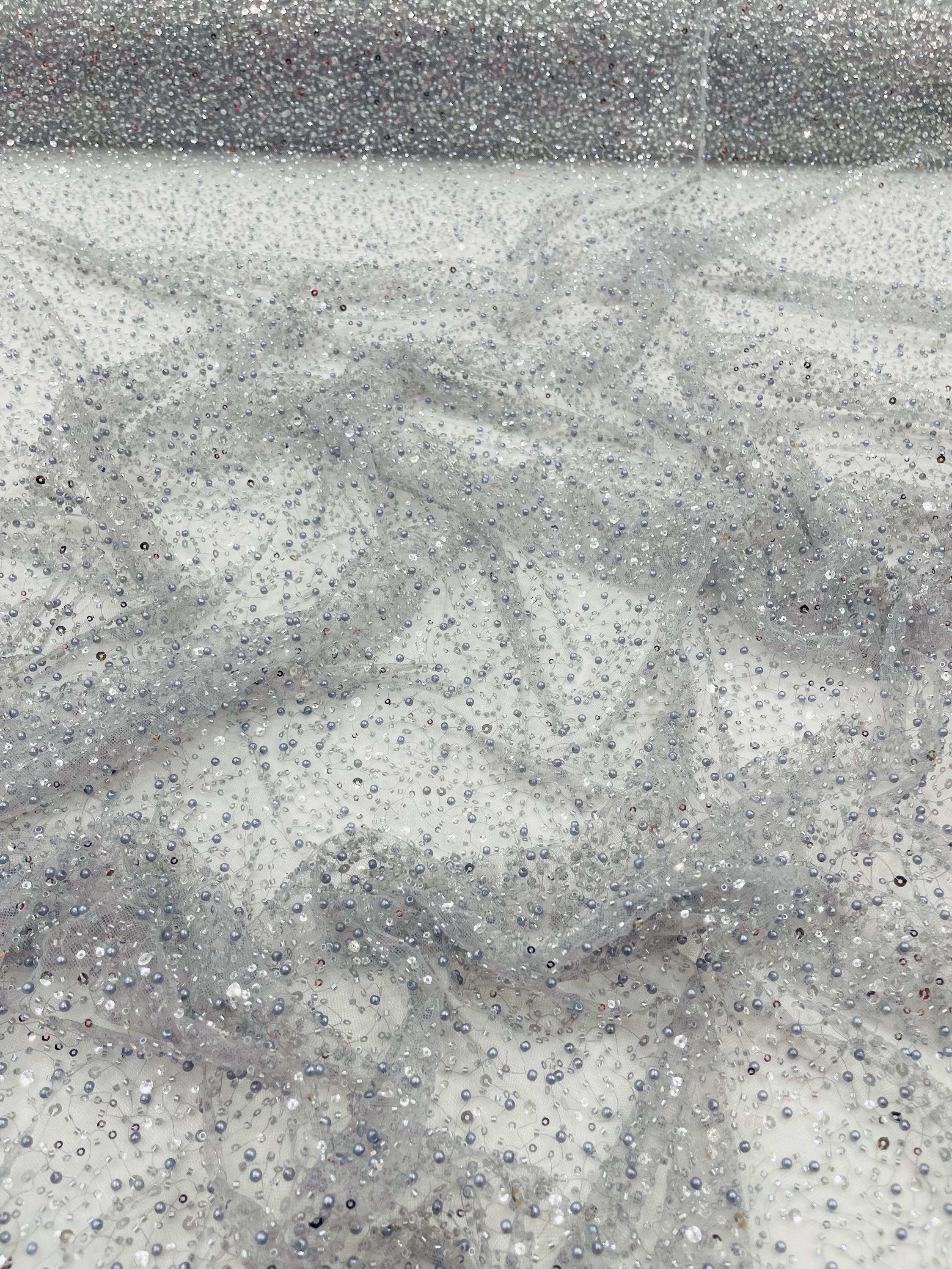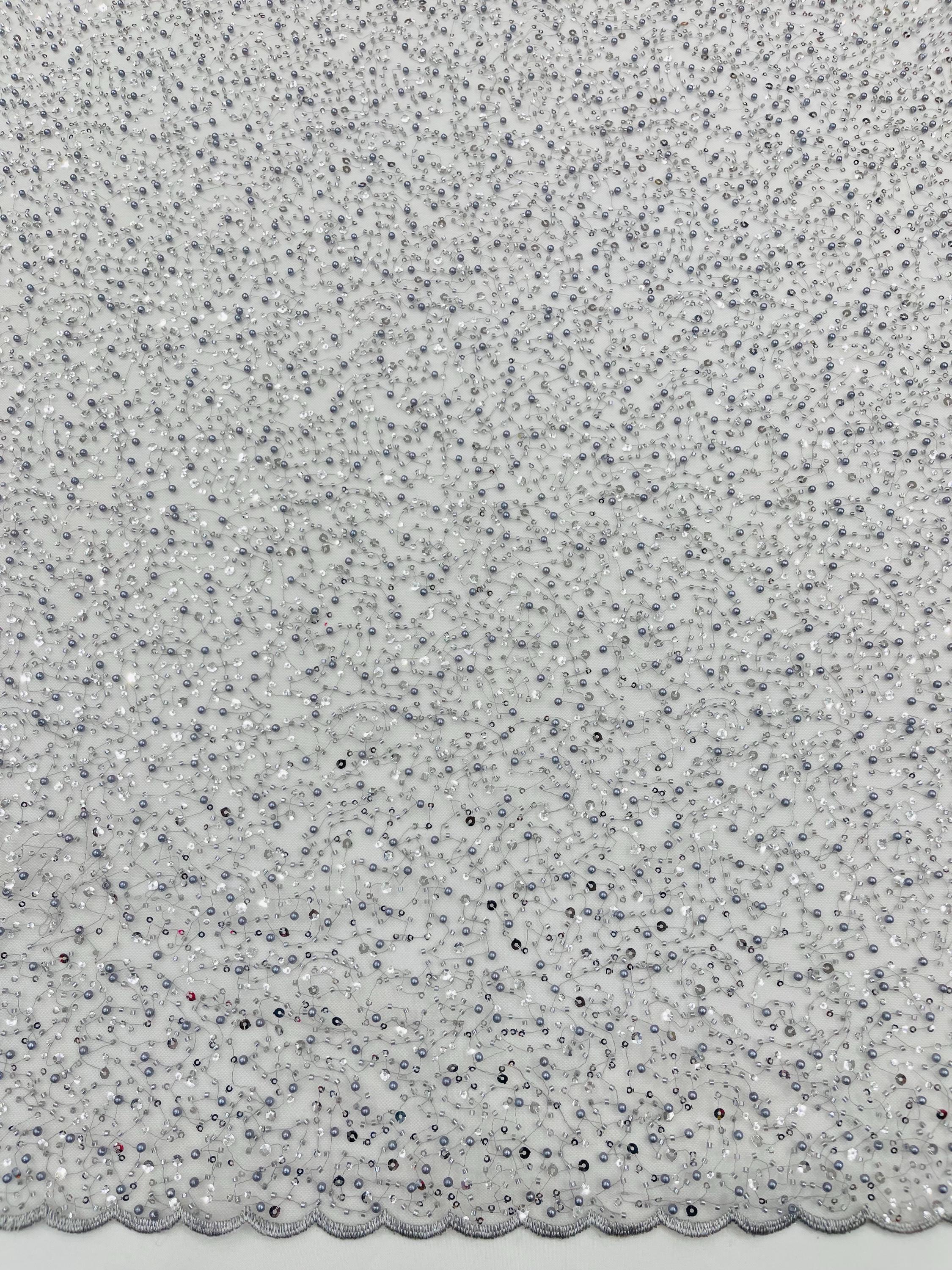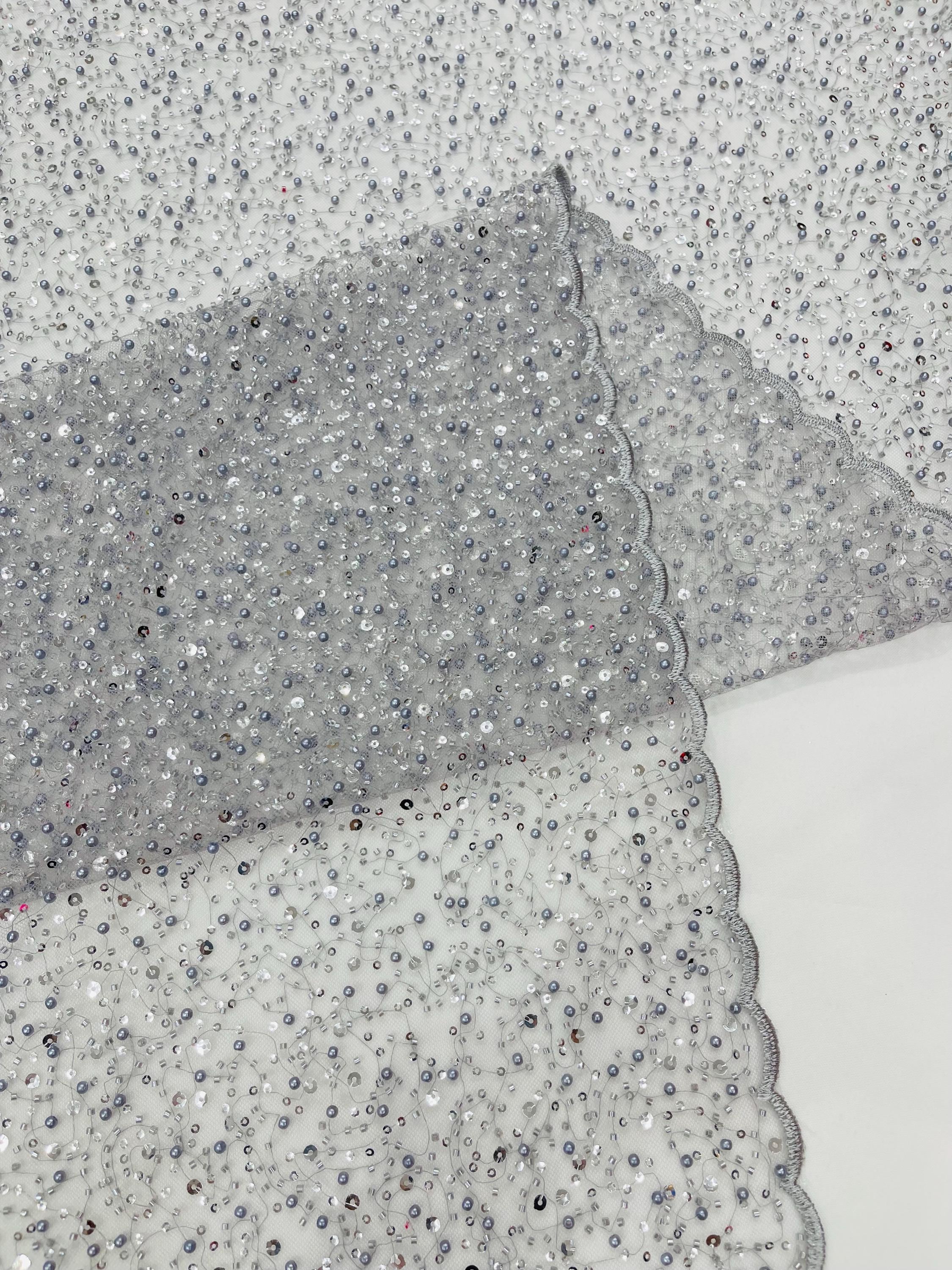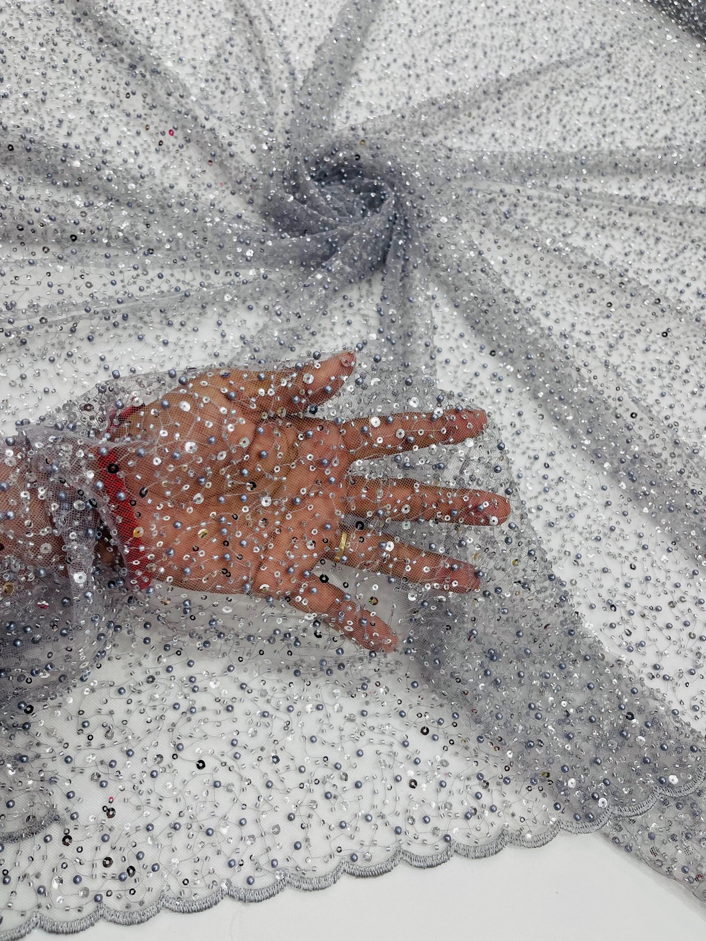 Silver Beaded Sequin Mesh Lace Fabric, Rain Design Embroidery By The Yard