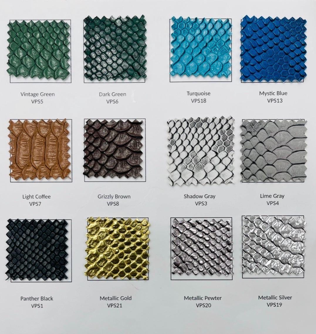 This viper snake skin Vinyl feels like the real leather but it's made of pvc. This viper skin Design is embossed and it looks exotic and it has a great texture.