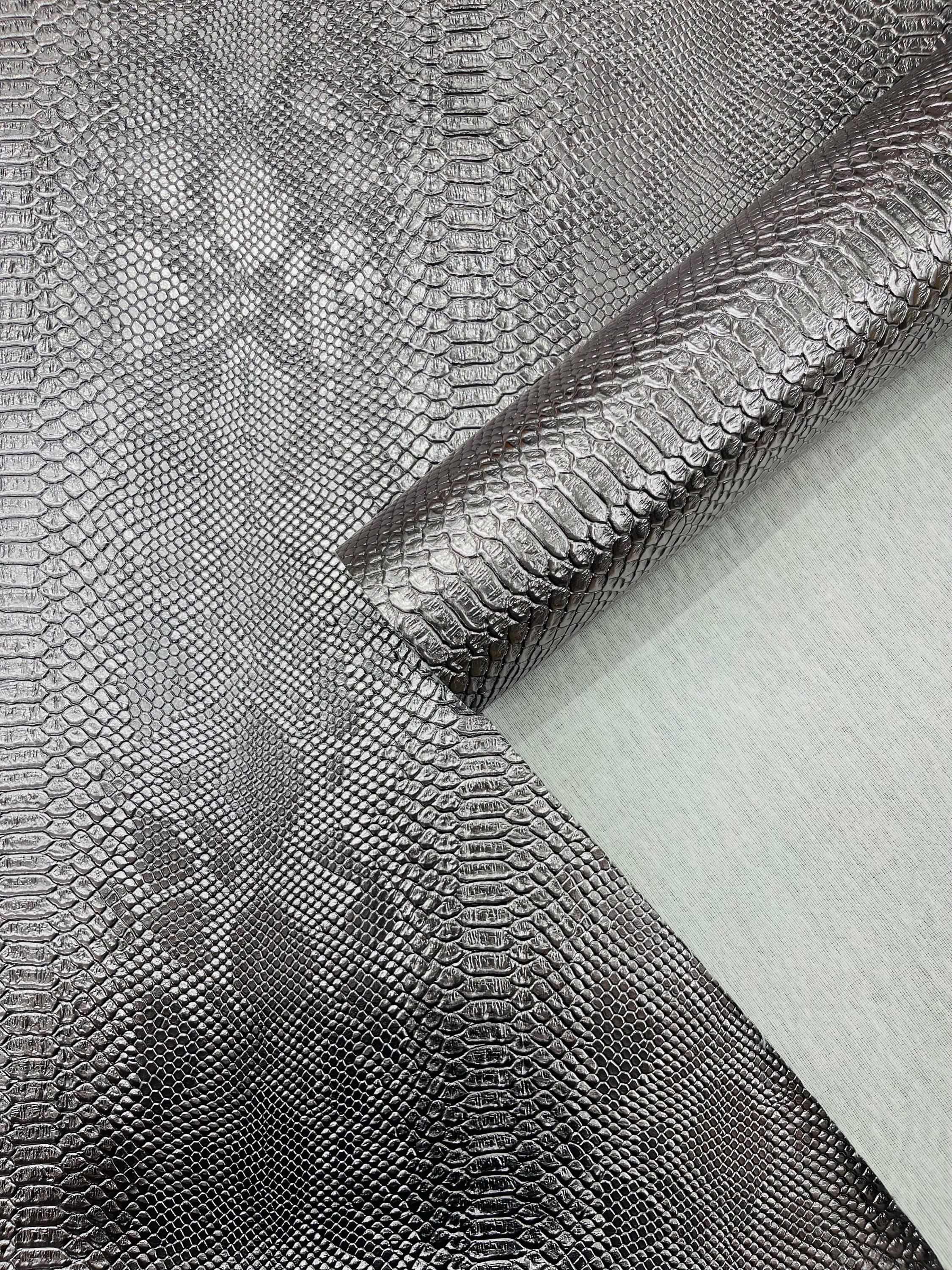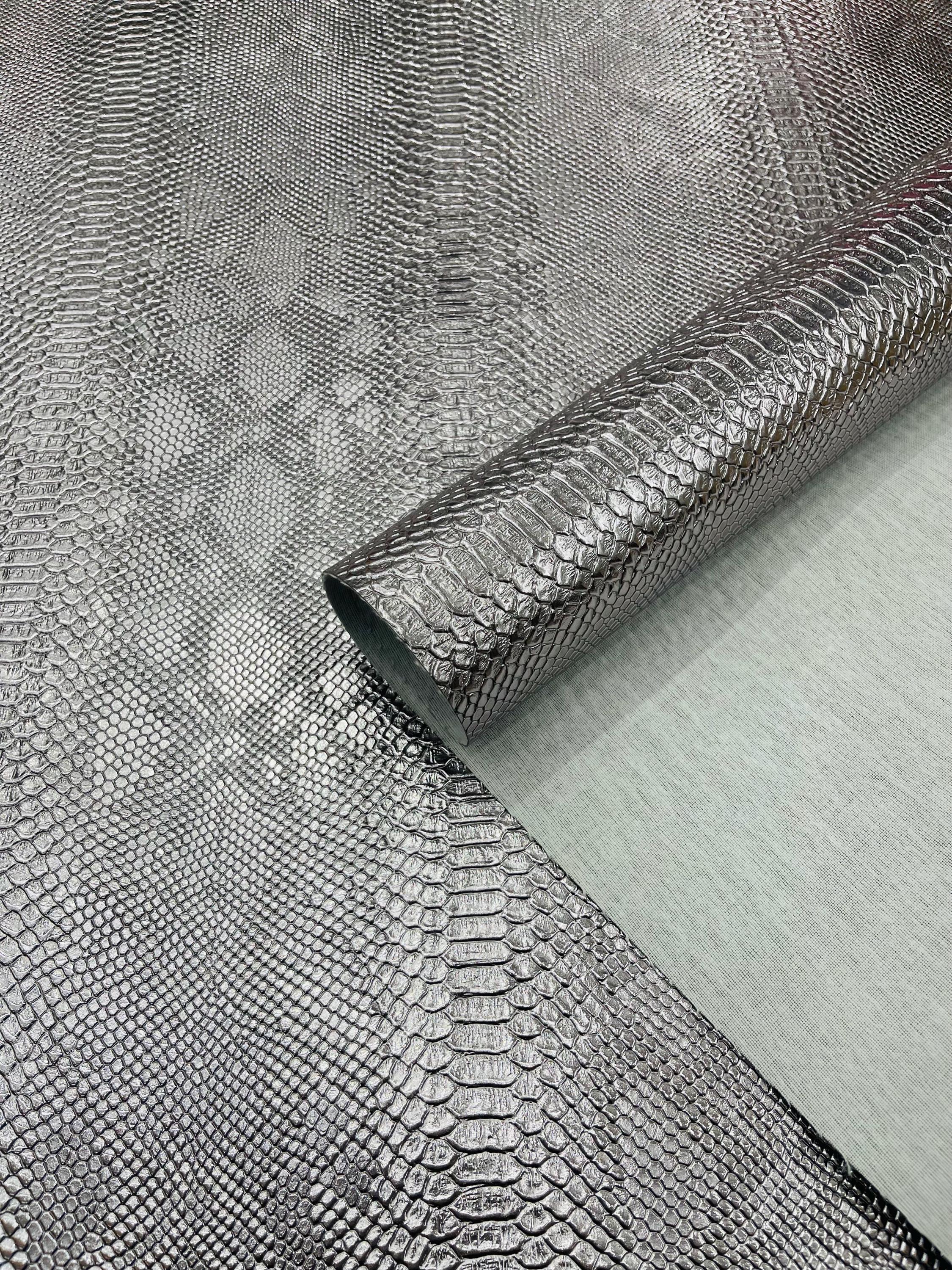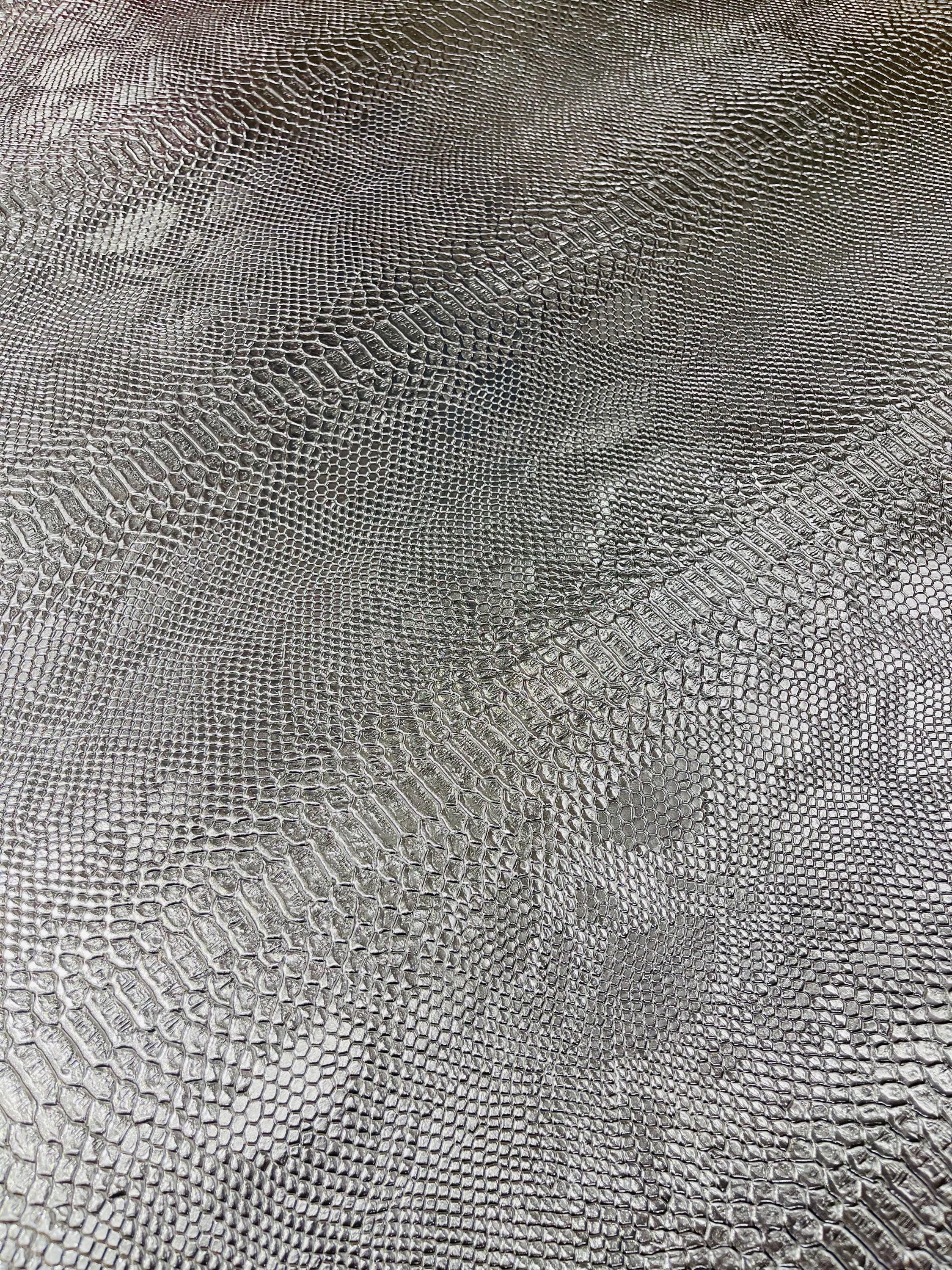 Metallic Pewter Faux Viper Snake Skin Vinyl-faux Leather-3D Scales-sold Vinyl For upholstery By The Yard