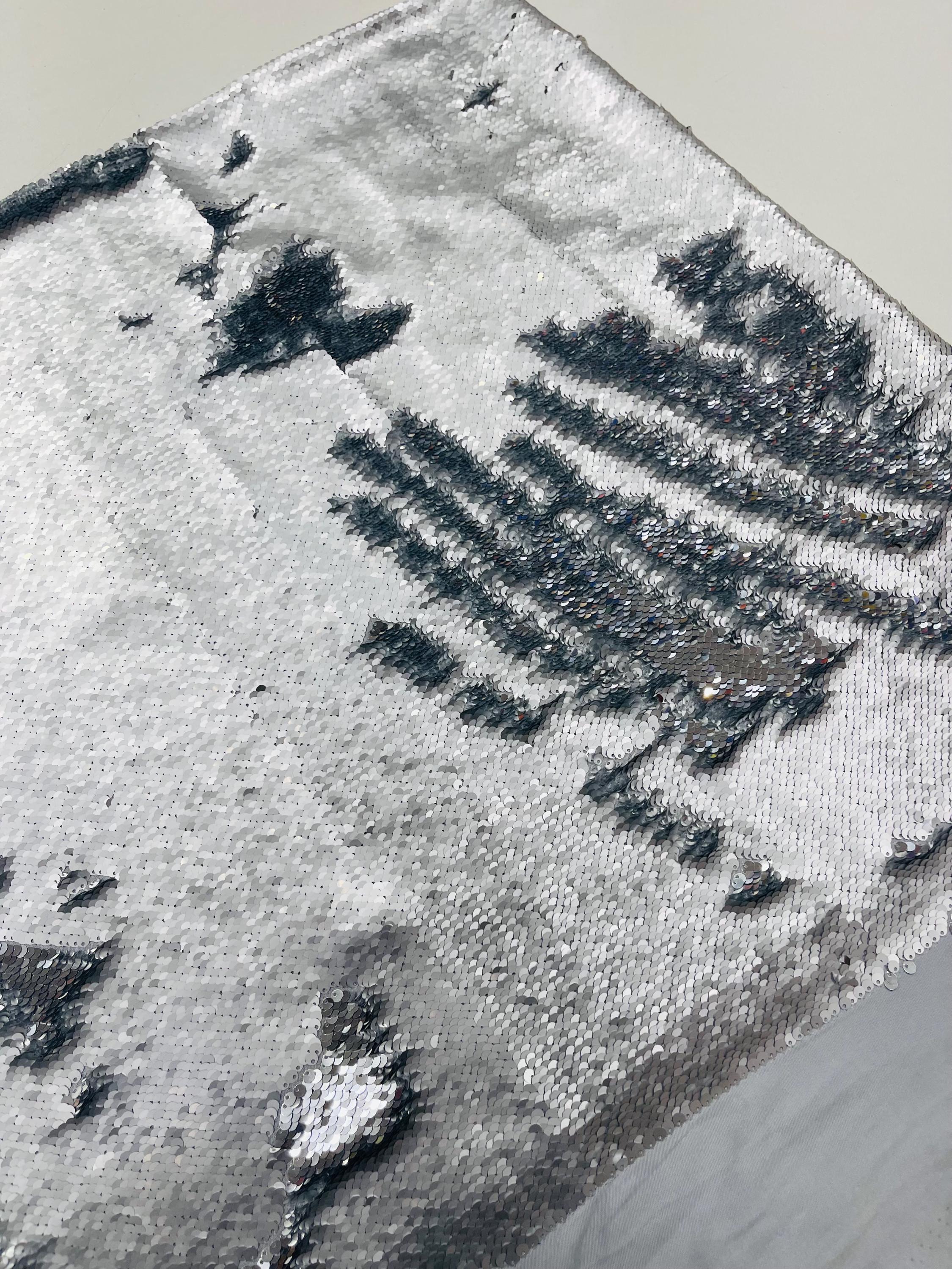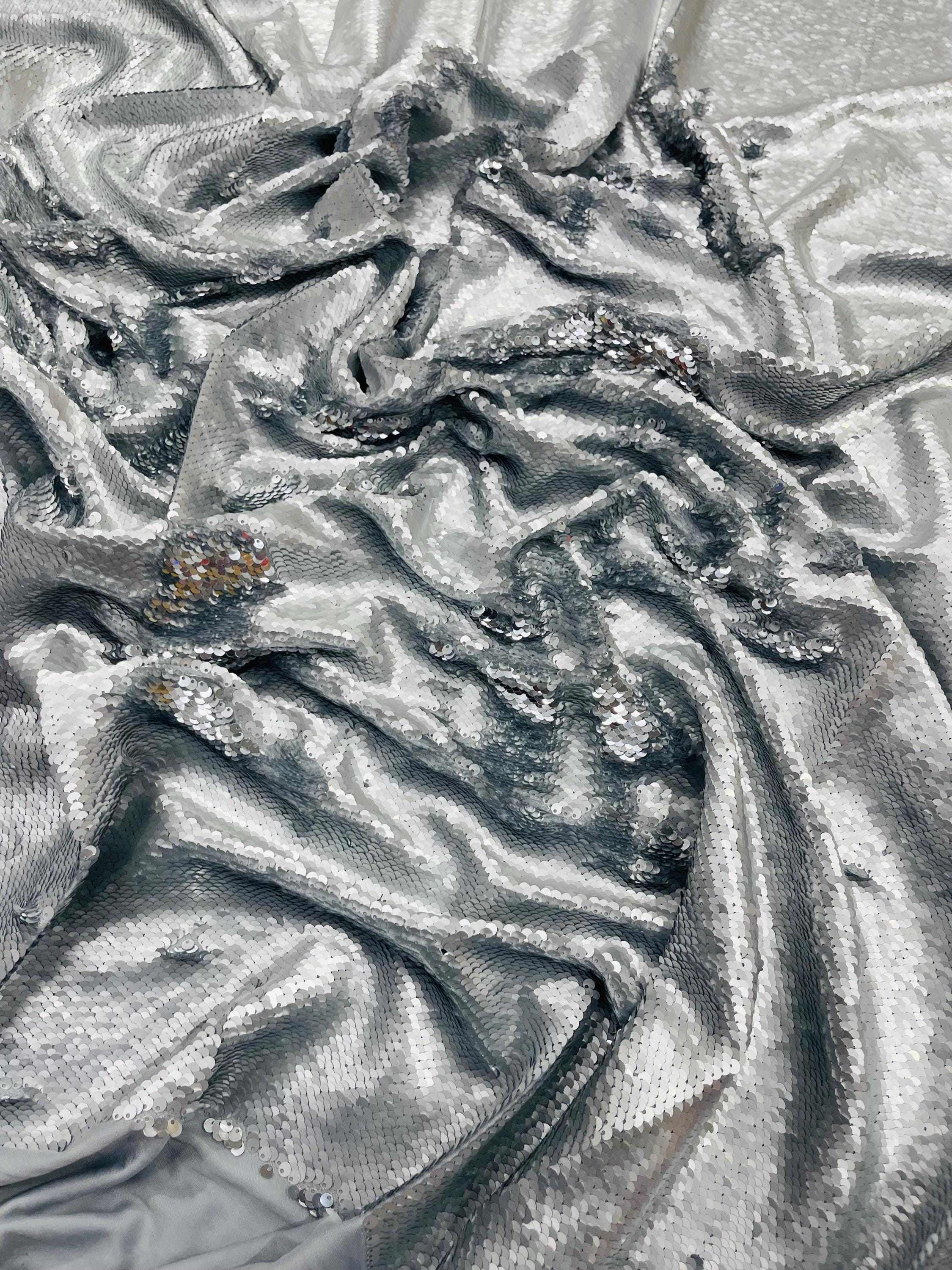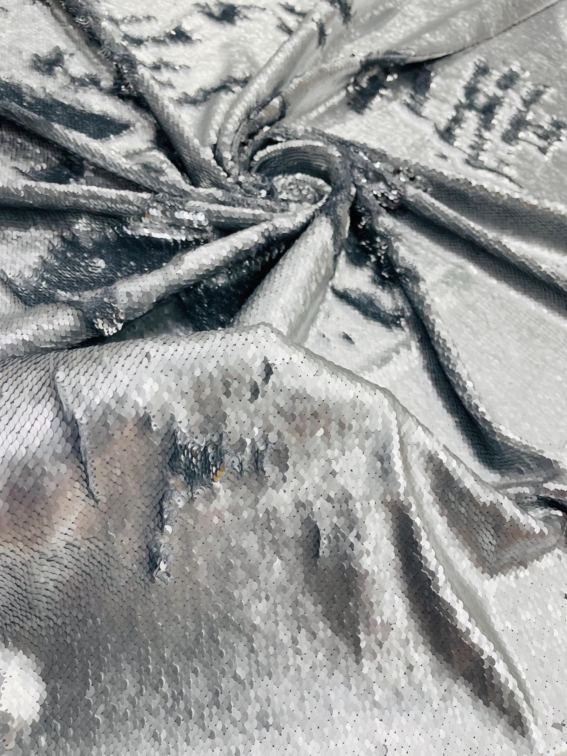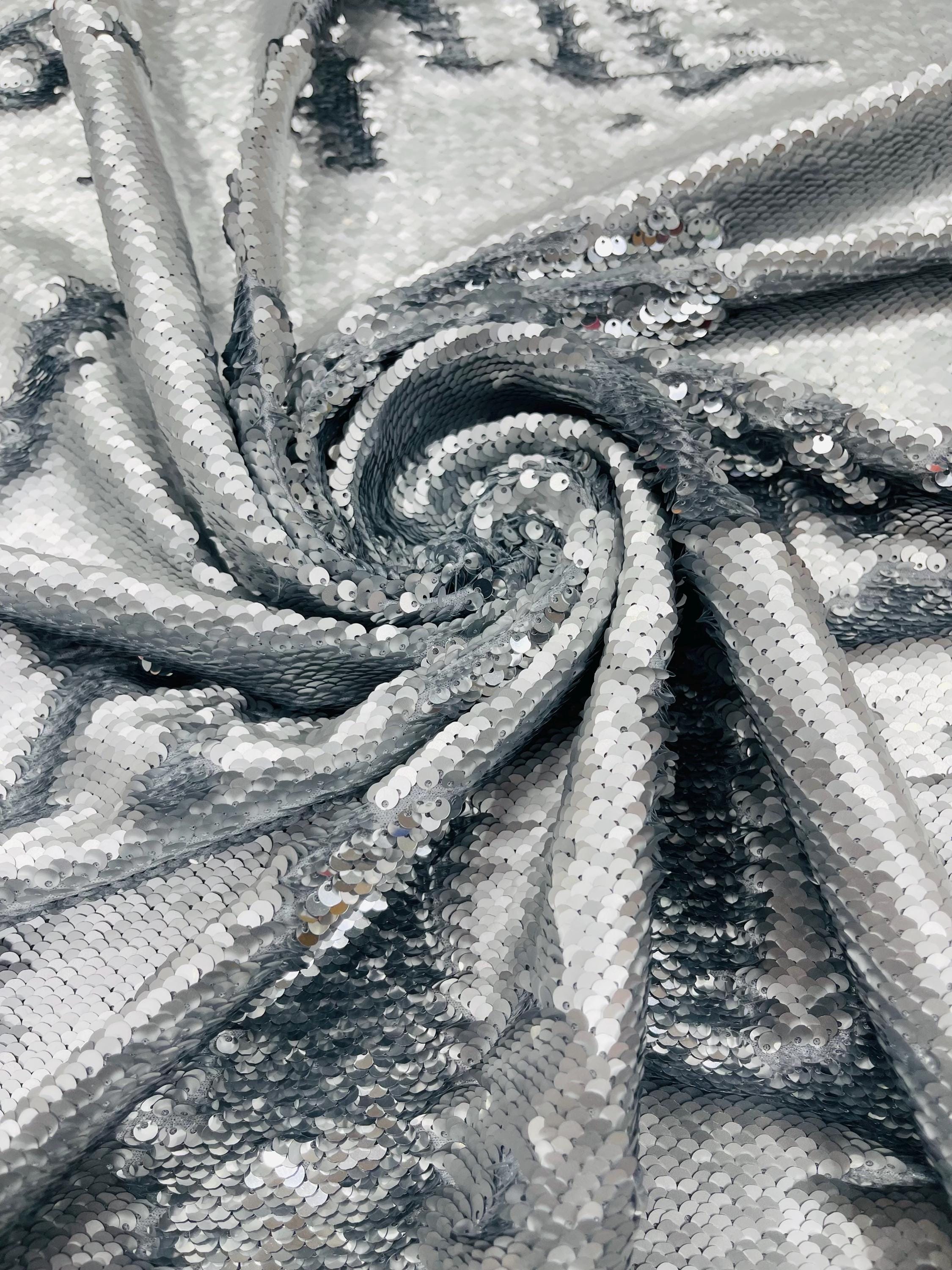 Matte Silver/Silver Flip Sequins Fabric: 2-Way Stretch Reversible Material