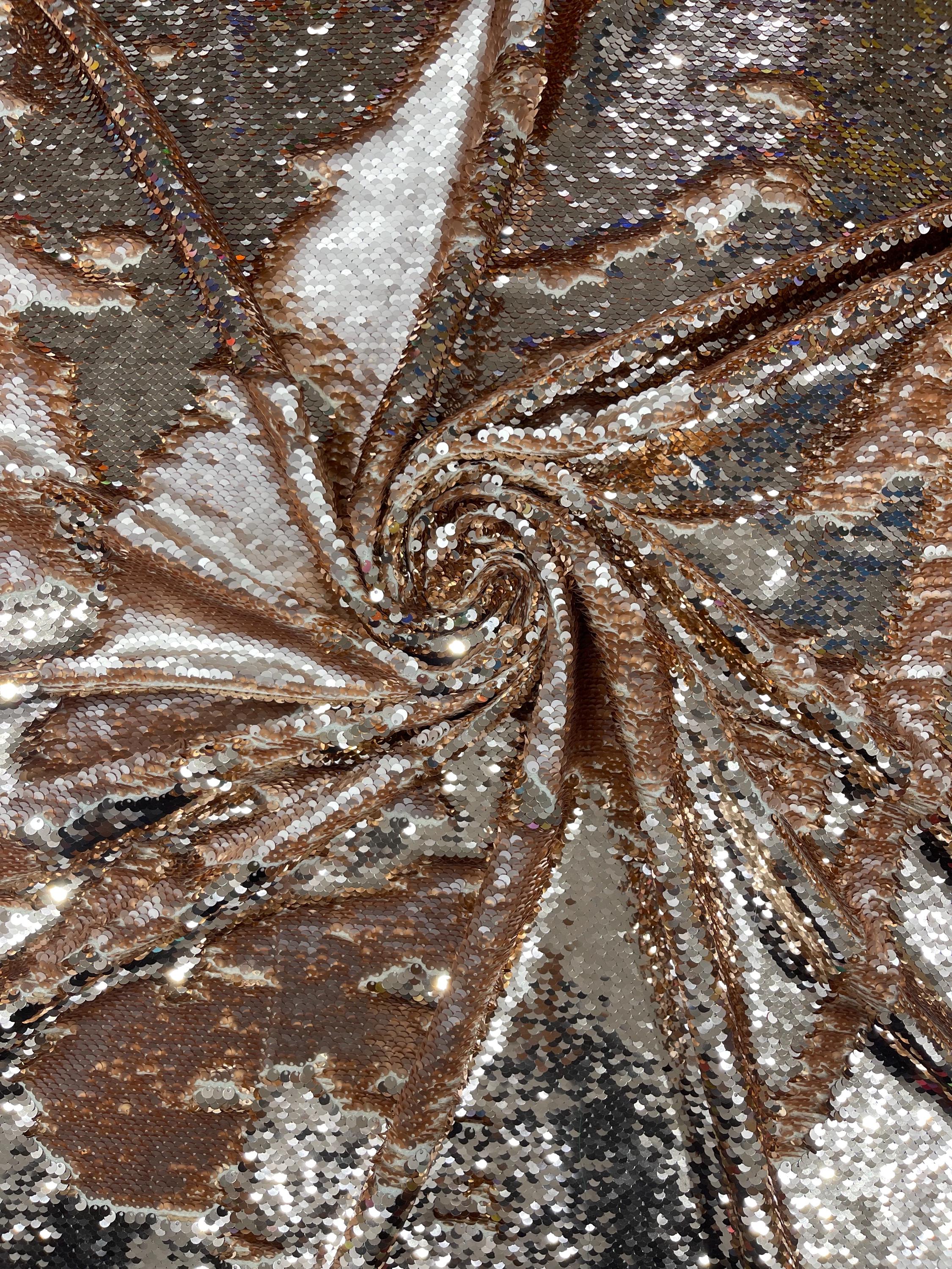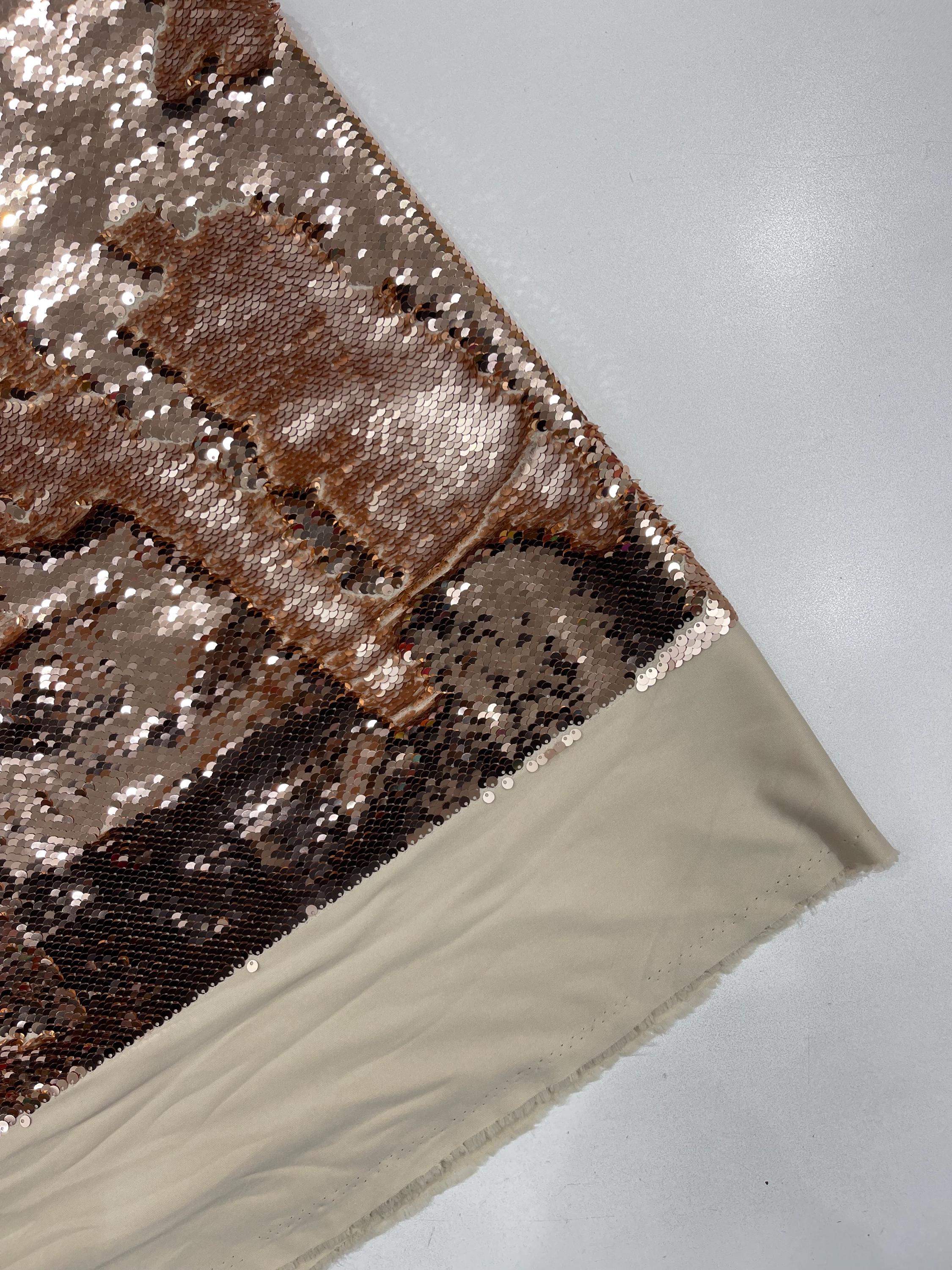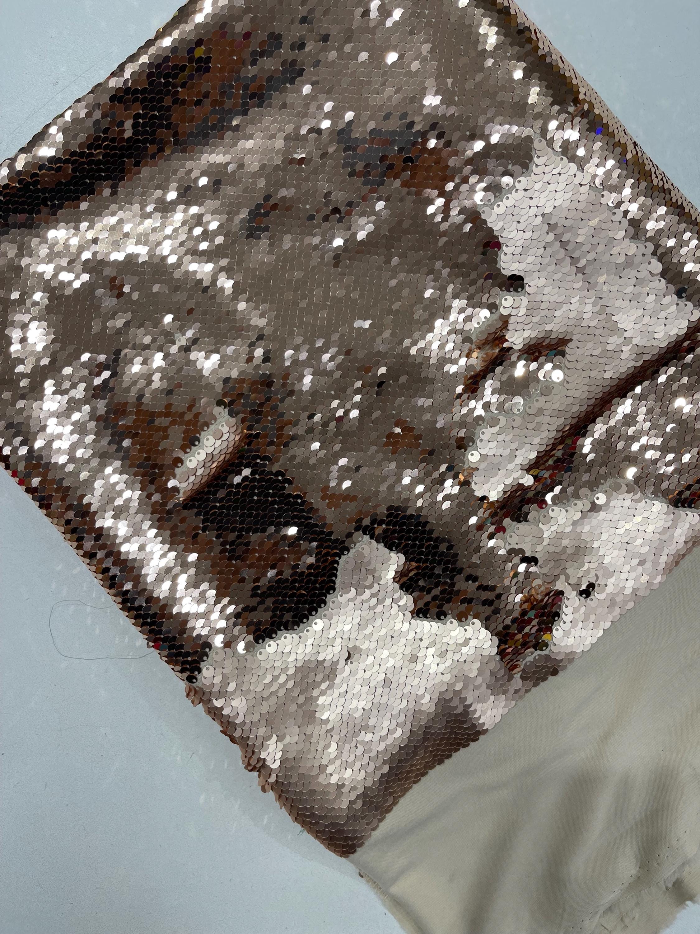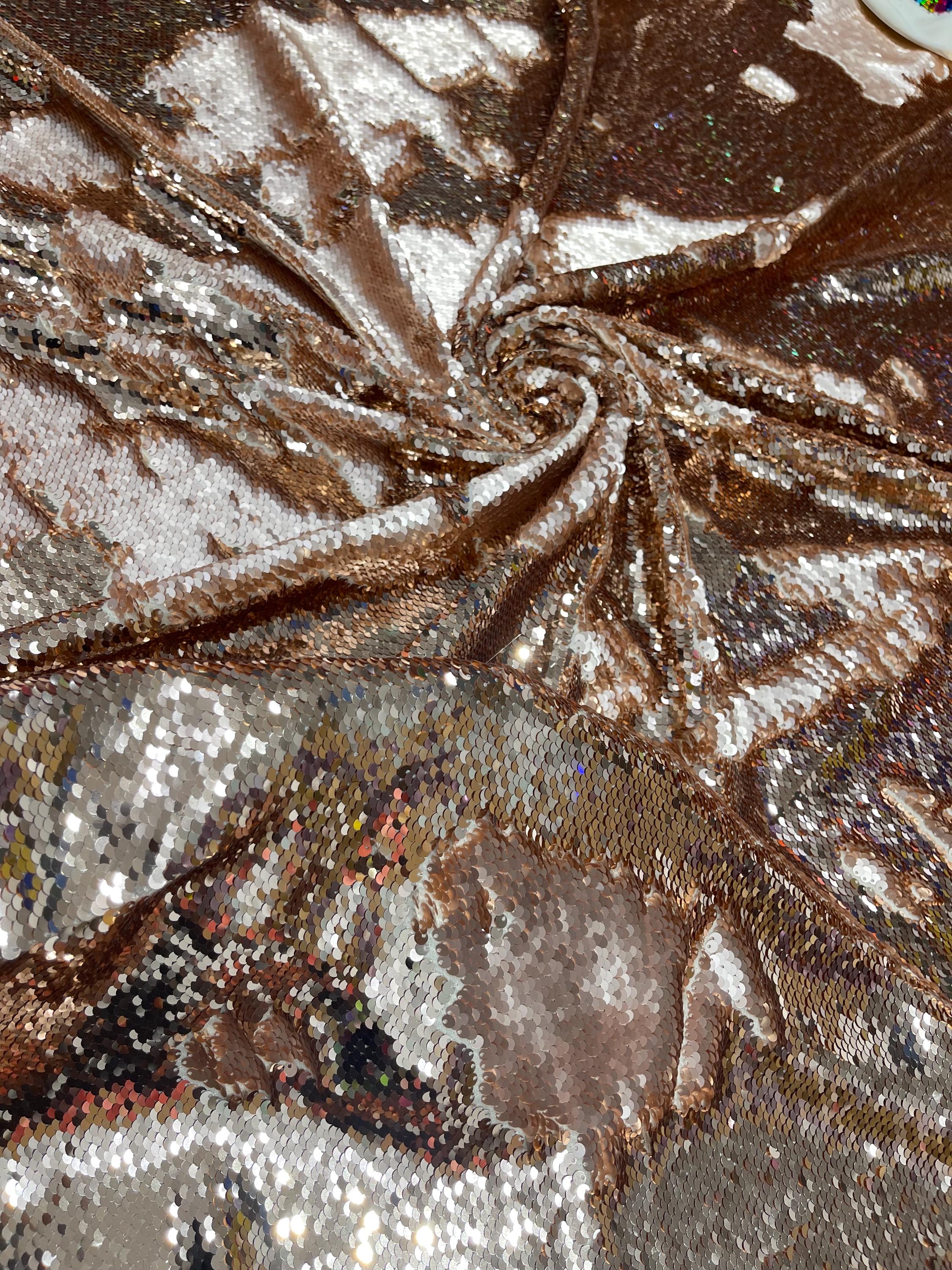 Matte Rose Gold Flip Sequins Fabric: 2-Way Stretch Mermaid Scales Polyester