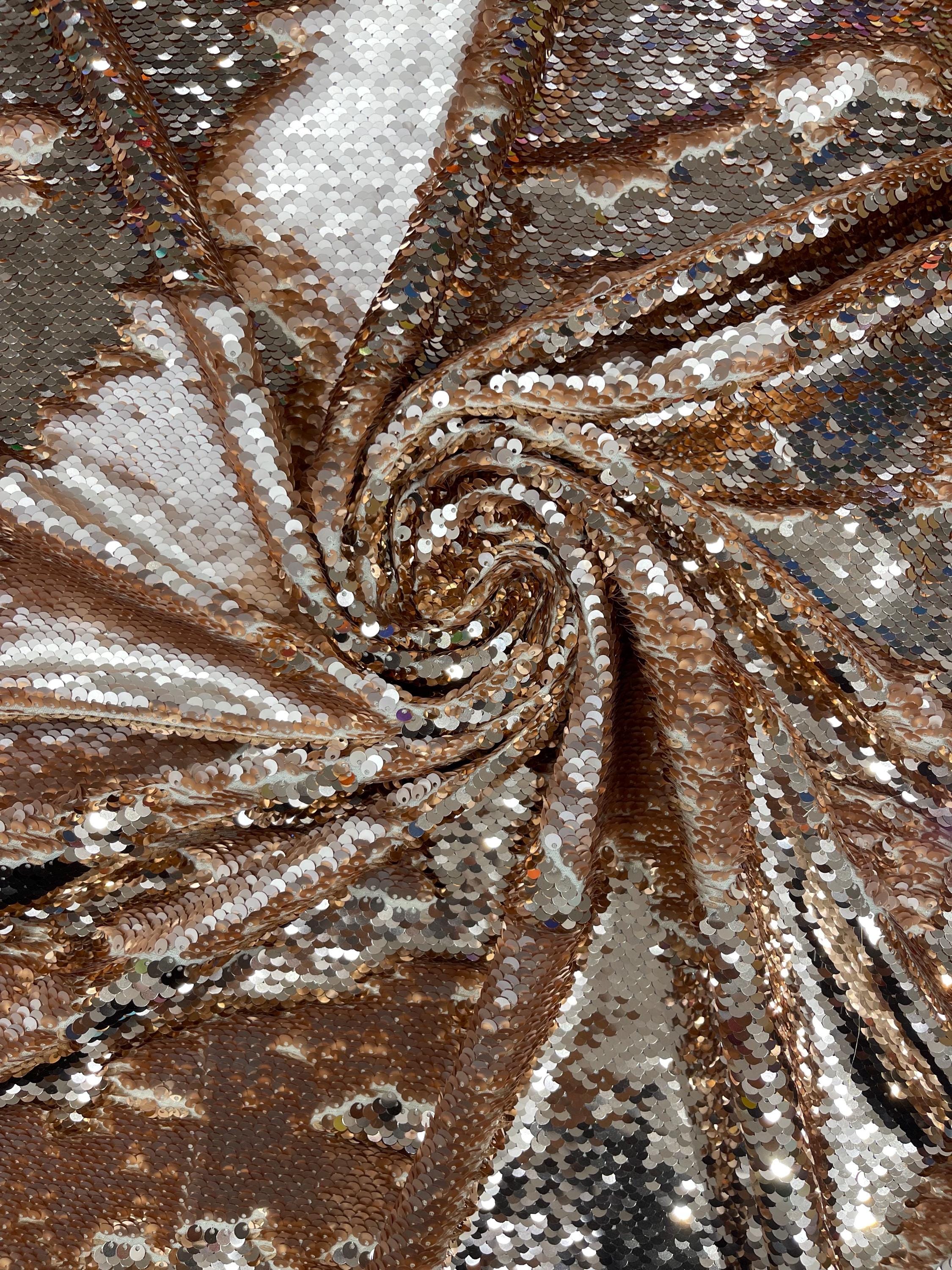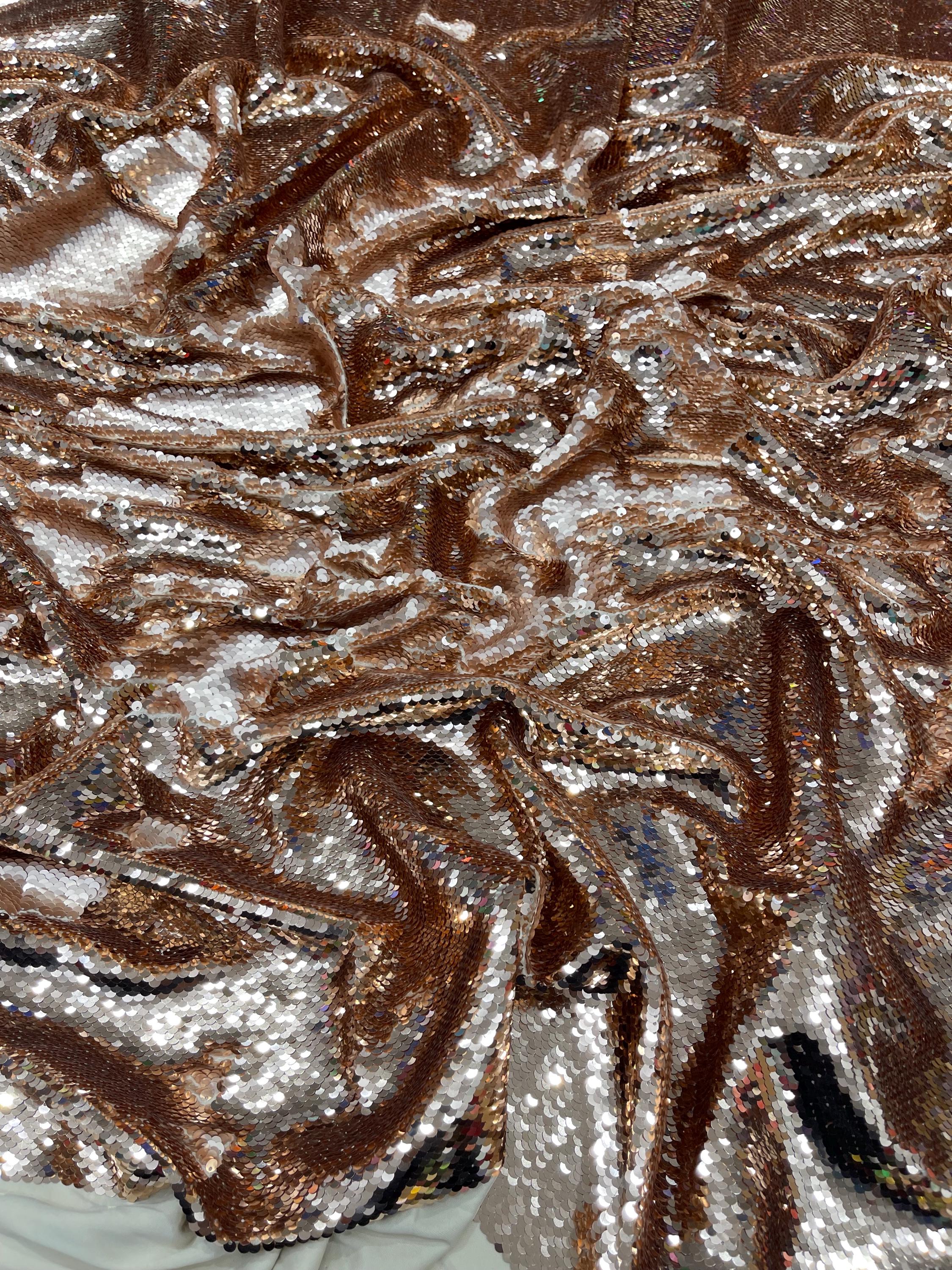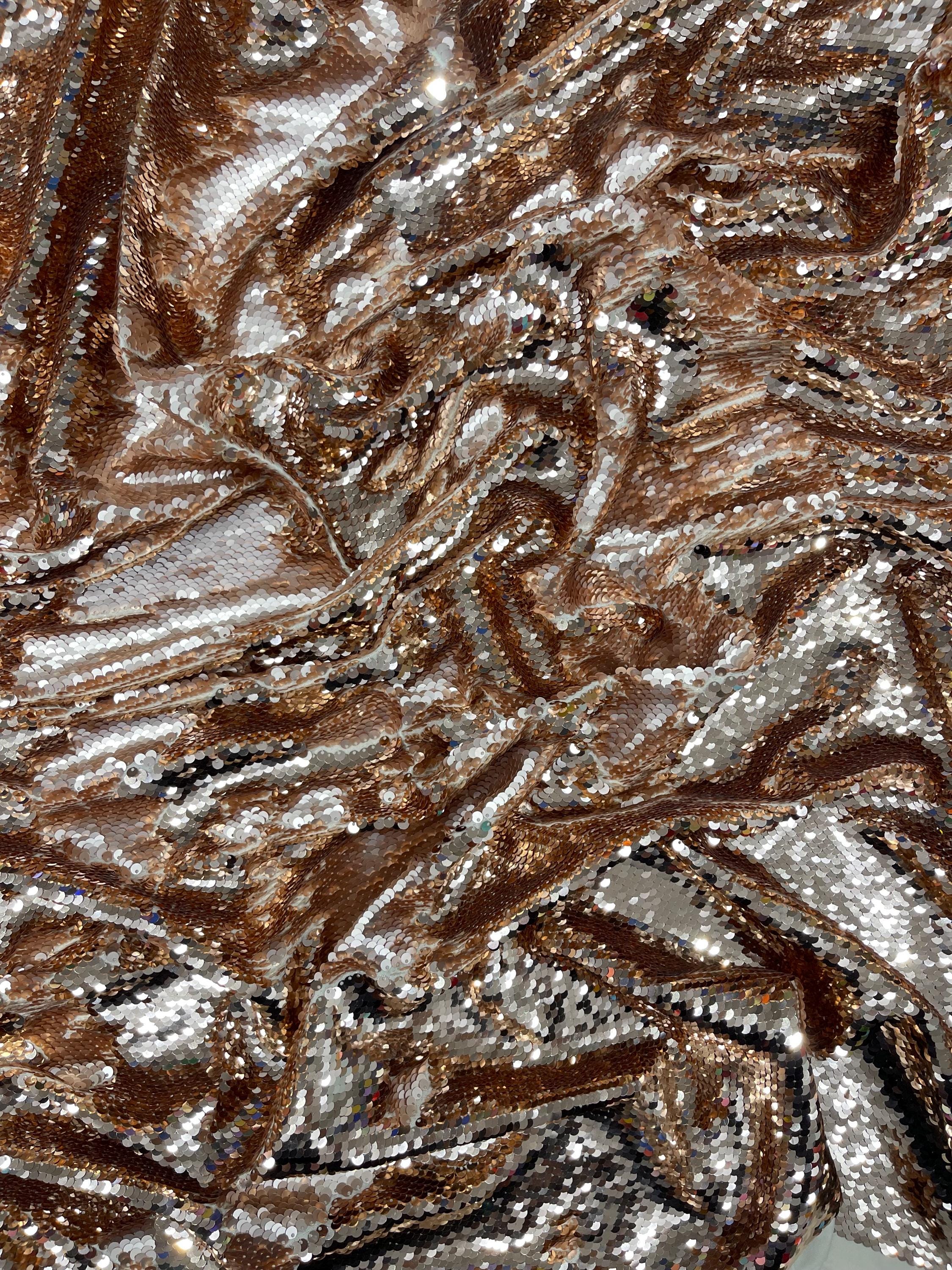 Matte Rose Gold Flip Sequins Fabric: 2-Way Stretch Mermaid Scales Polyester
