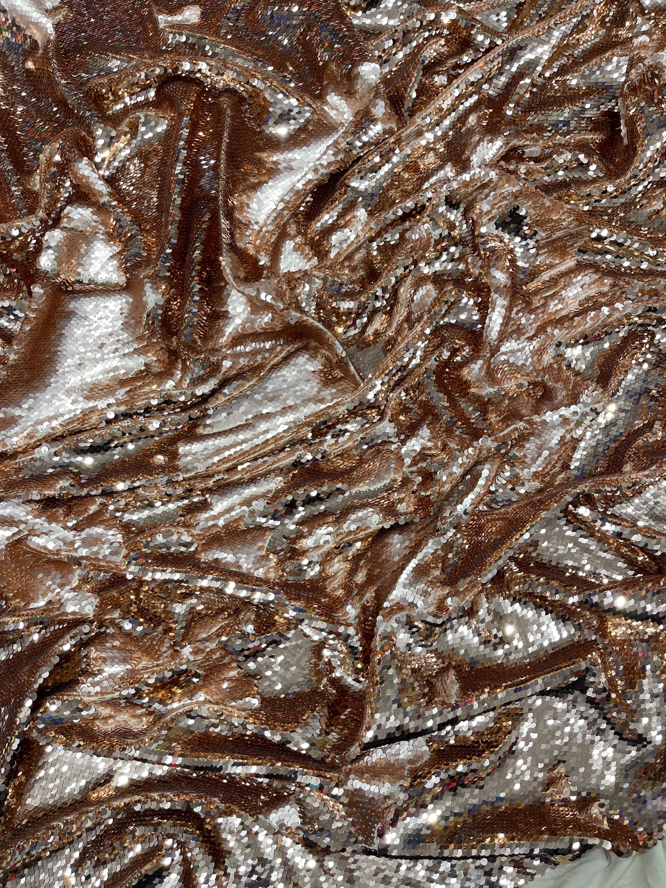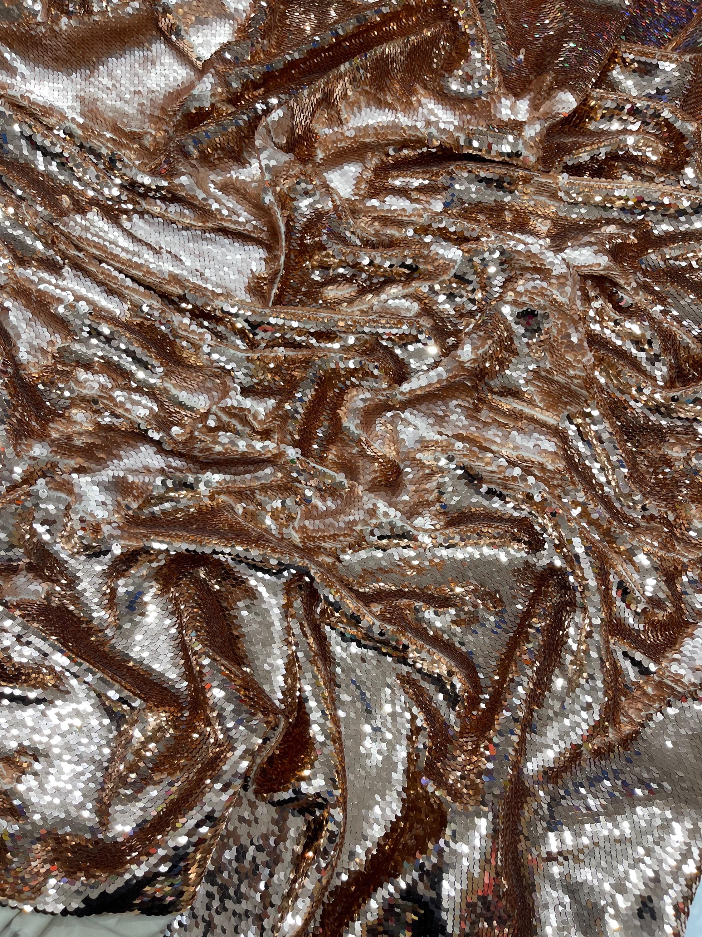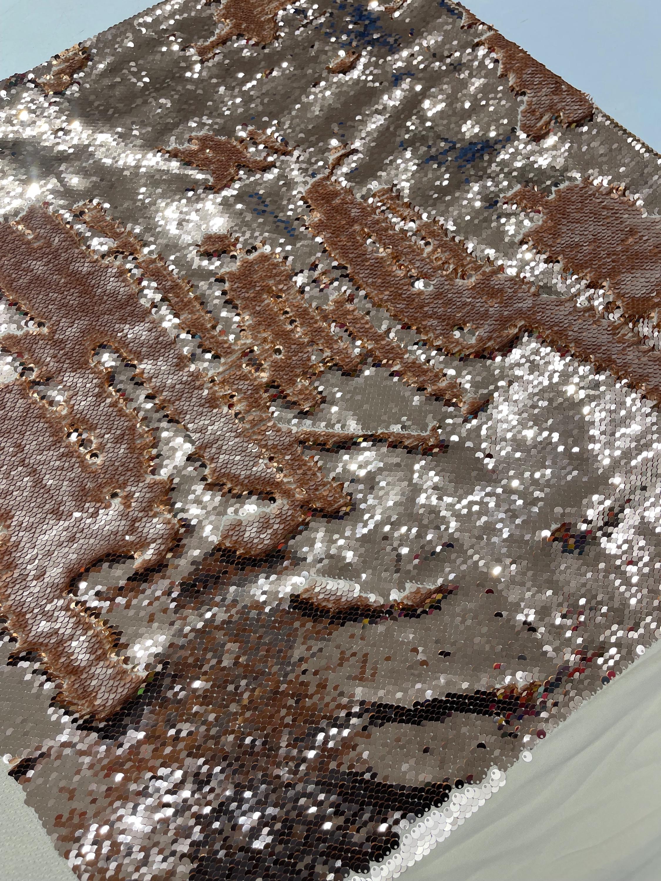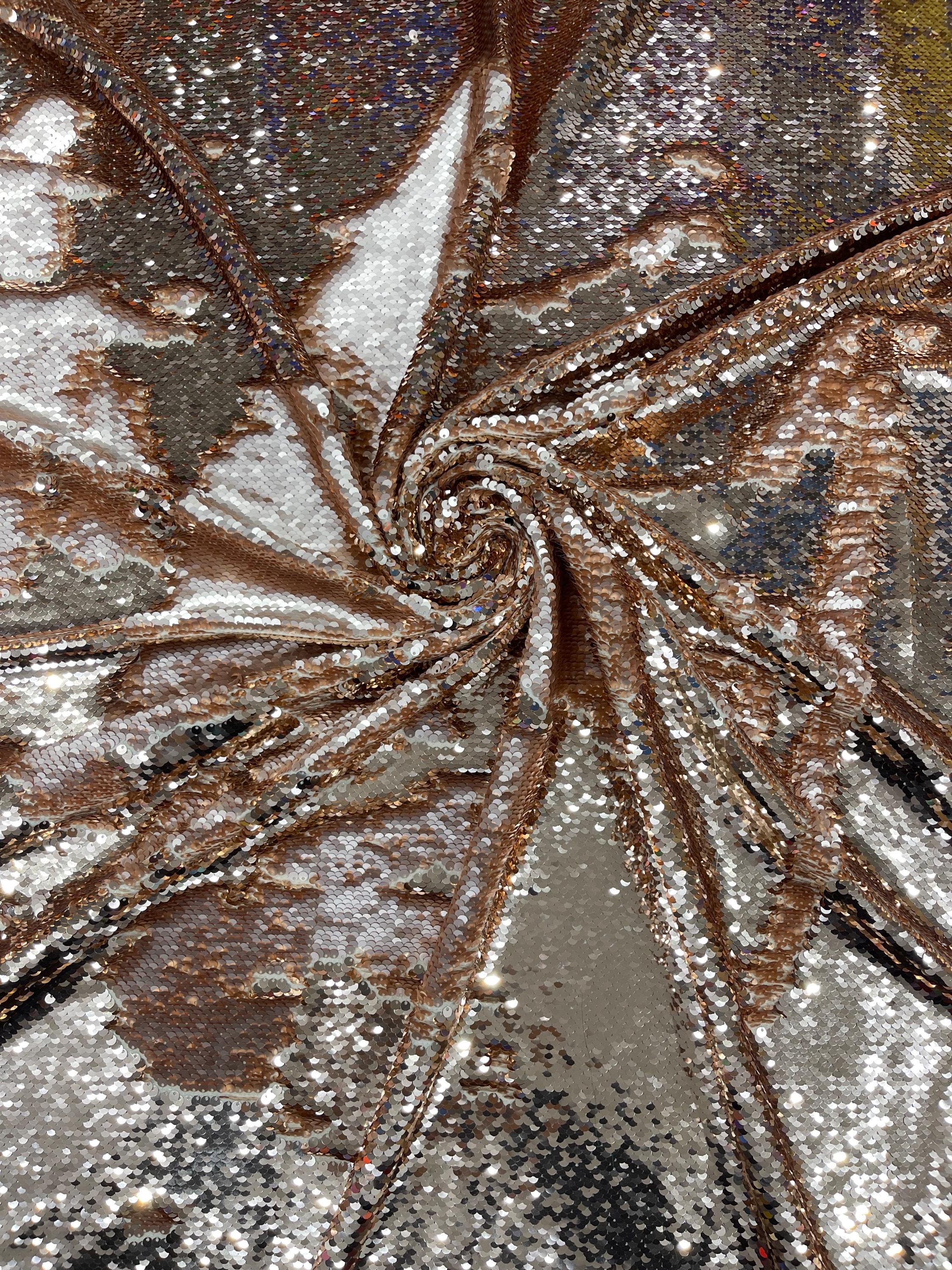 Matte Rose Gold Flip Sequins Fabric: 2-Way Stretch Mermaid Scales Polyester