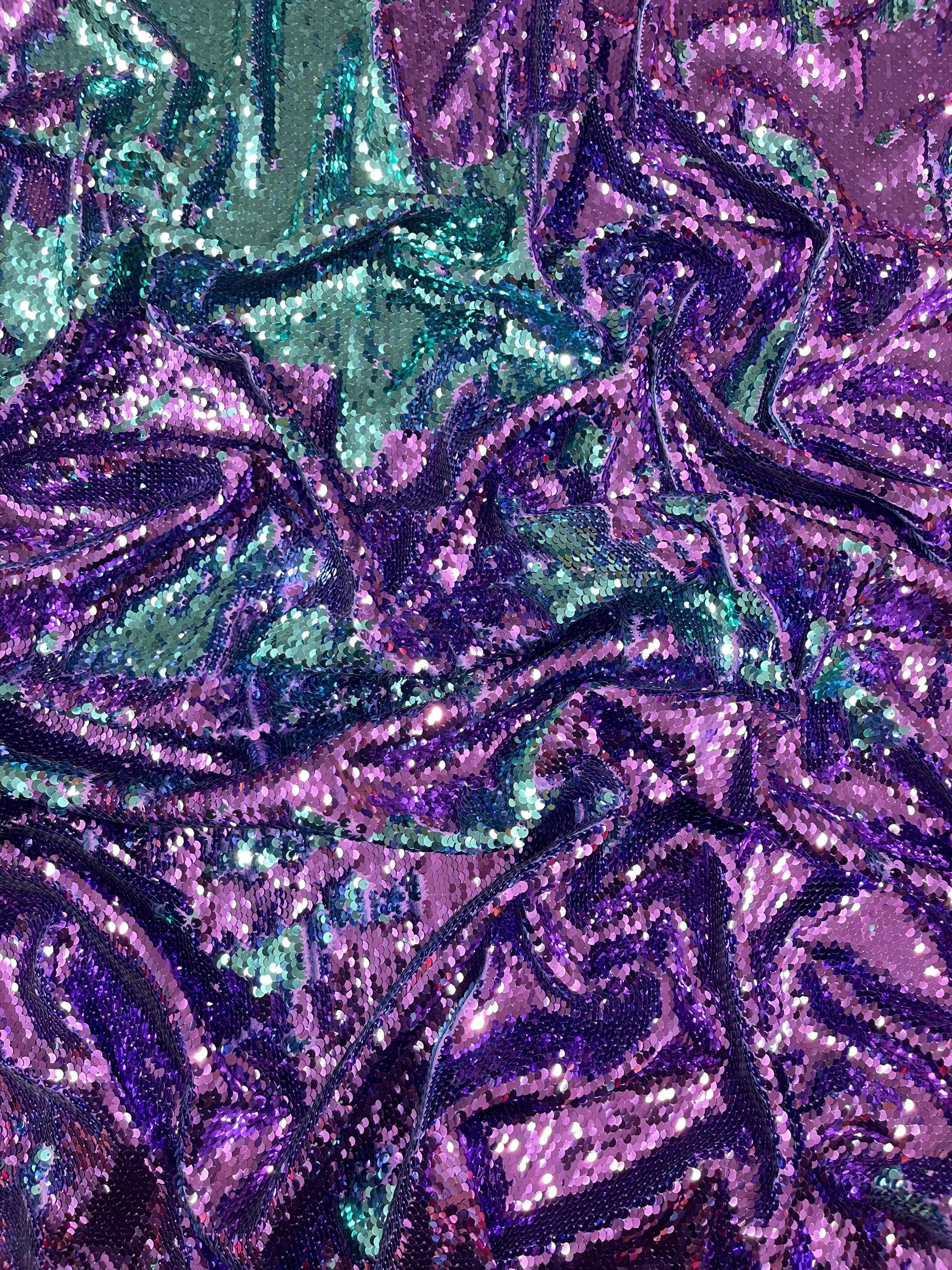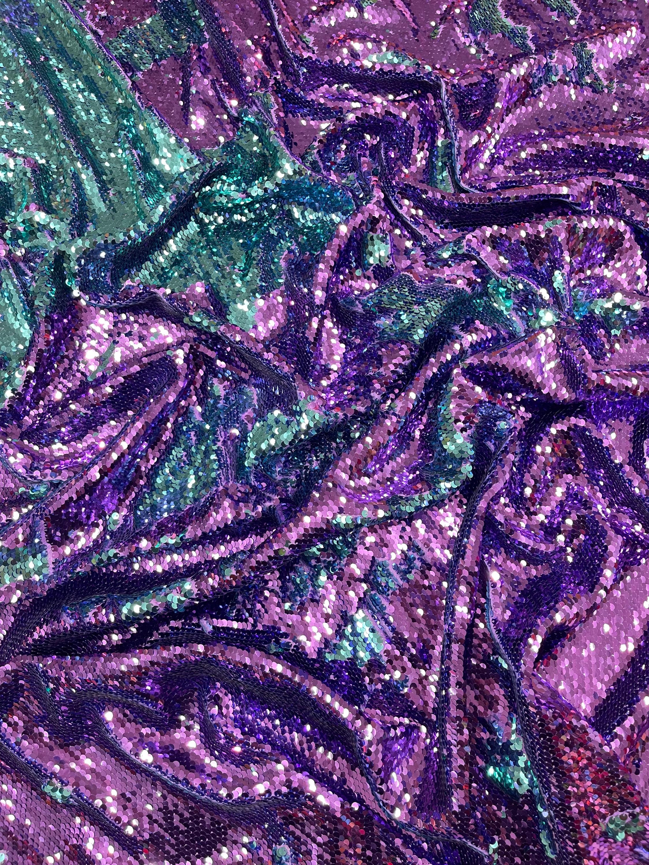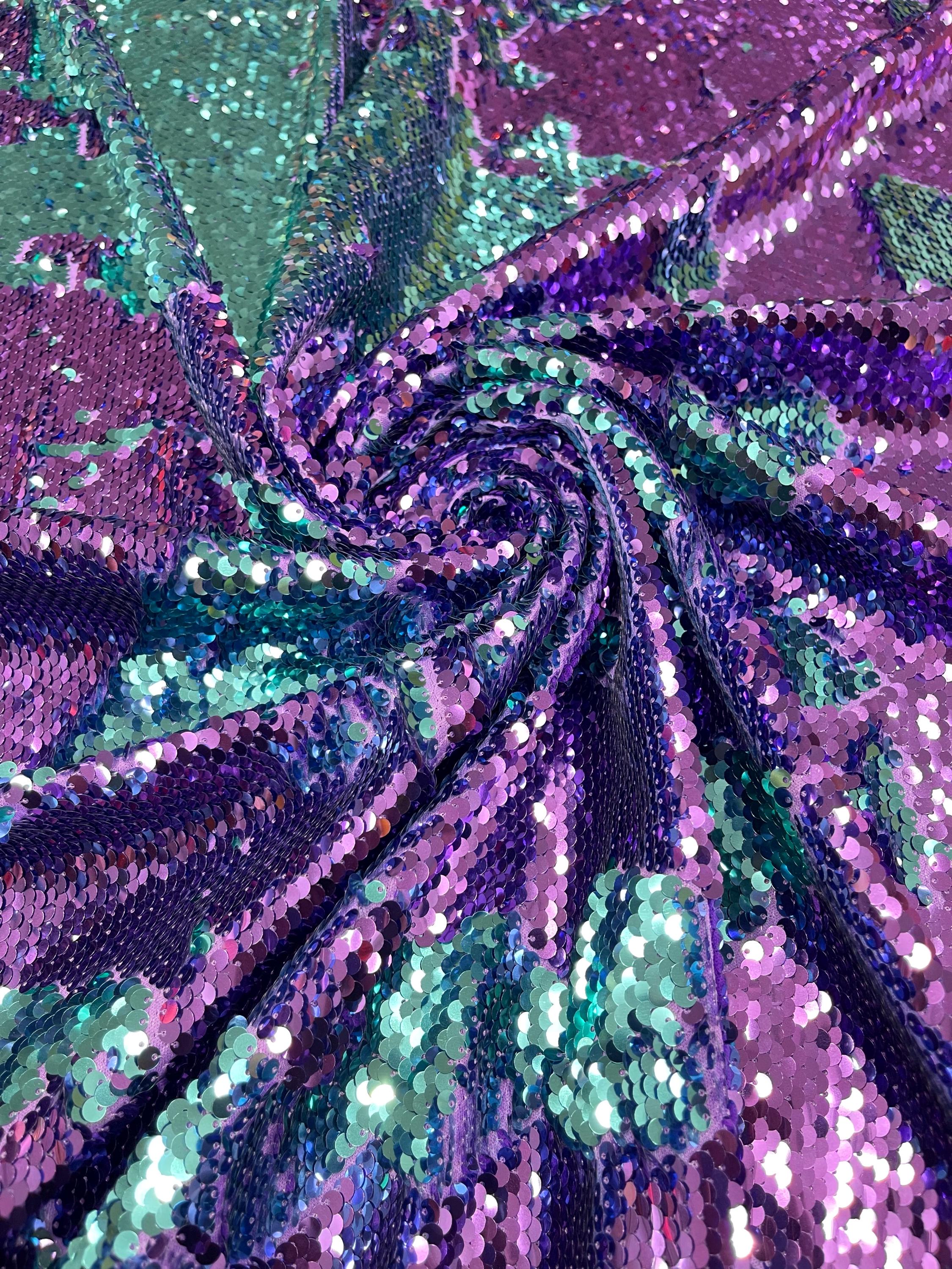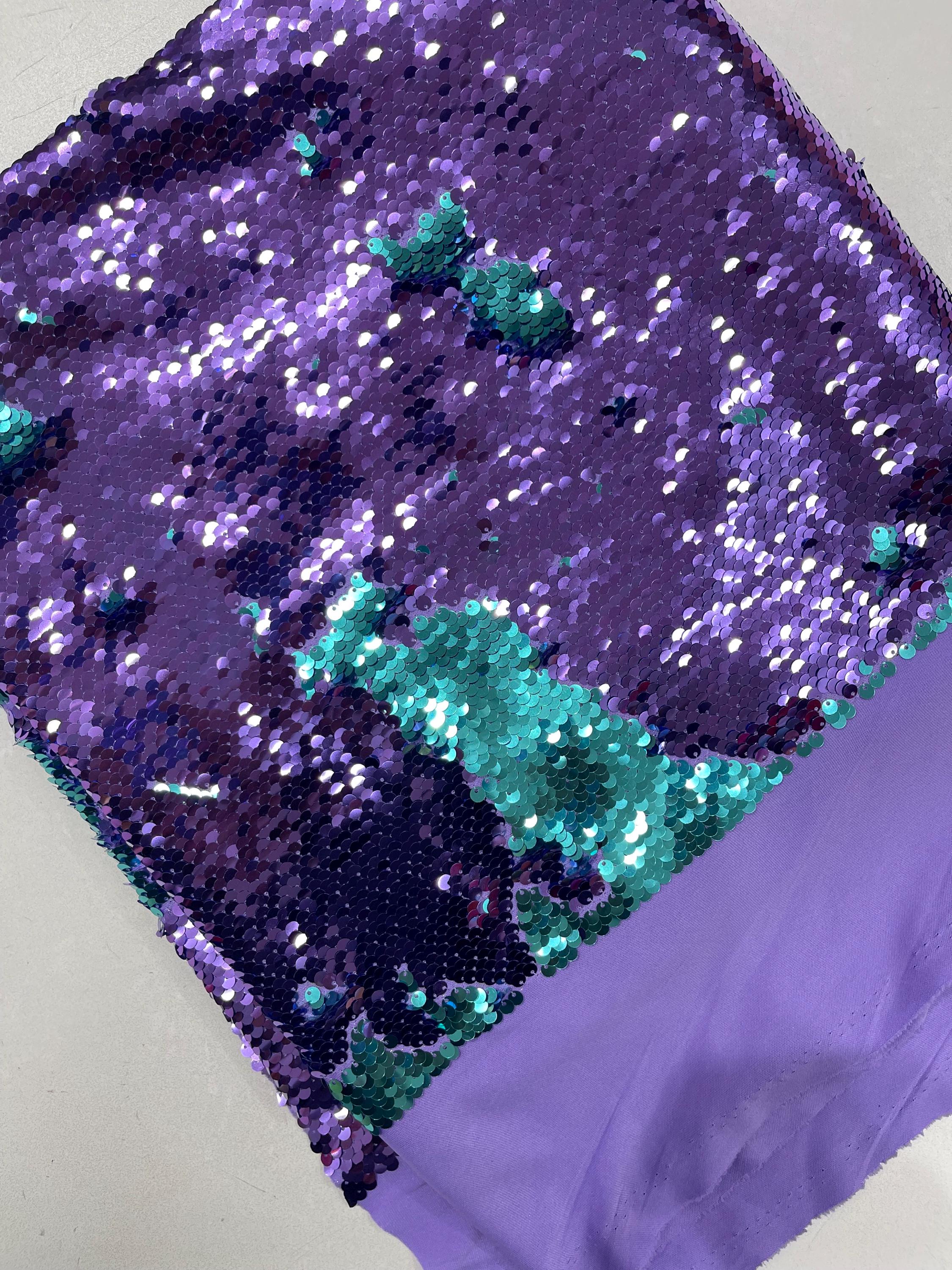 Purple/Turquoise Flip Up Sequins Reversible, 2-Way Stretch 58/60” Sequins Fabric Nightgowns-Prom Gown