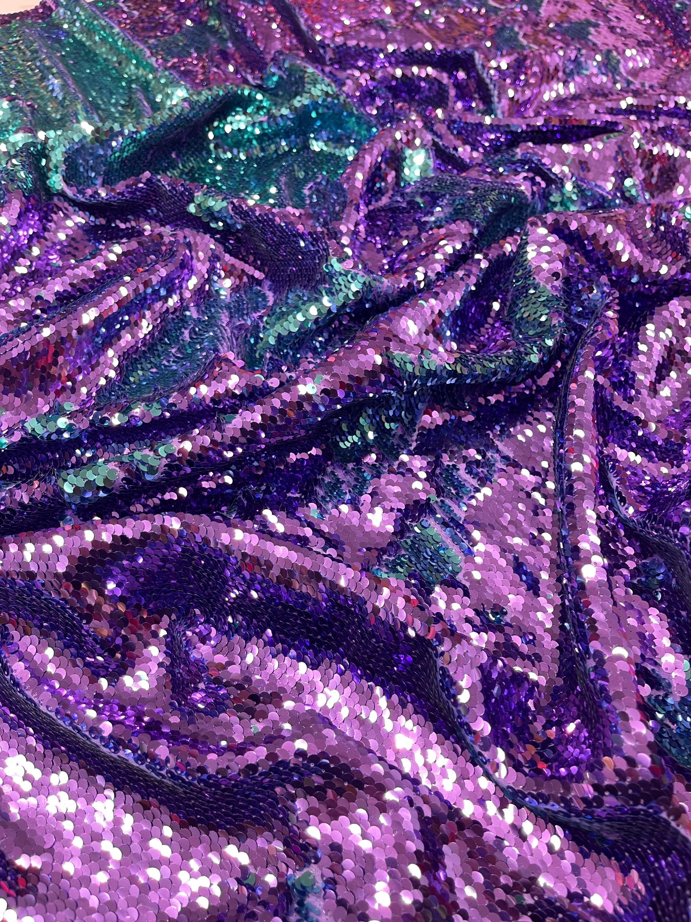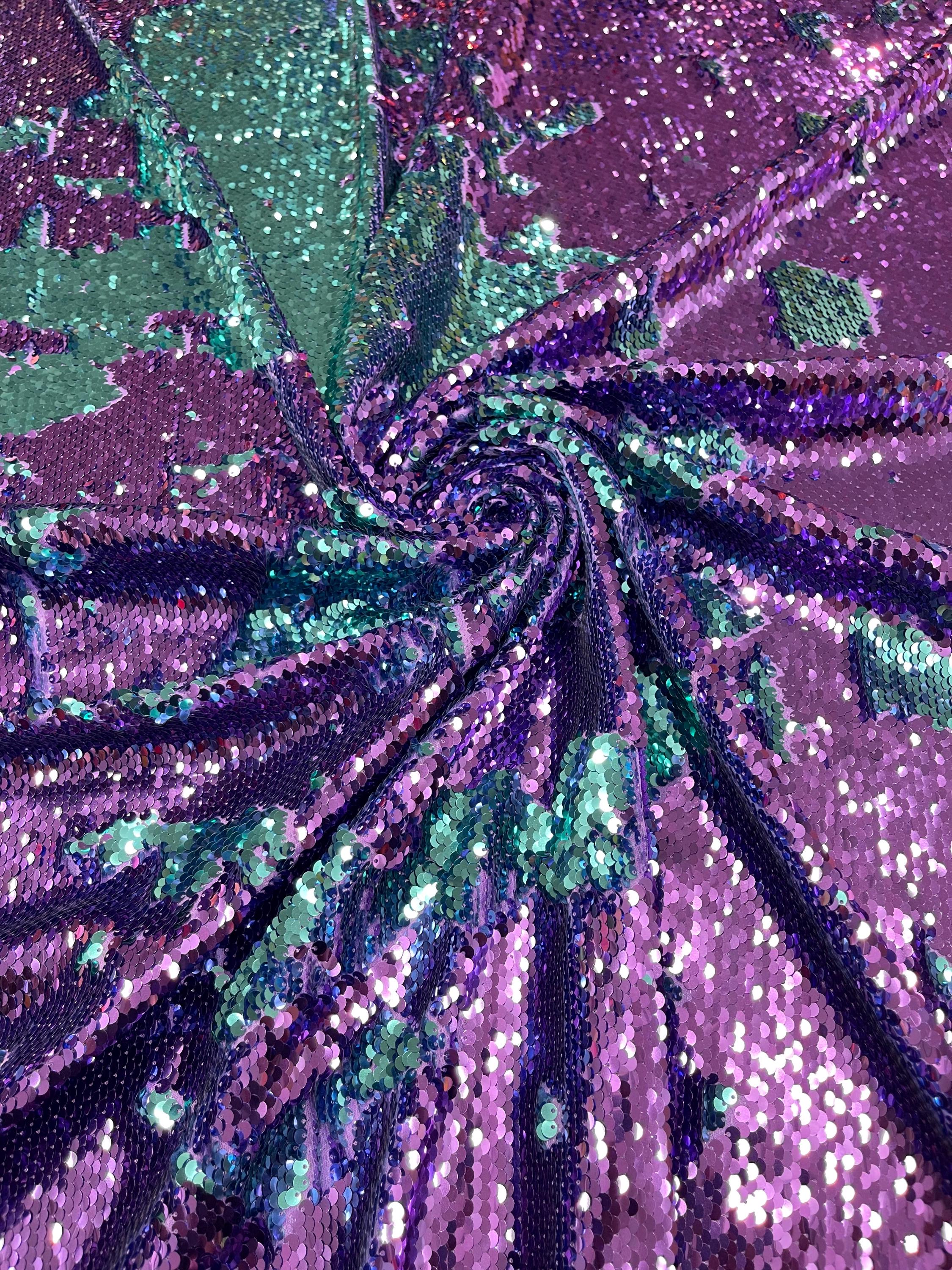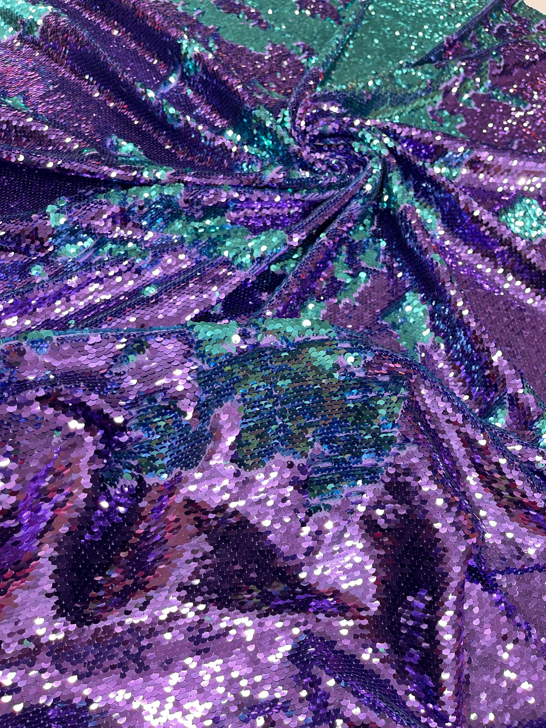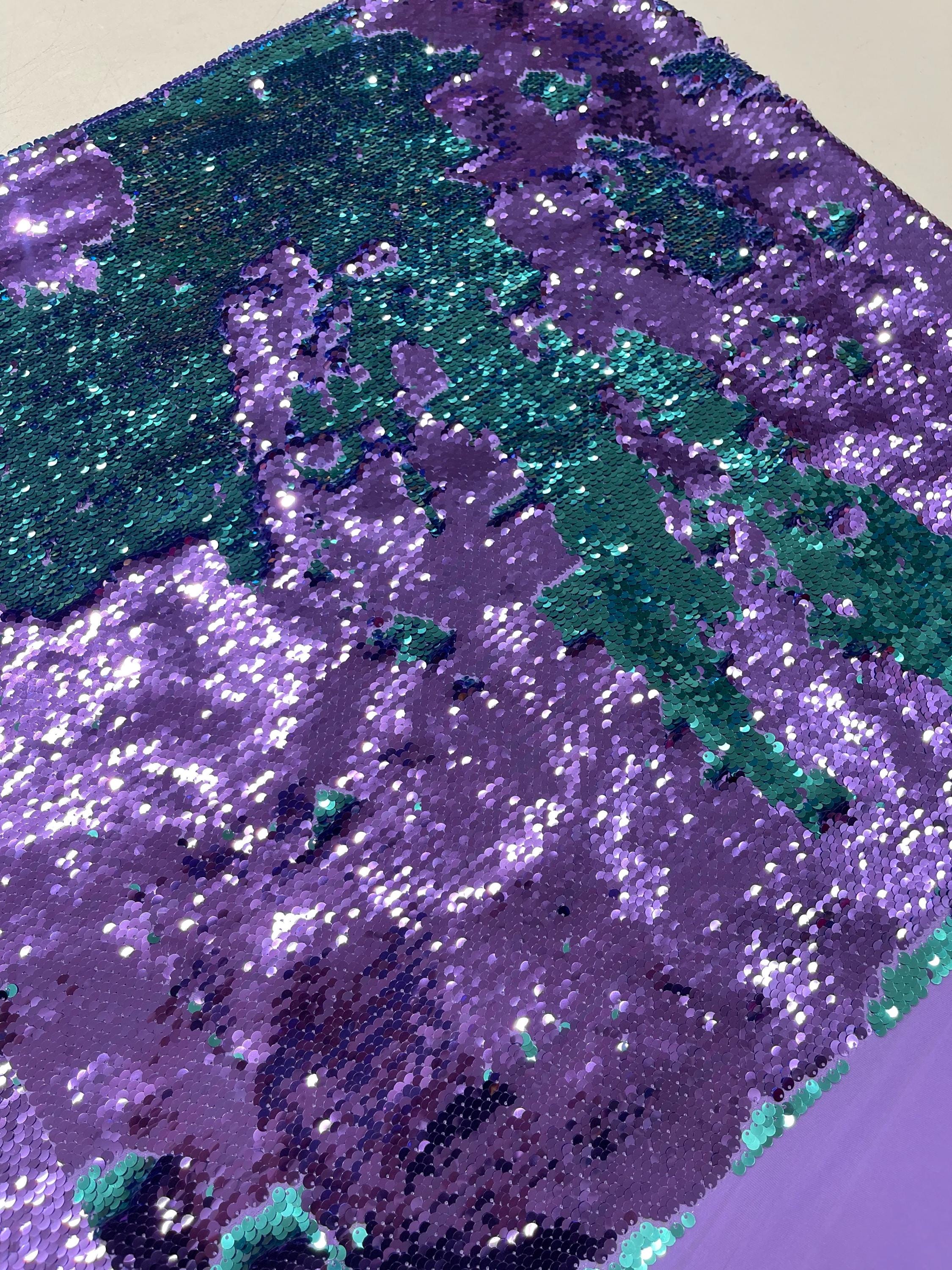 Purple/Turquoise Flip Up Sequins Reversible, 2-Way Stretch 58/60” Sequins Fabric Nightgowns-Prom Gown