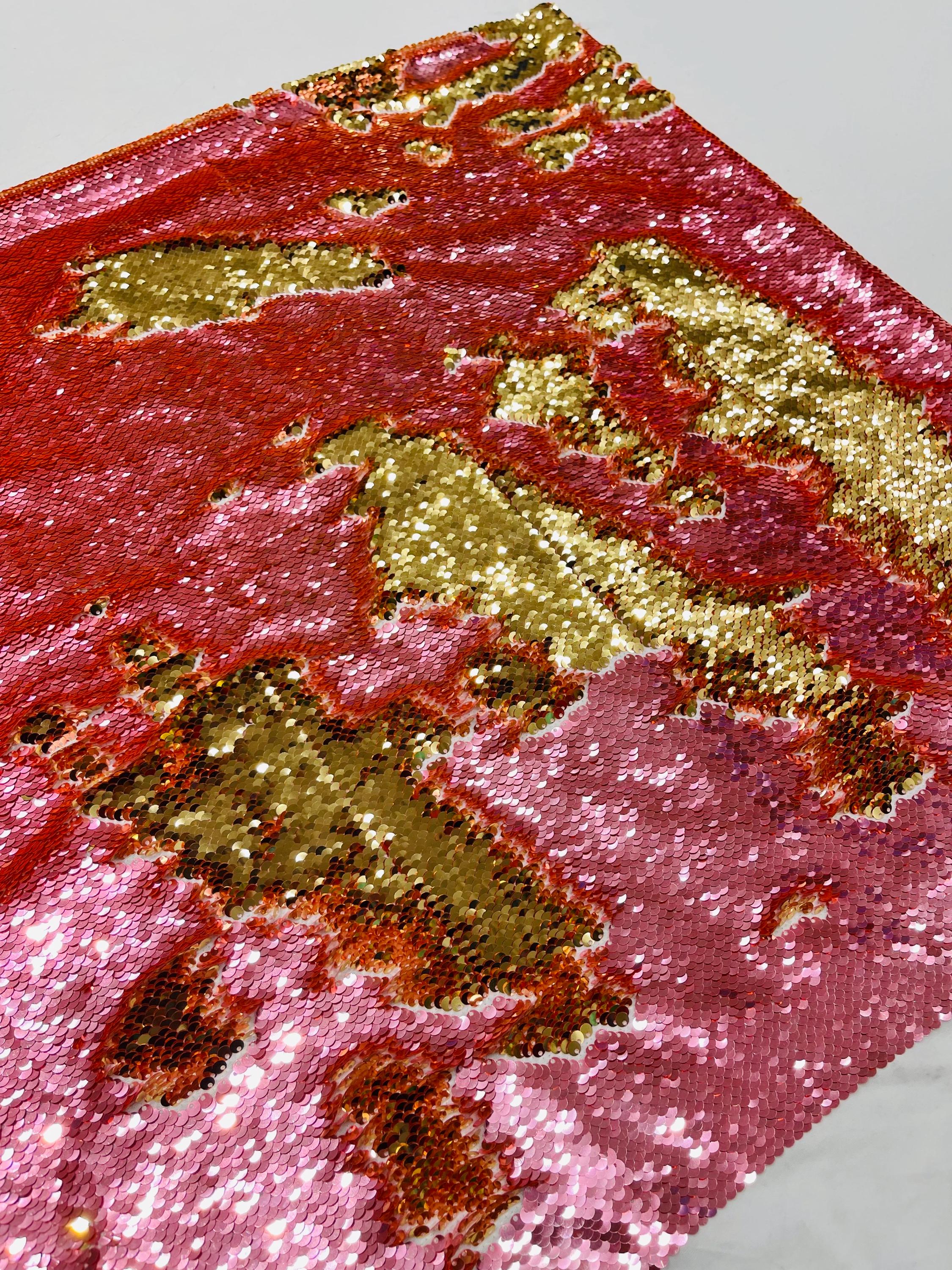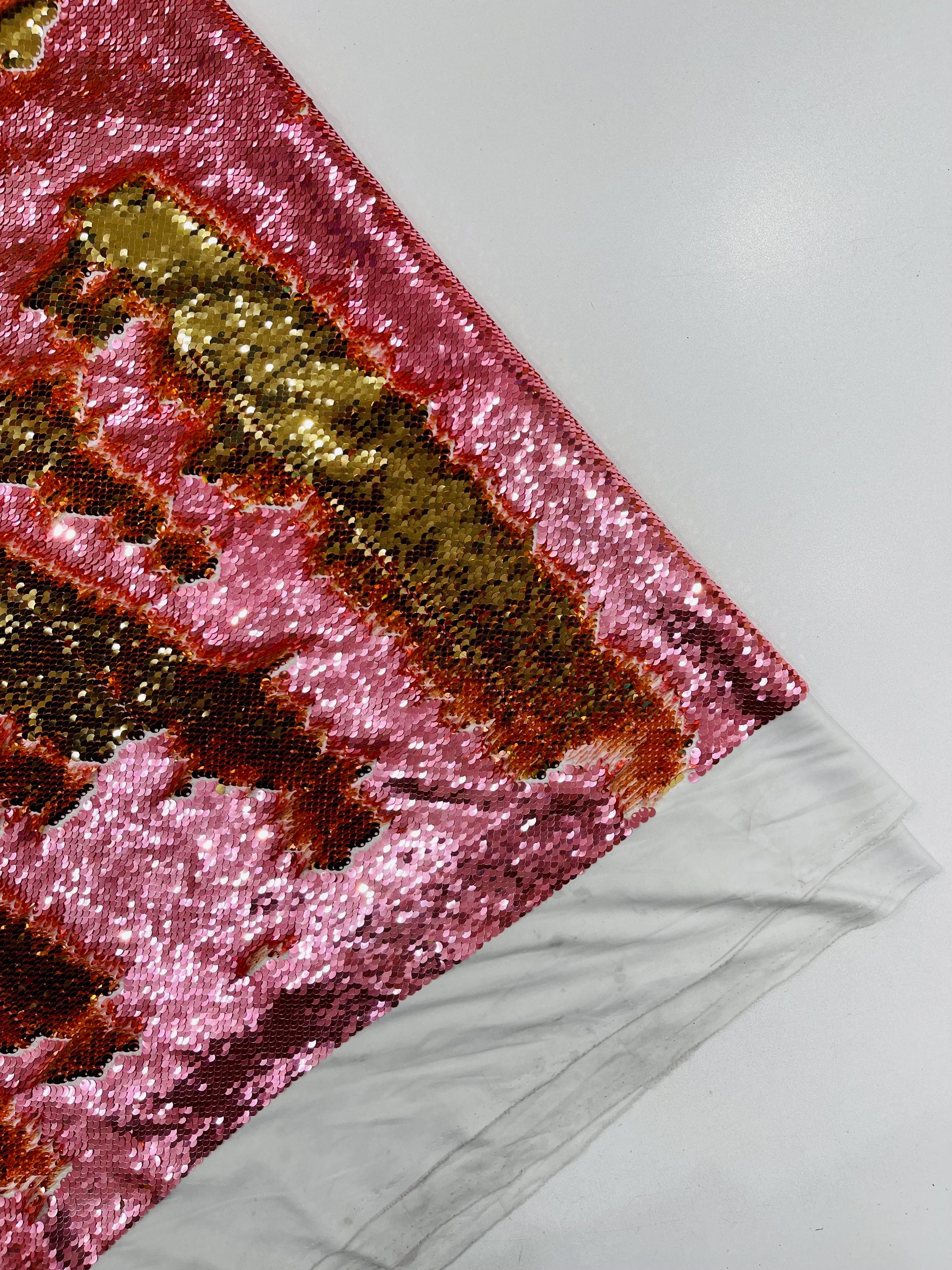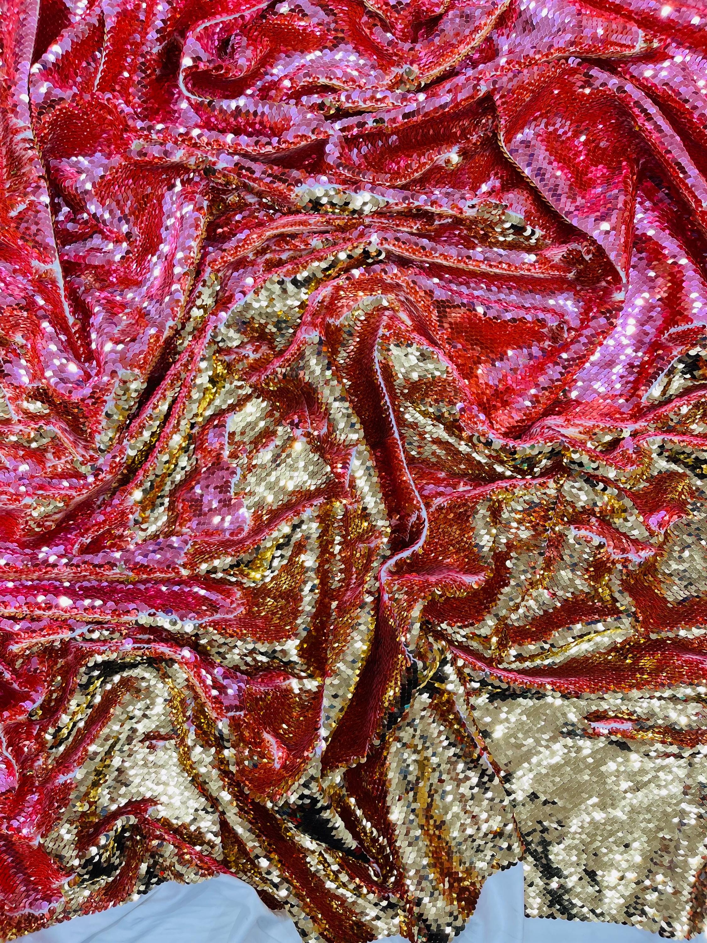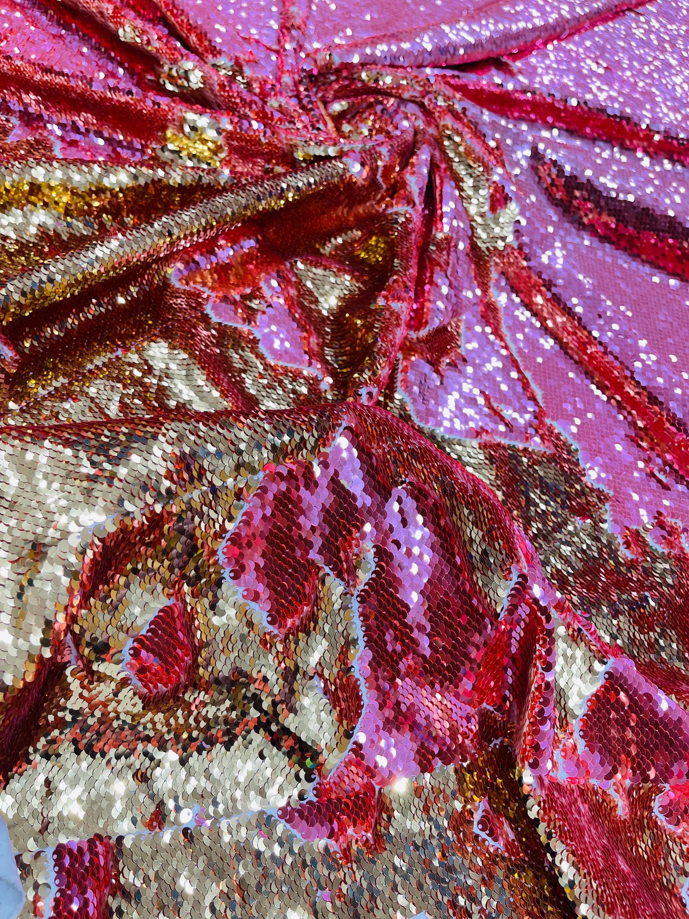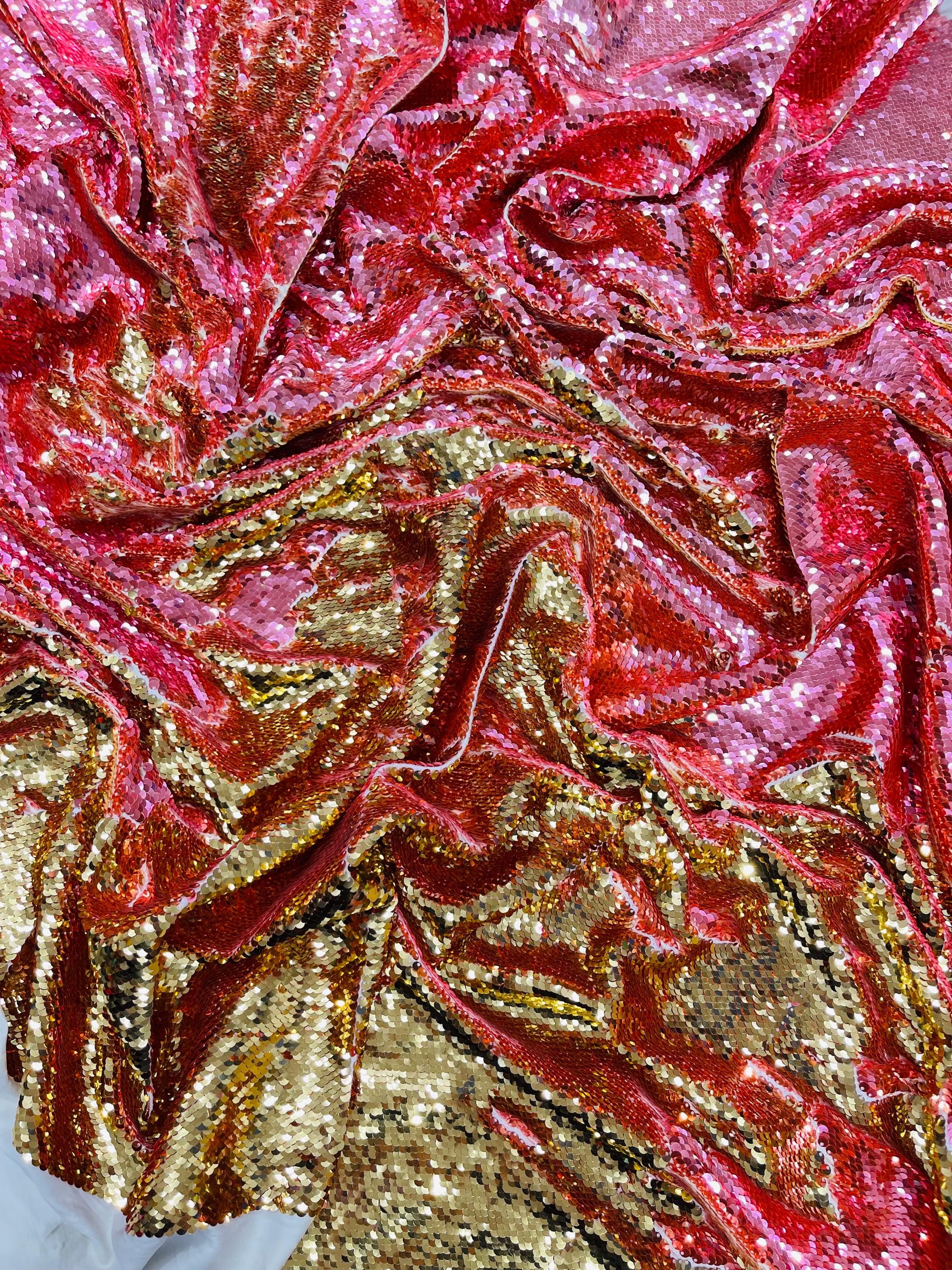 Gold/Coral Sequins Fabric: 2-Way Stretch Flip-Up Reversible Sequin