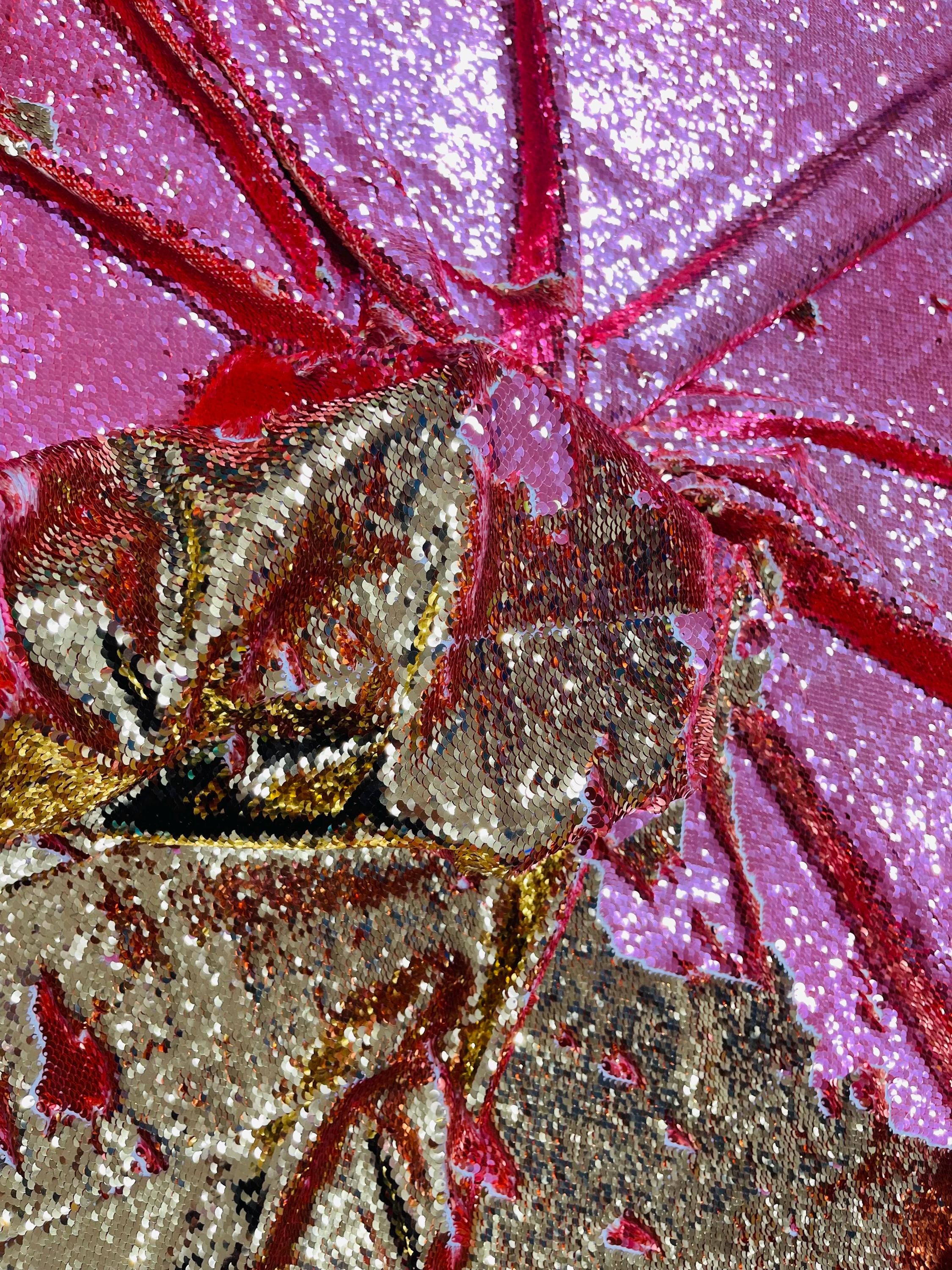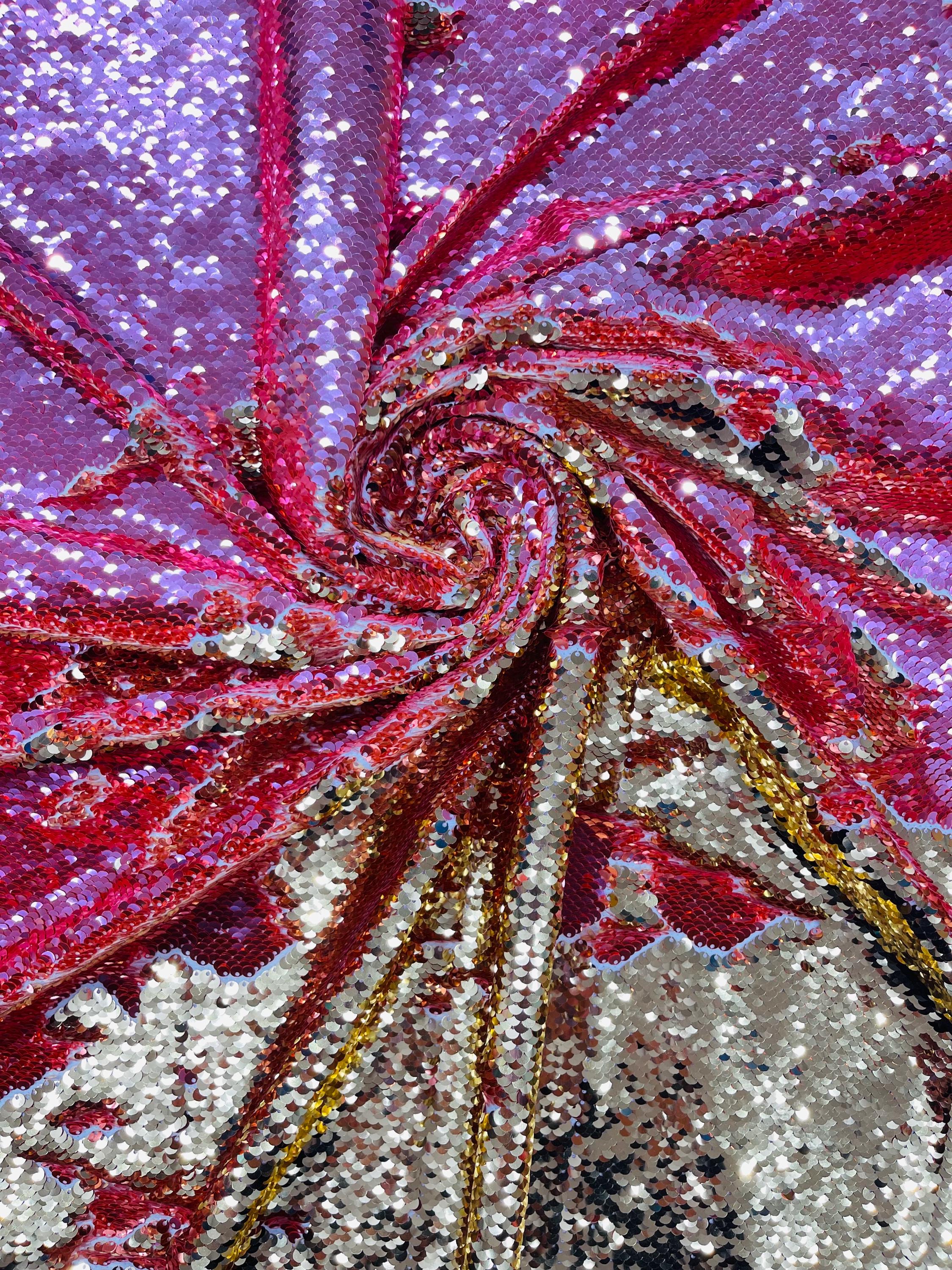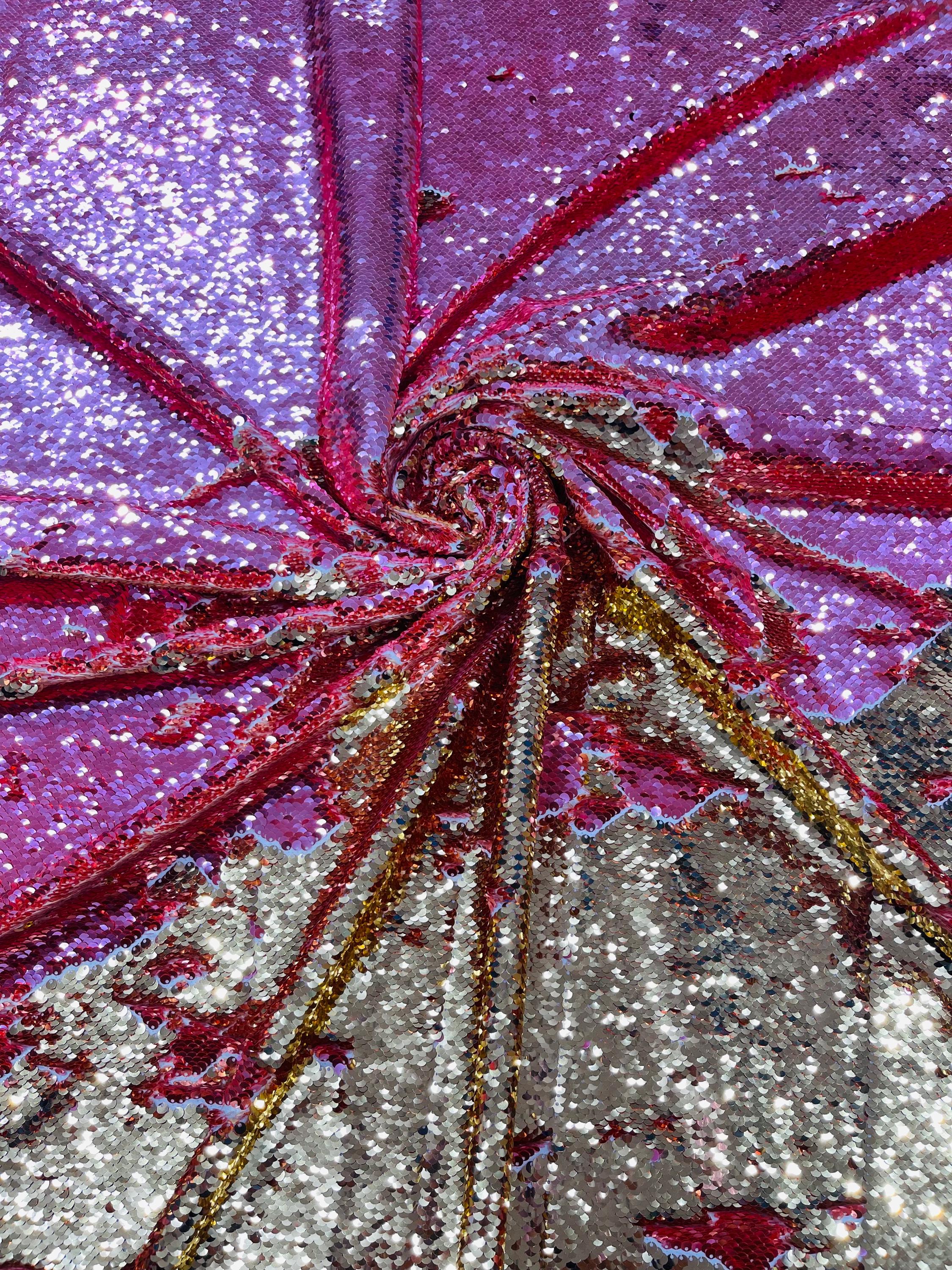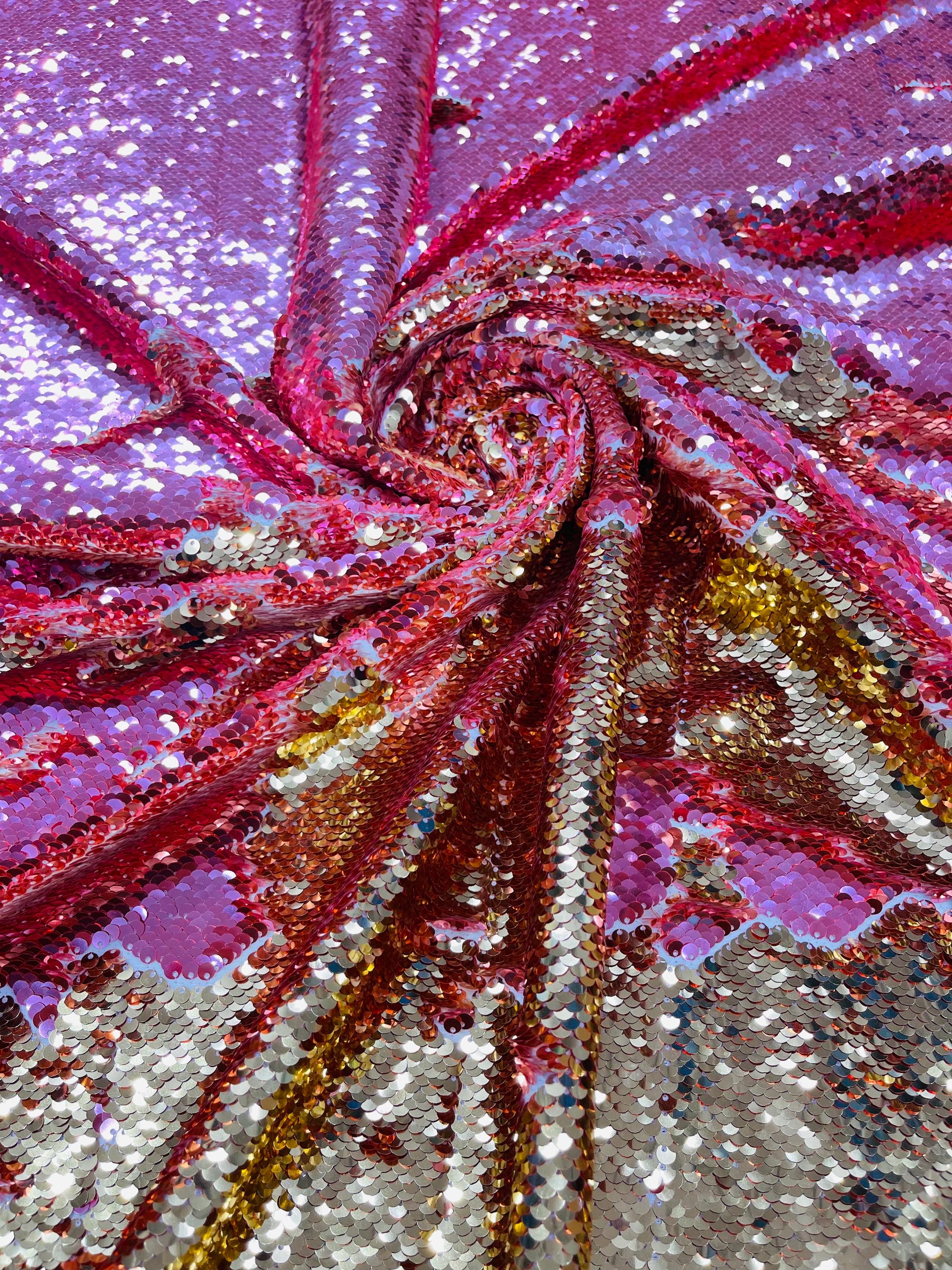 Gold/Coral Sequins Fabric: 2-Way Stretch Flip-Up Reversible Sequin
