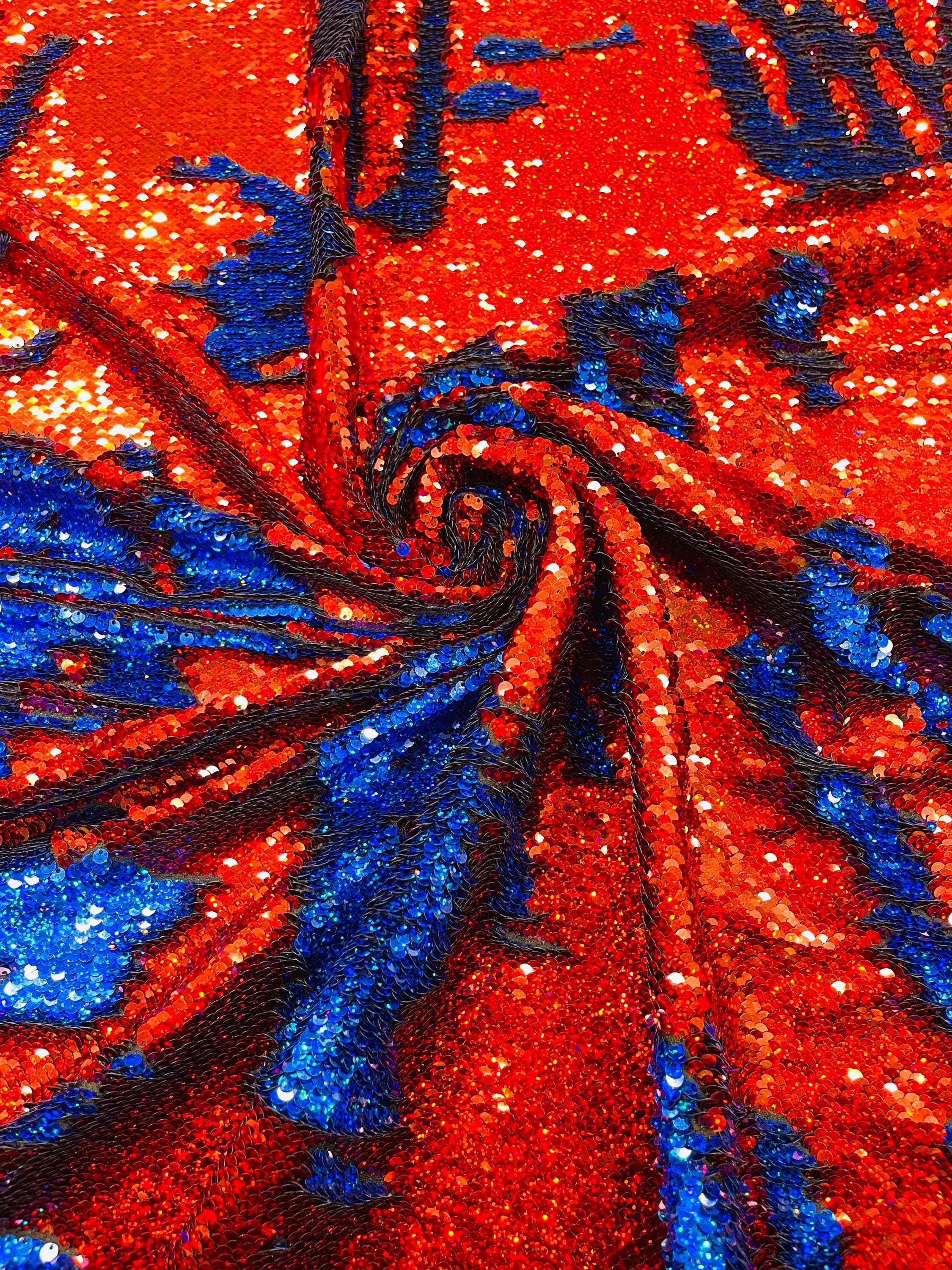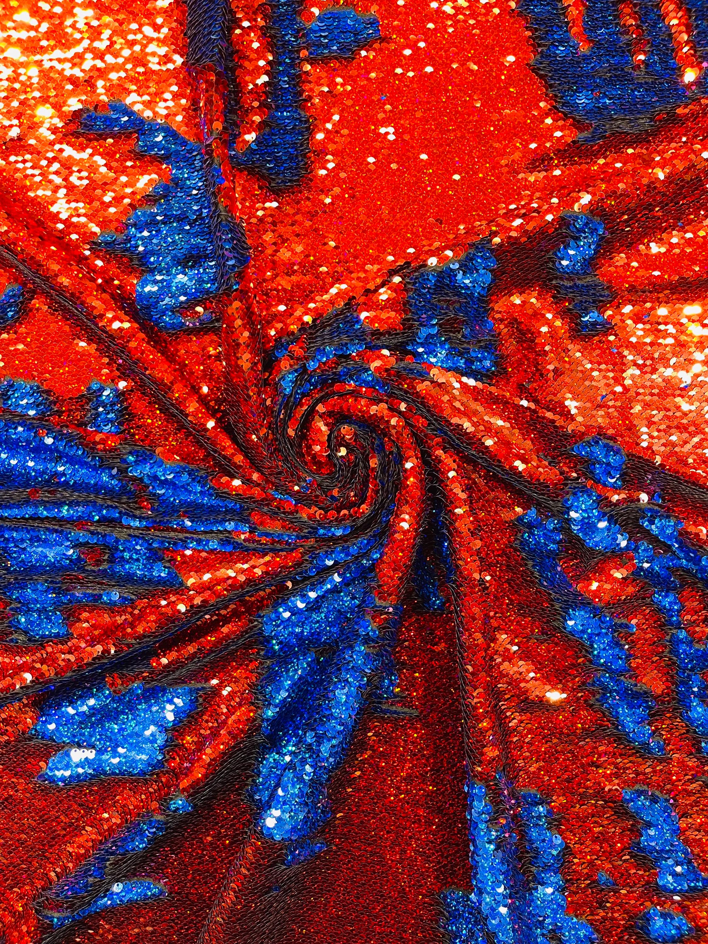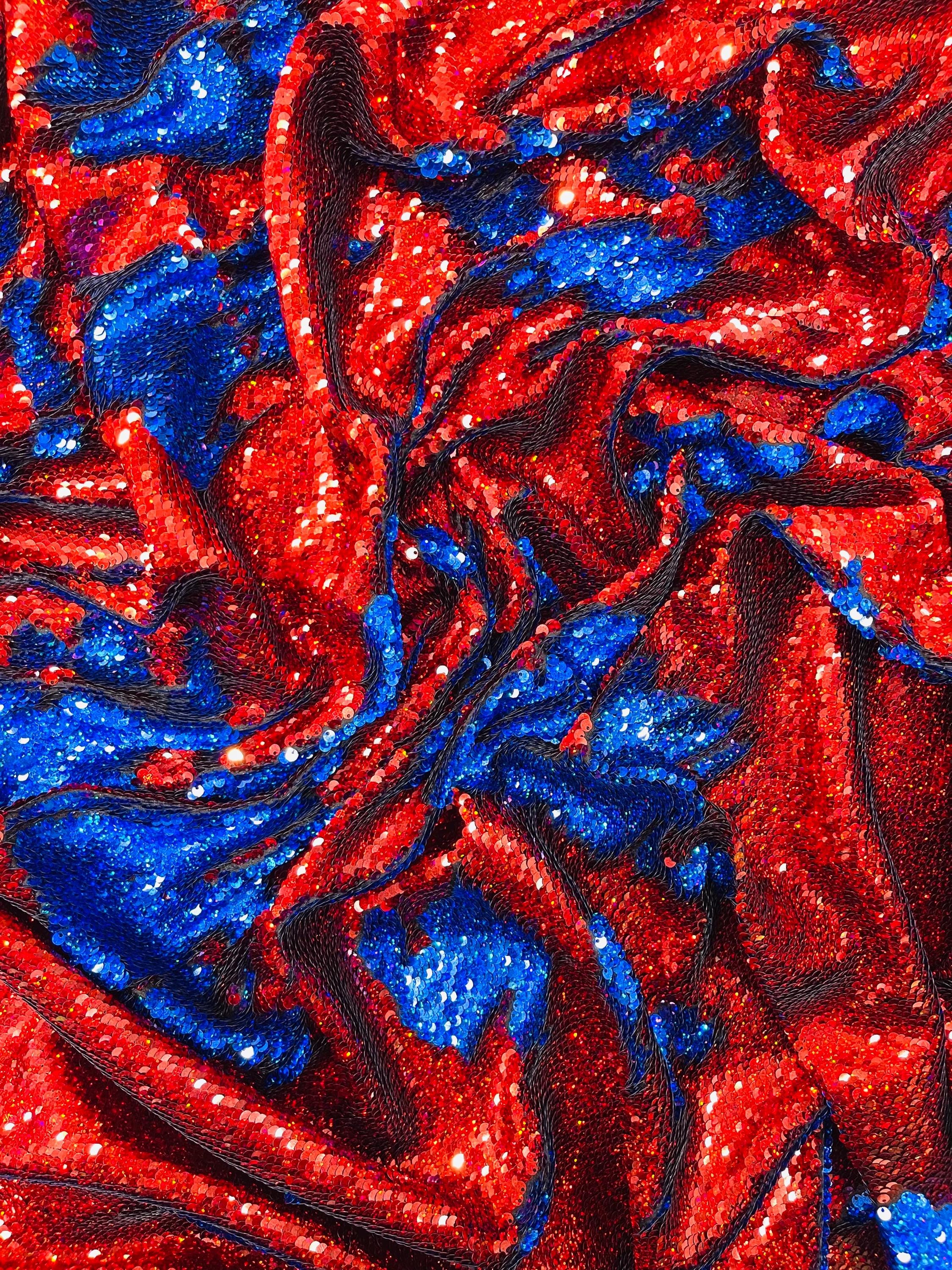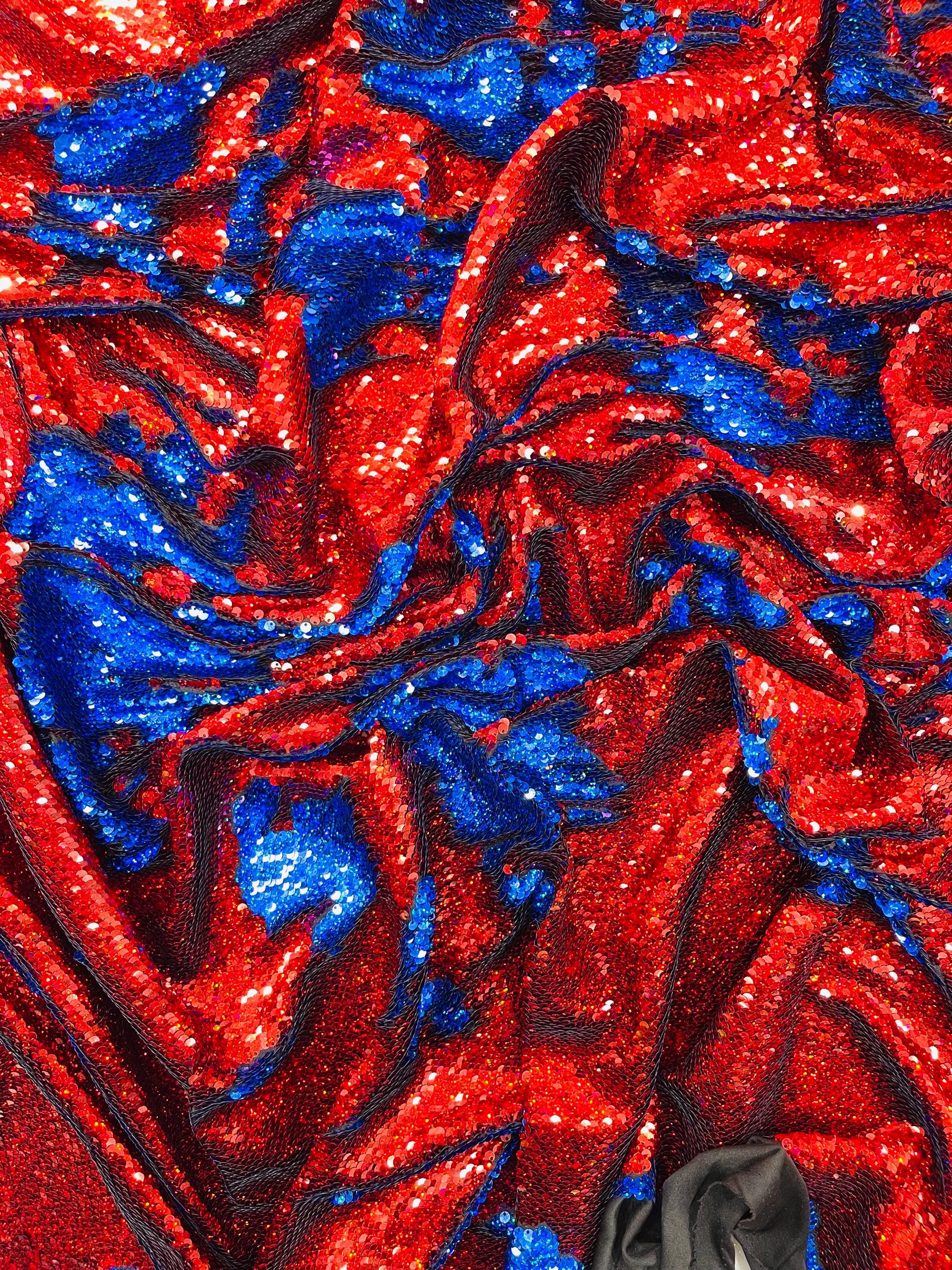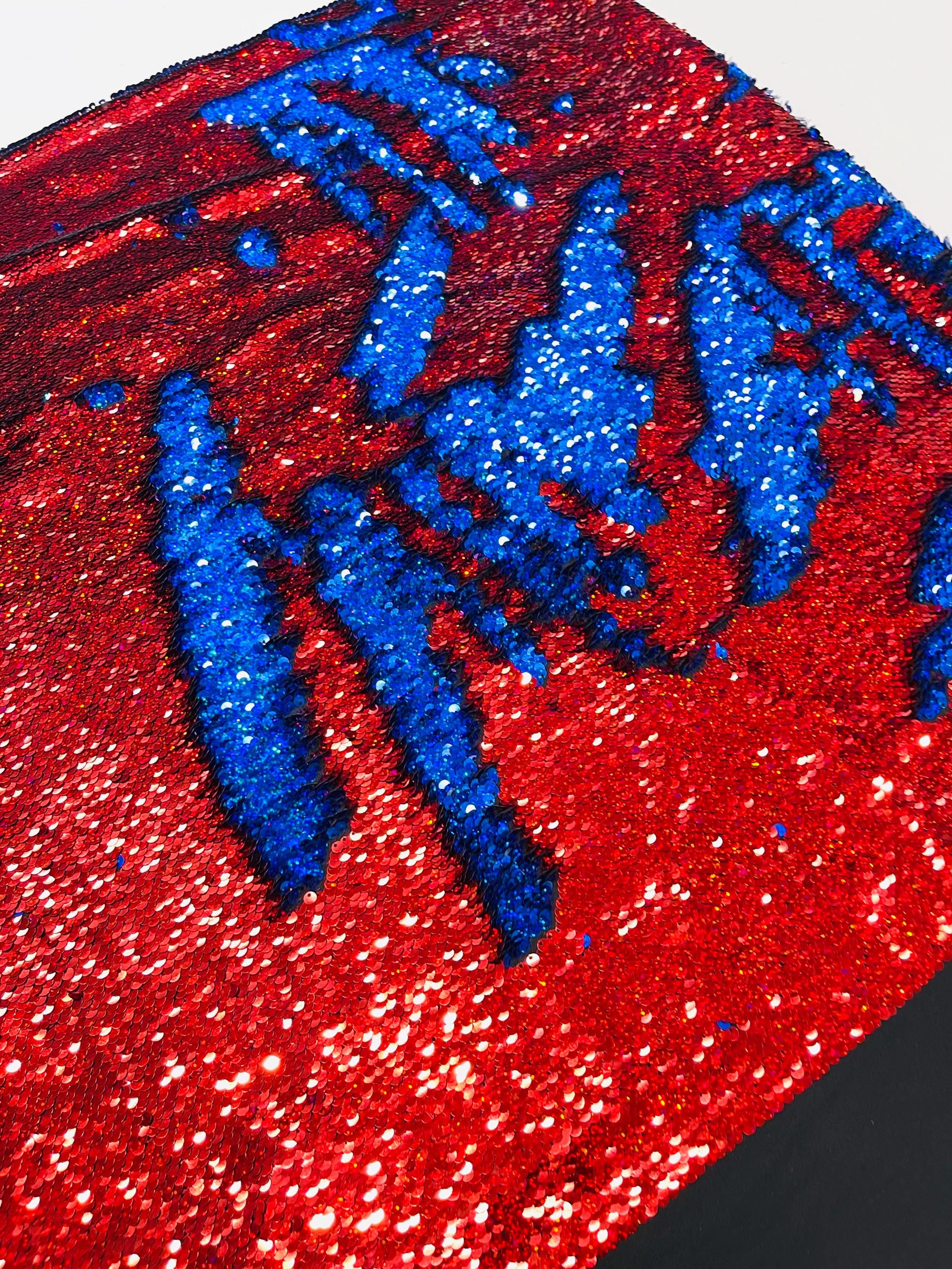 Red/Royal Blue Sequins Fabric: 2-Way Stretch Flip-Up Reversible Sequin