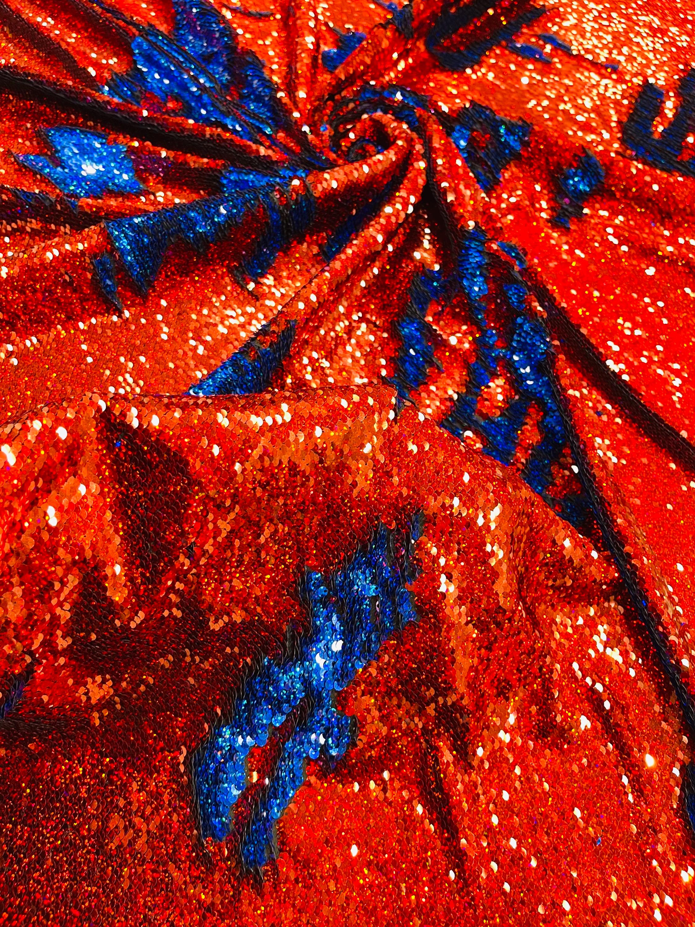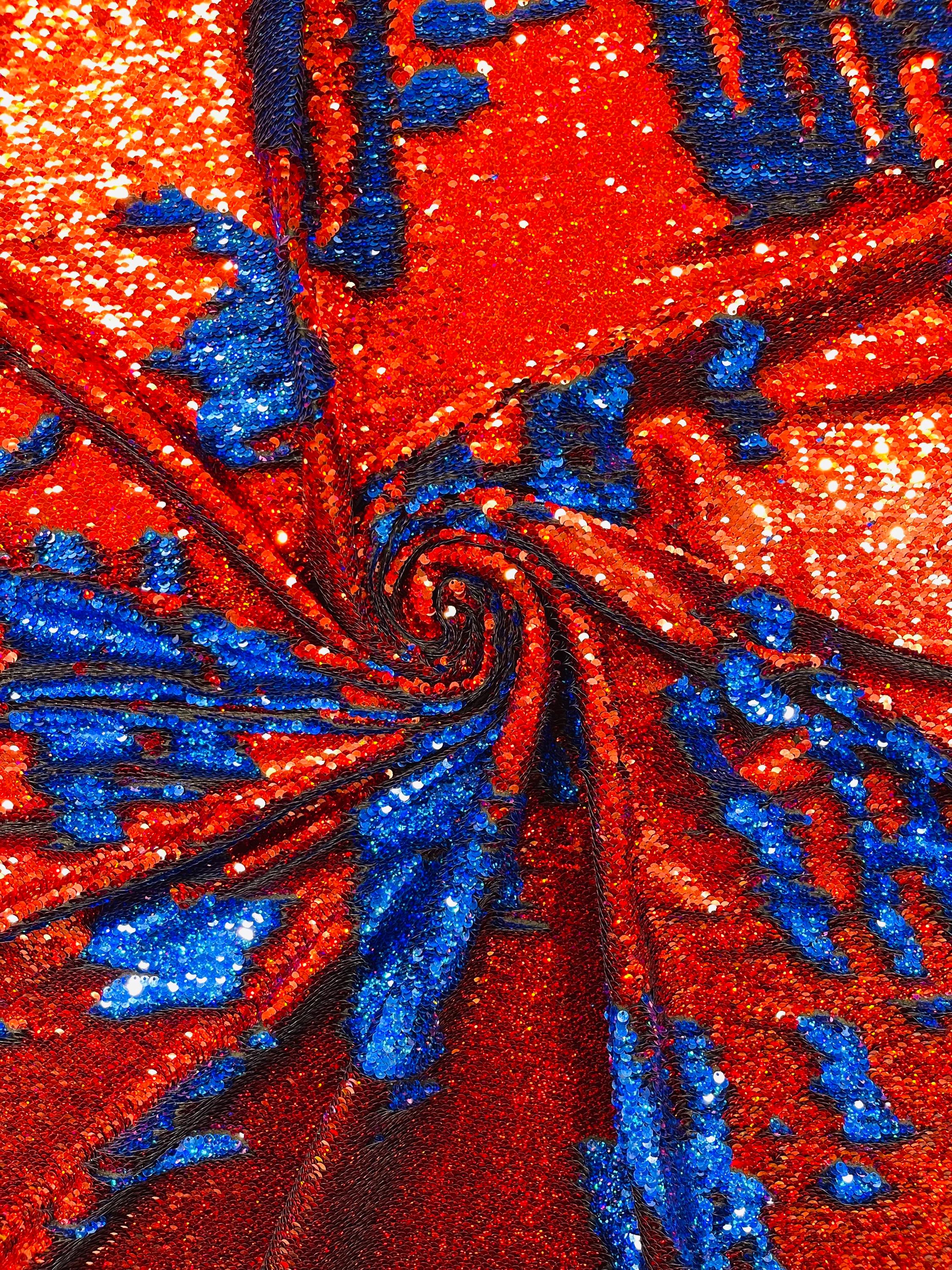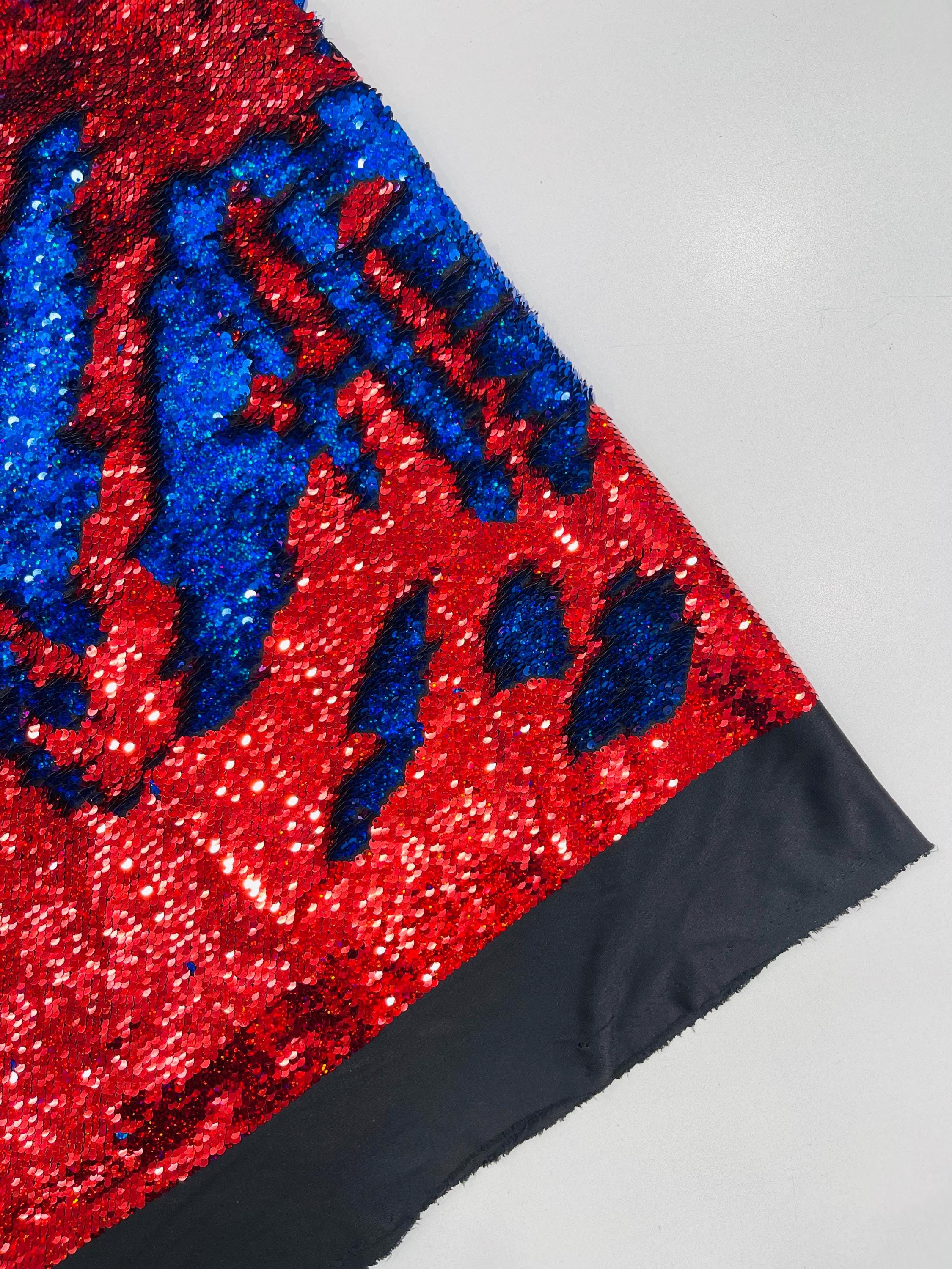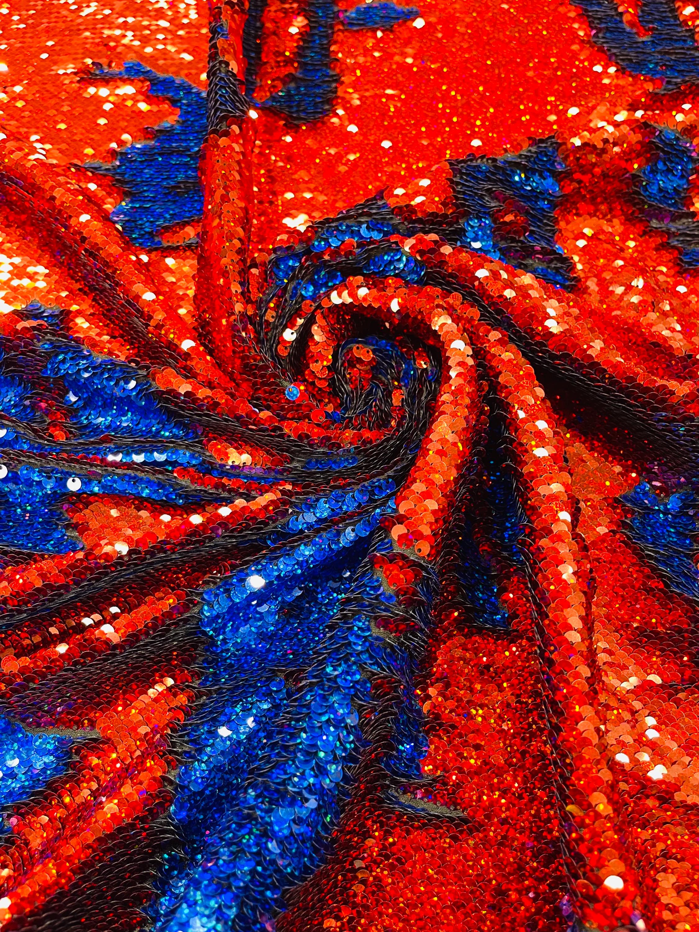 Red/Royal Blue Sequins Fabric: 2-Way Stretch Flip-Up Reversible Sequin