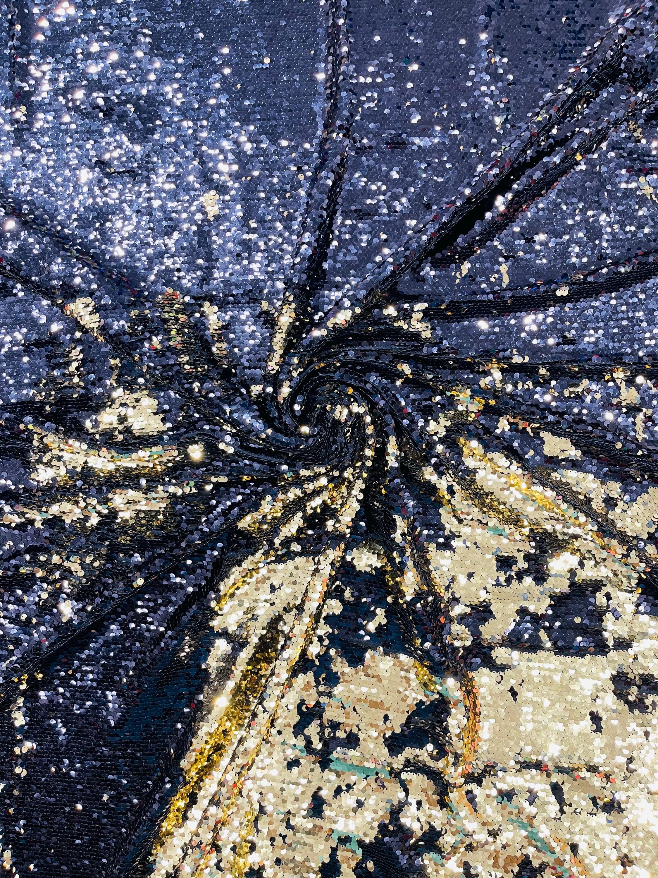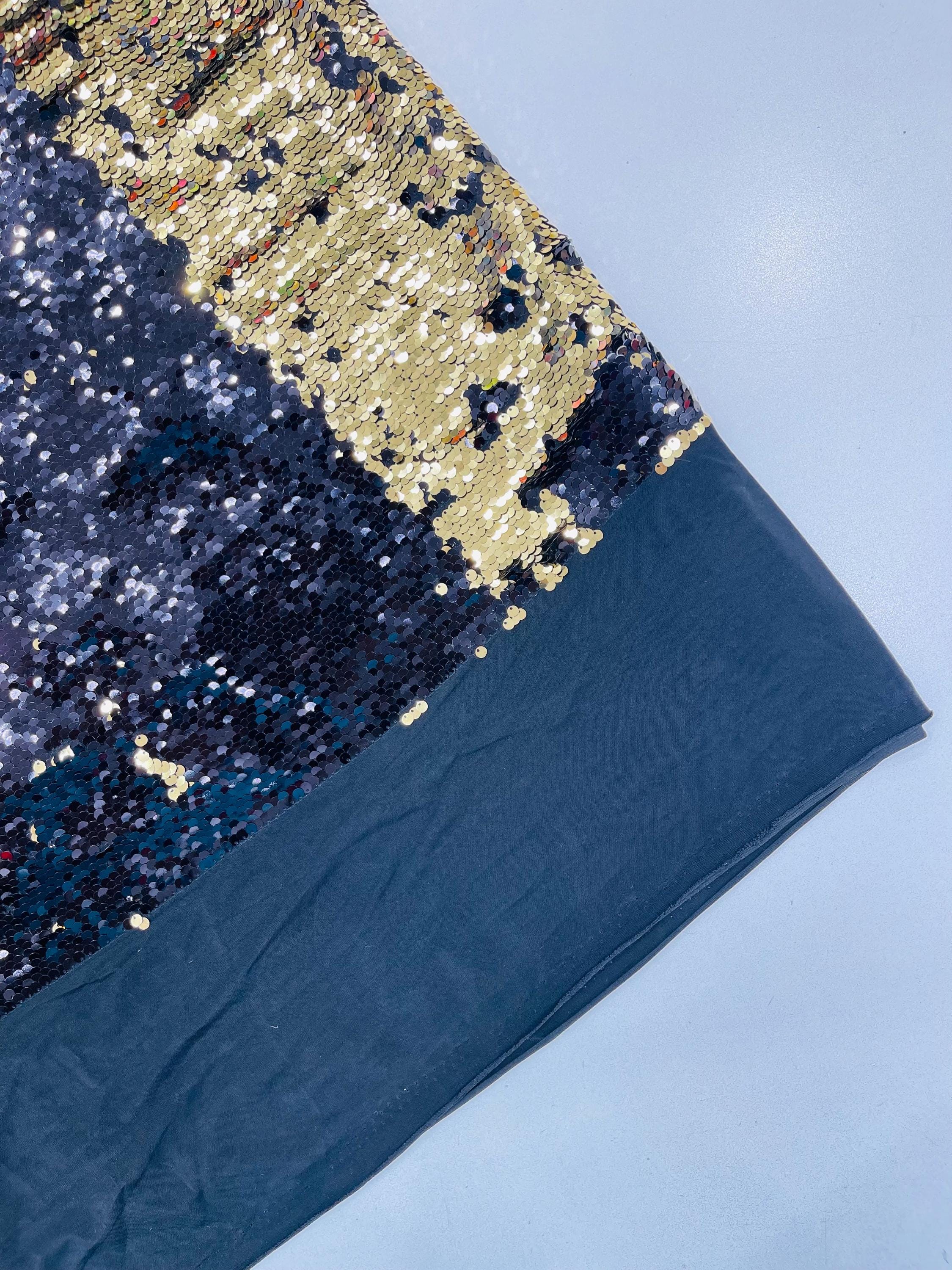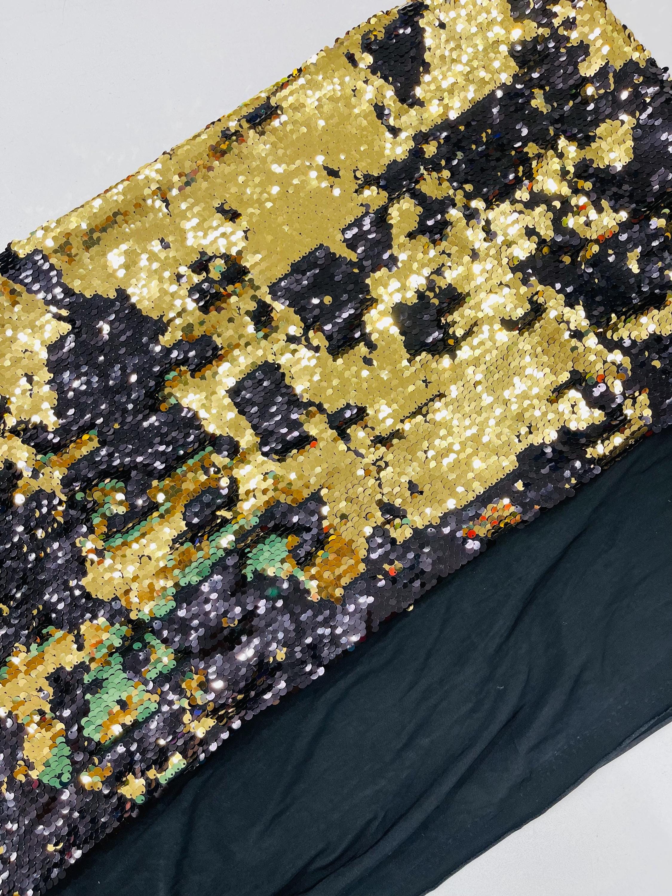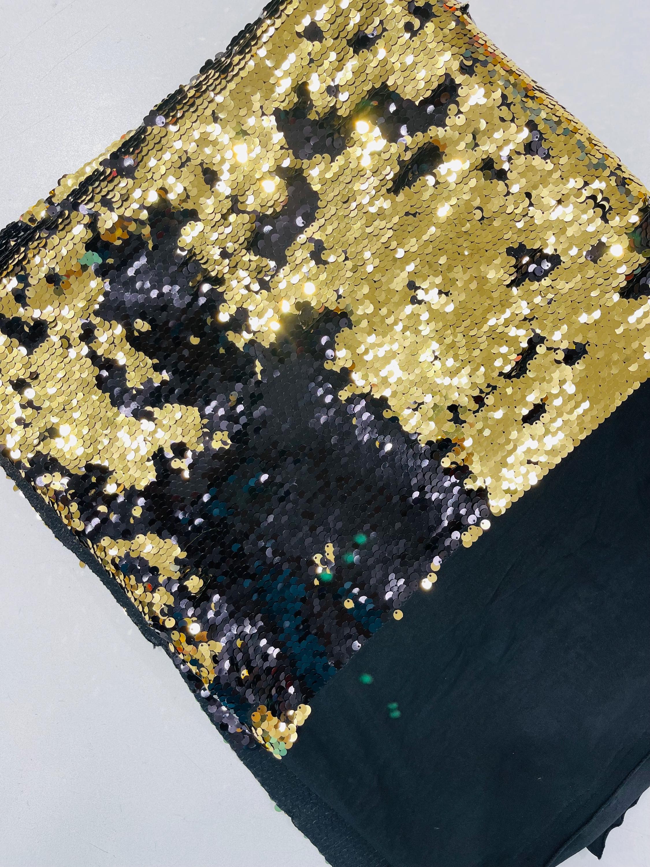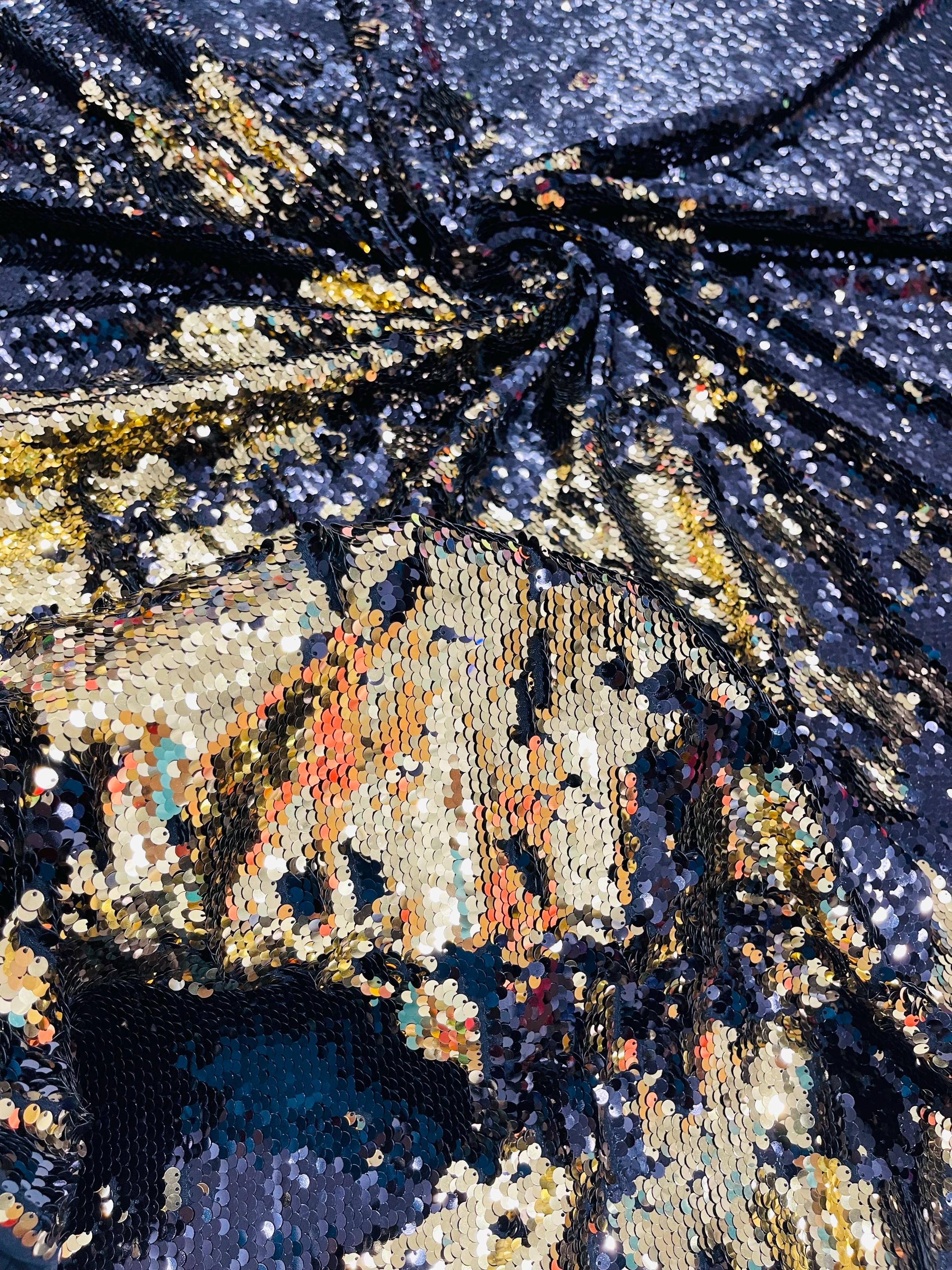 Gold/Black Sequins Fabric: 2-Way Stretch Flip-Up Reversible Sequin