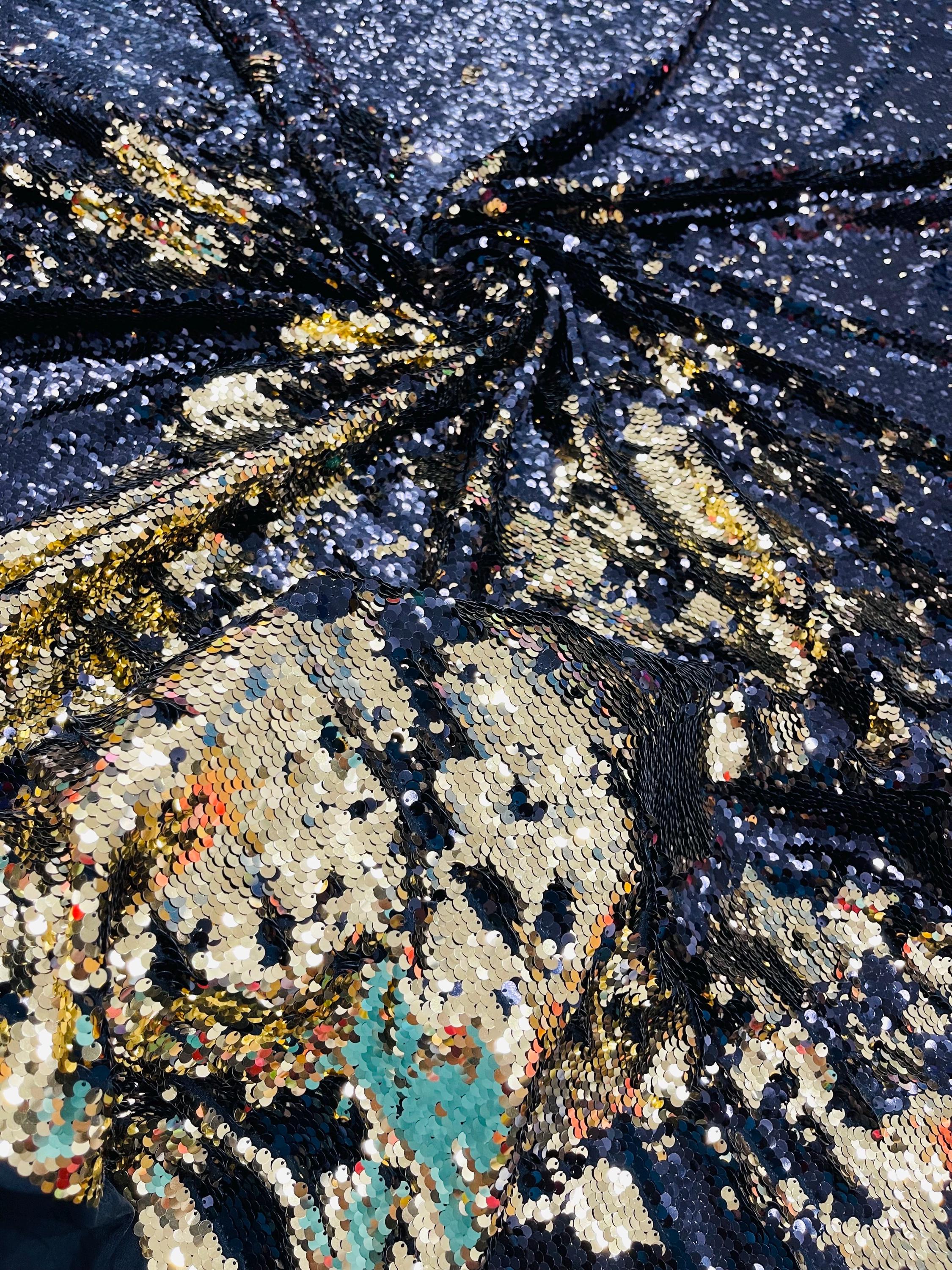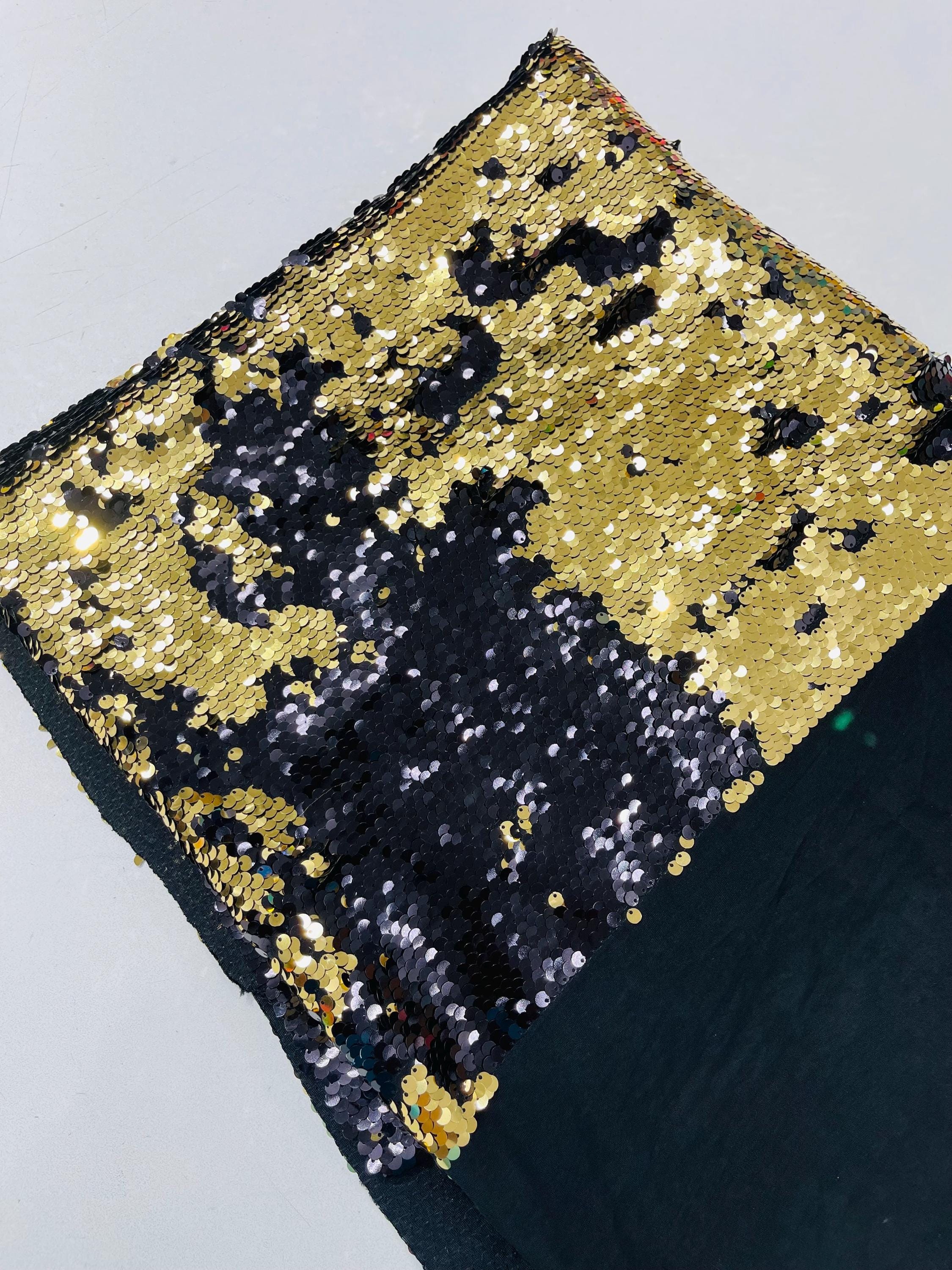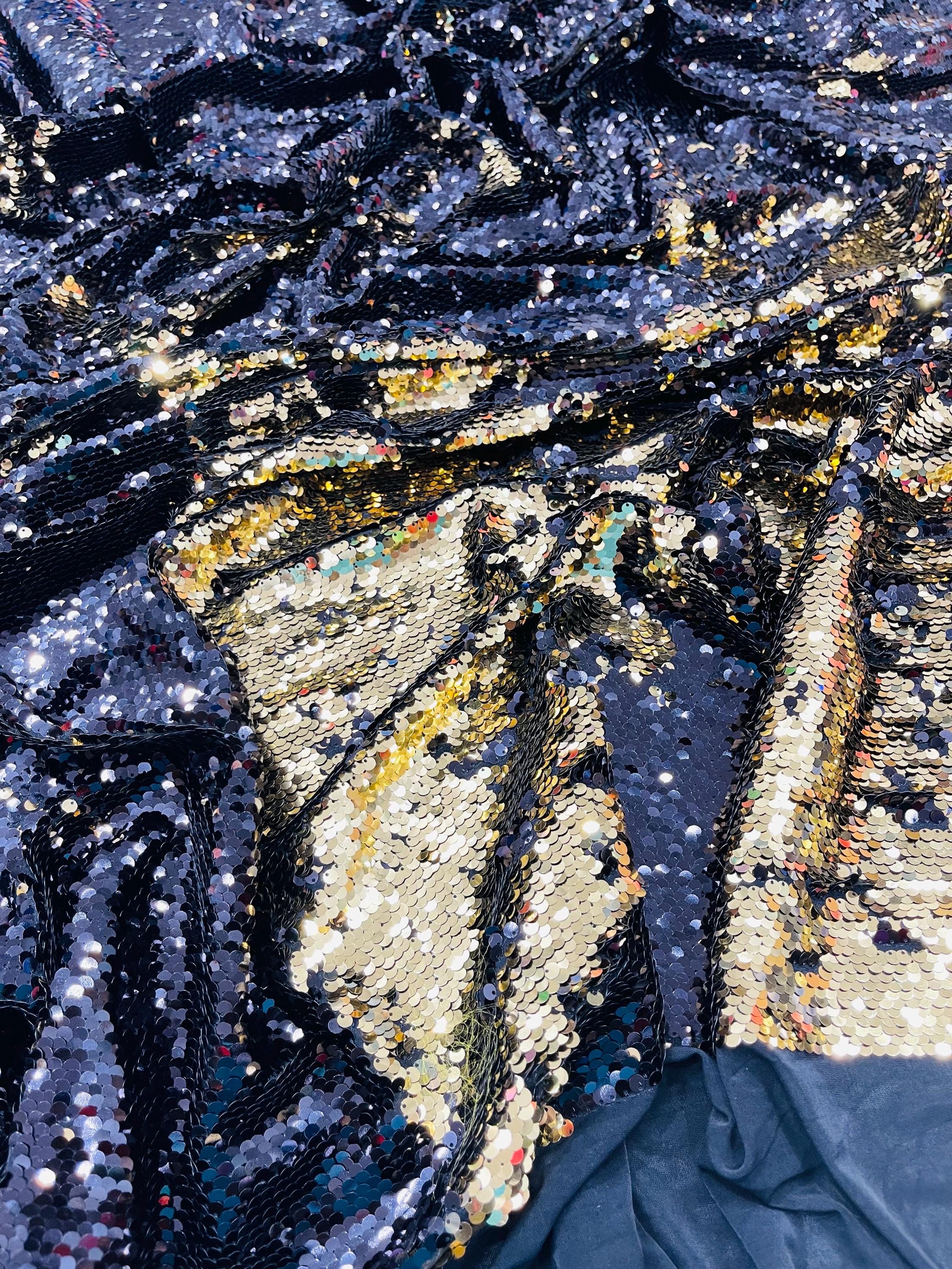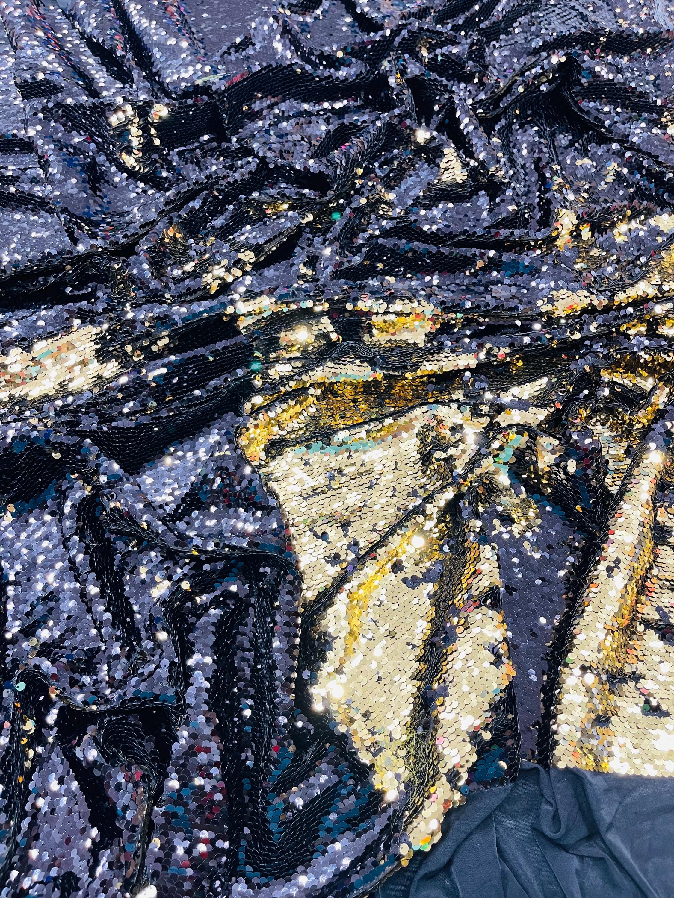 Gold/Black Sequins Fabric: 2-Way Stretch Flip-Up Reversible Sequin
