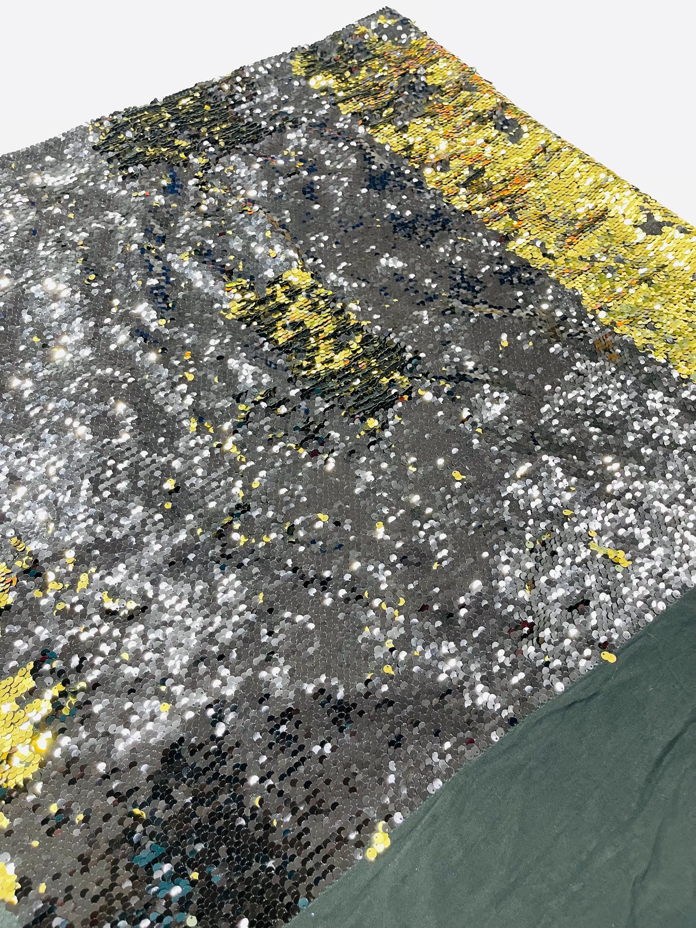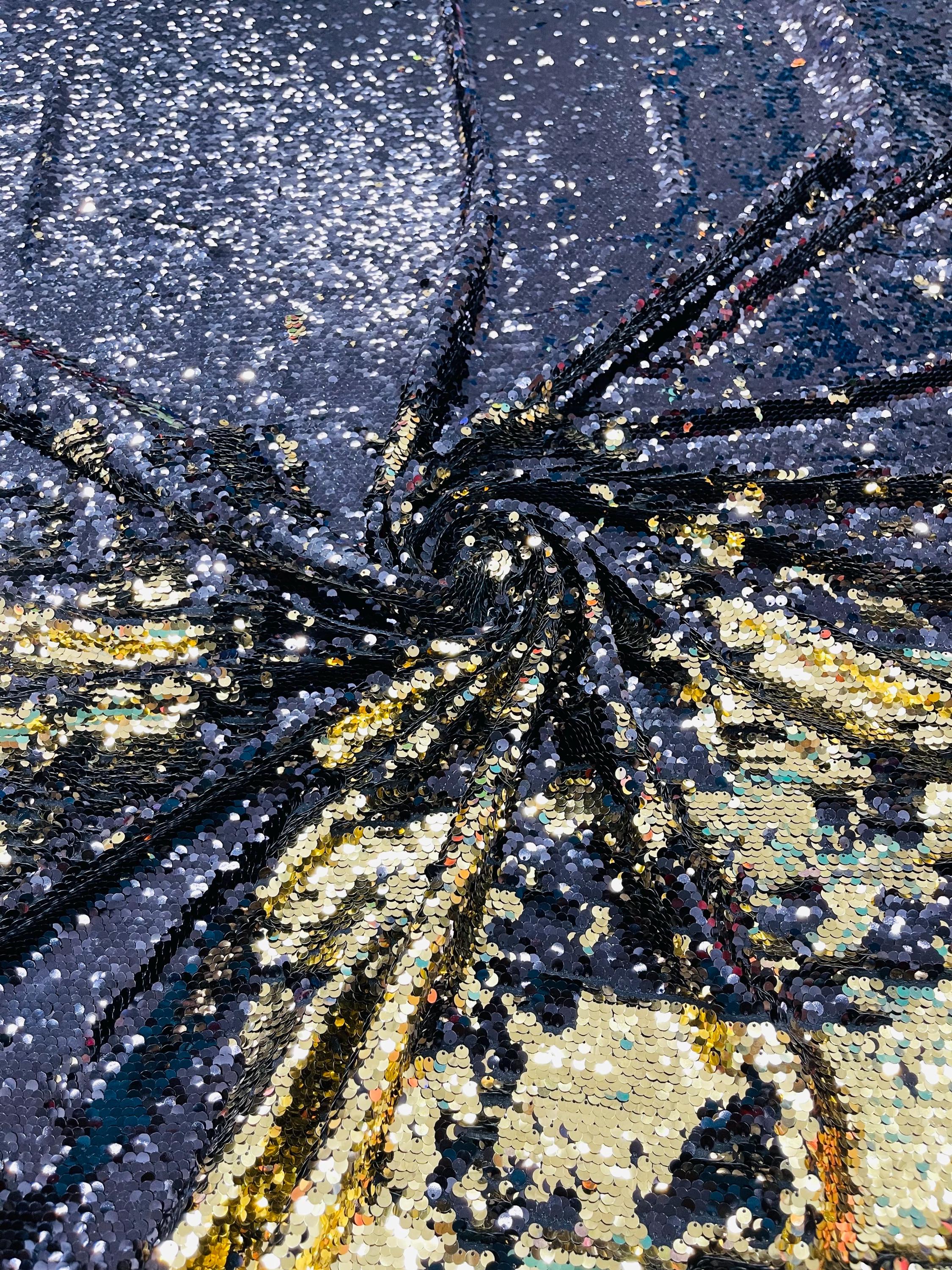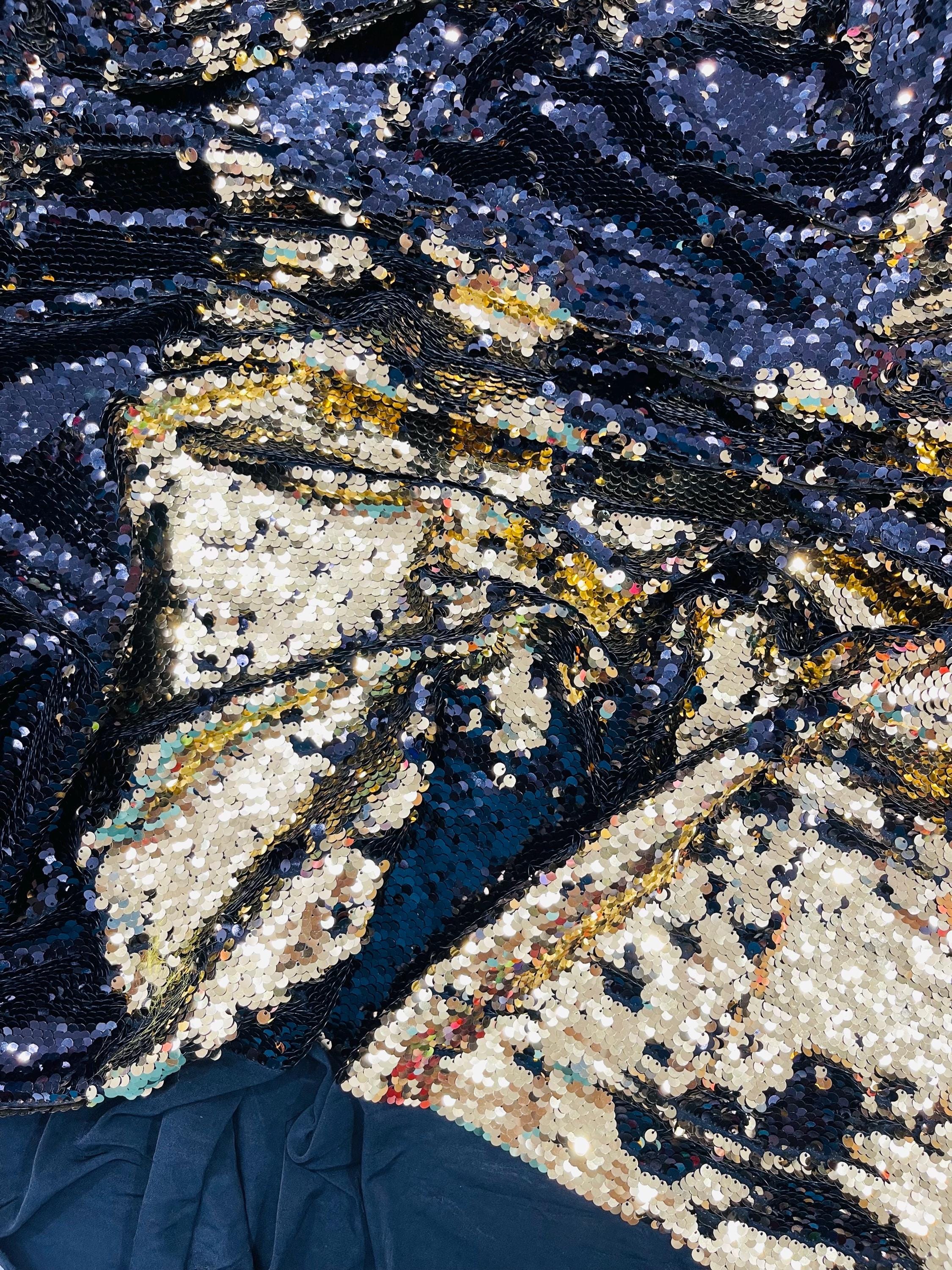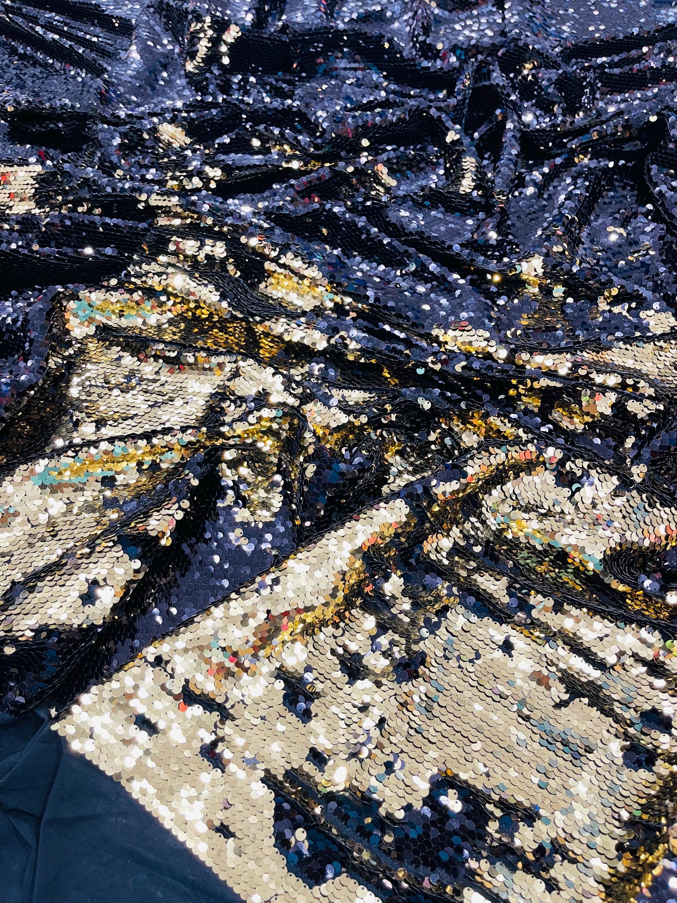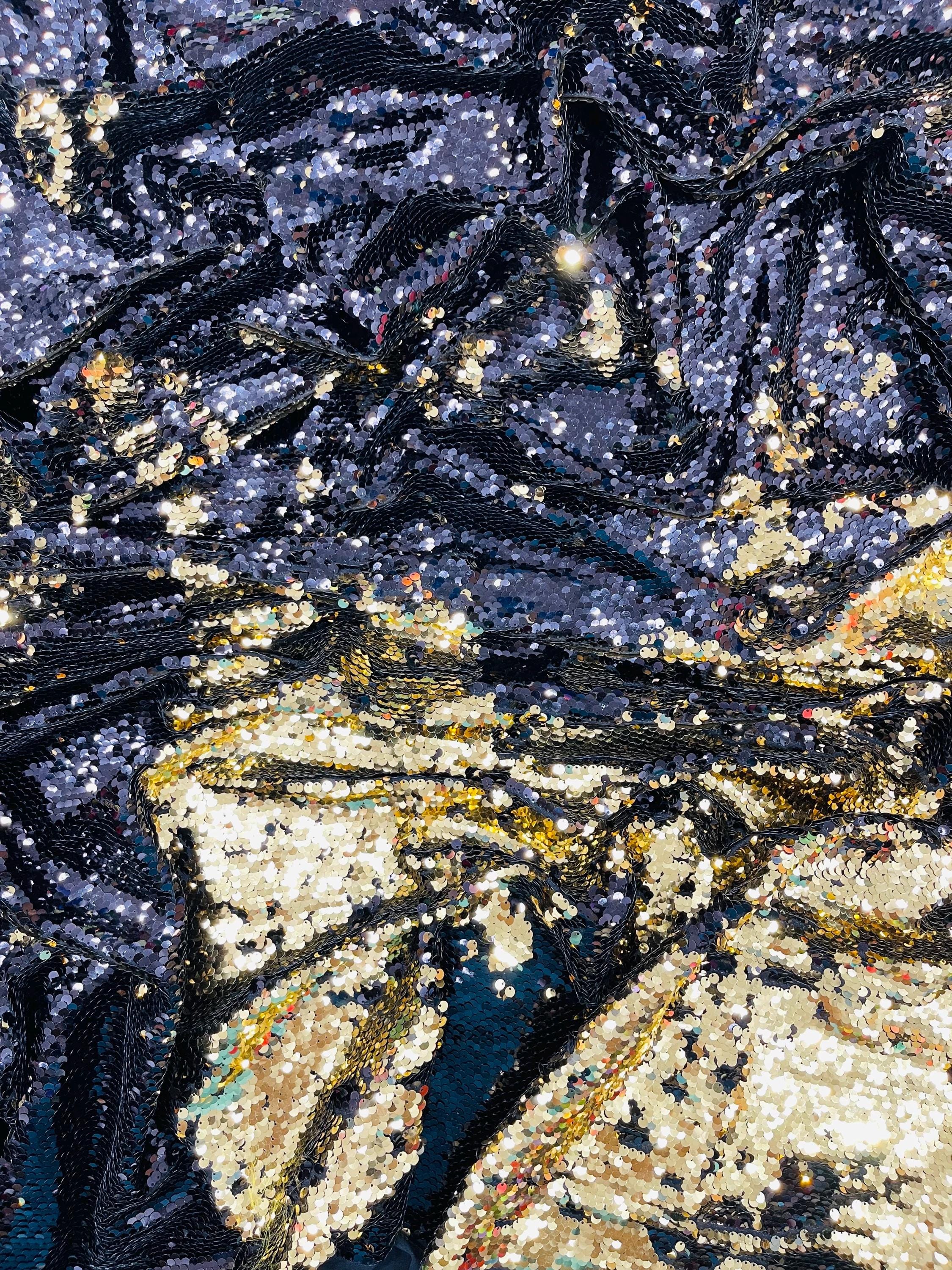 Gold/Black Sequins Fabric: 2-Way Stretch Flip-Up Reversible Sequin