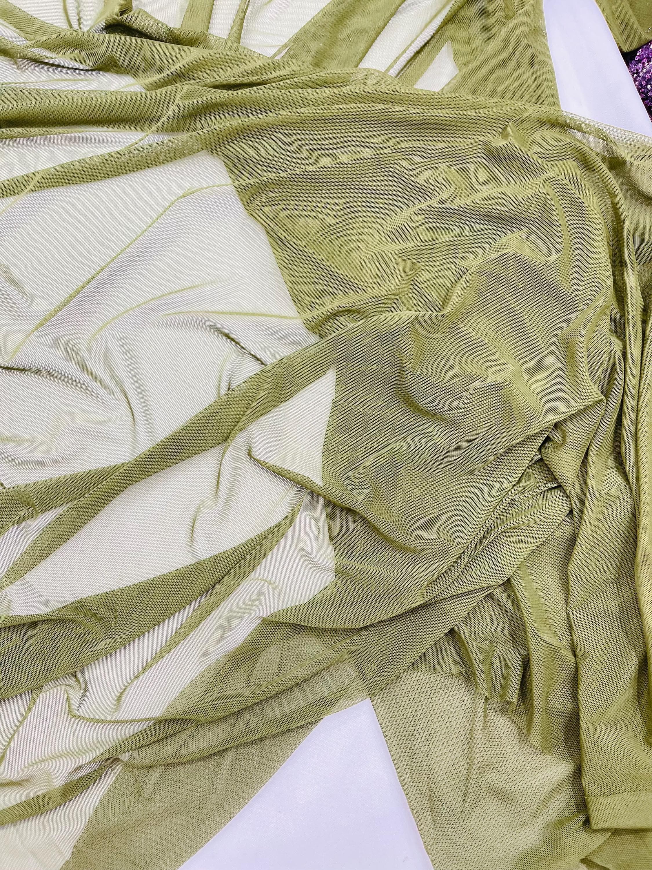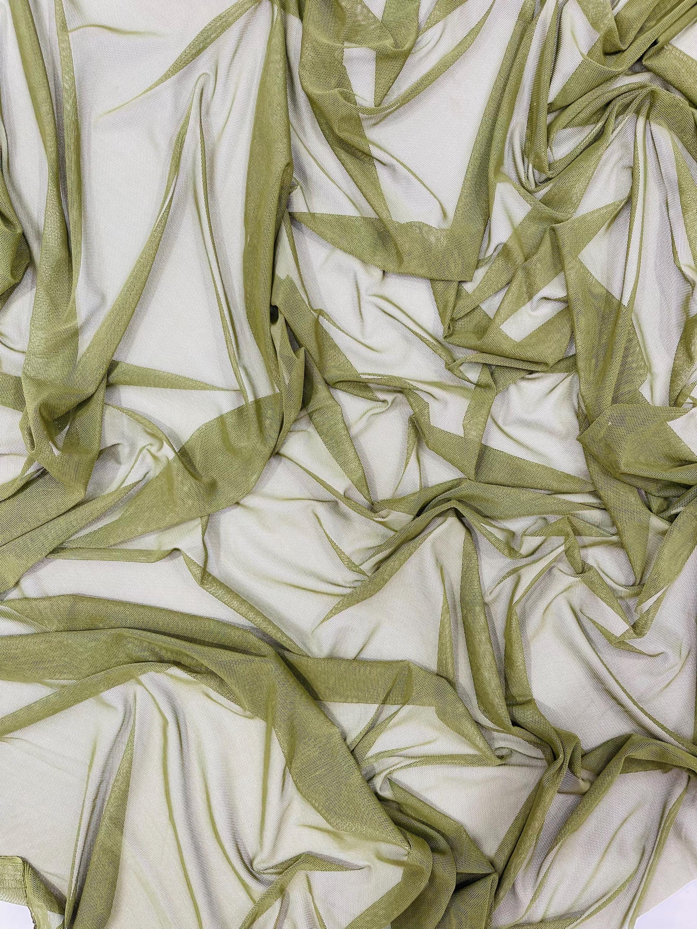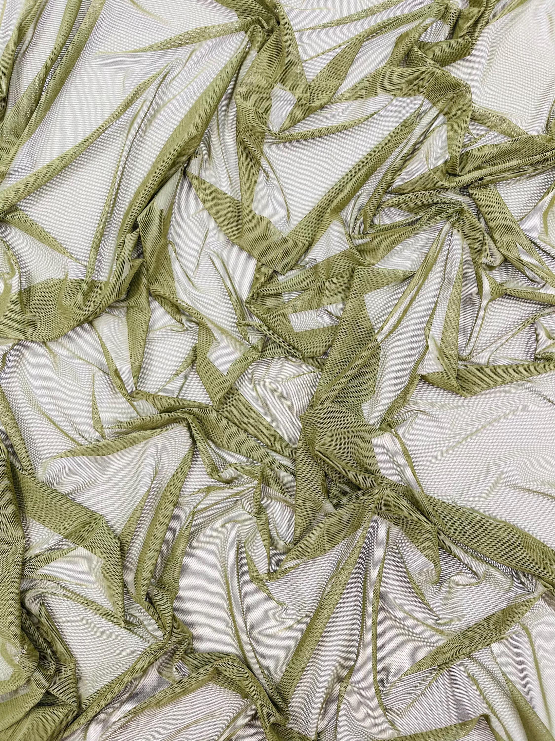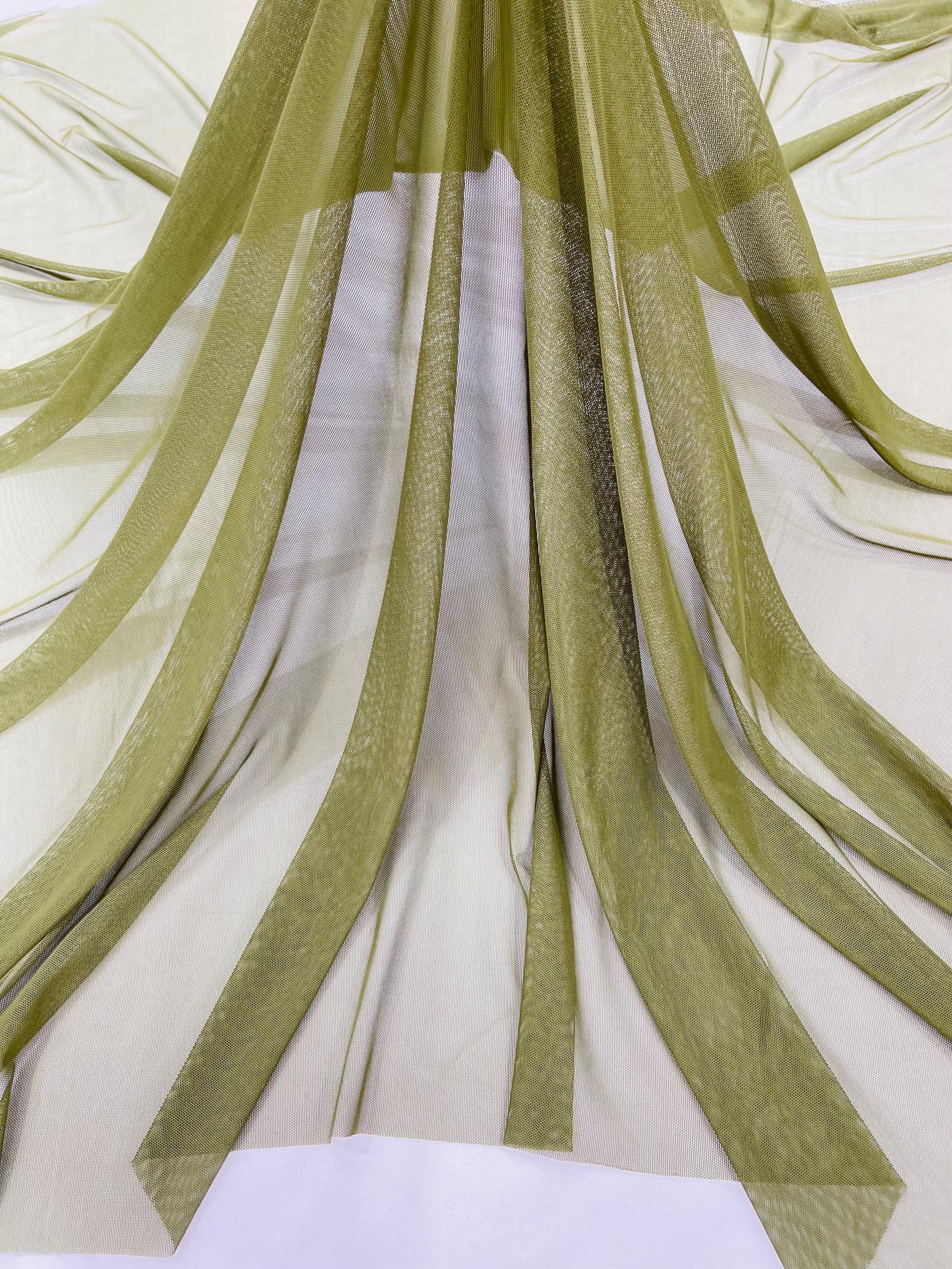 Olive Green Power Mesh Fabric, 4-Way Stretch, 60" Wide, By The Yard