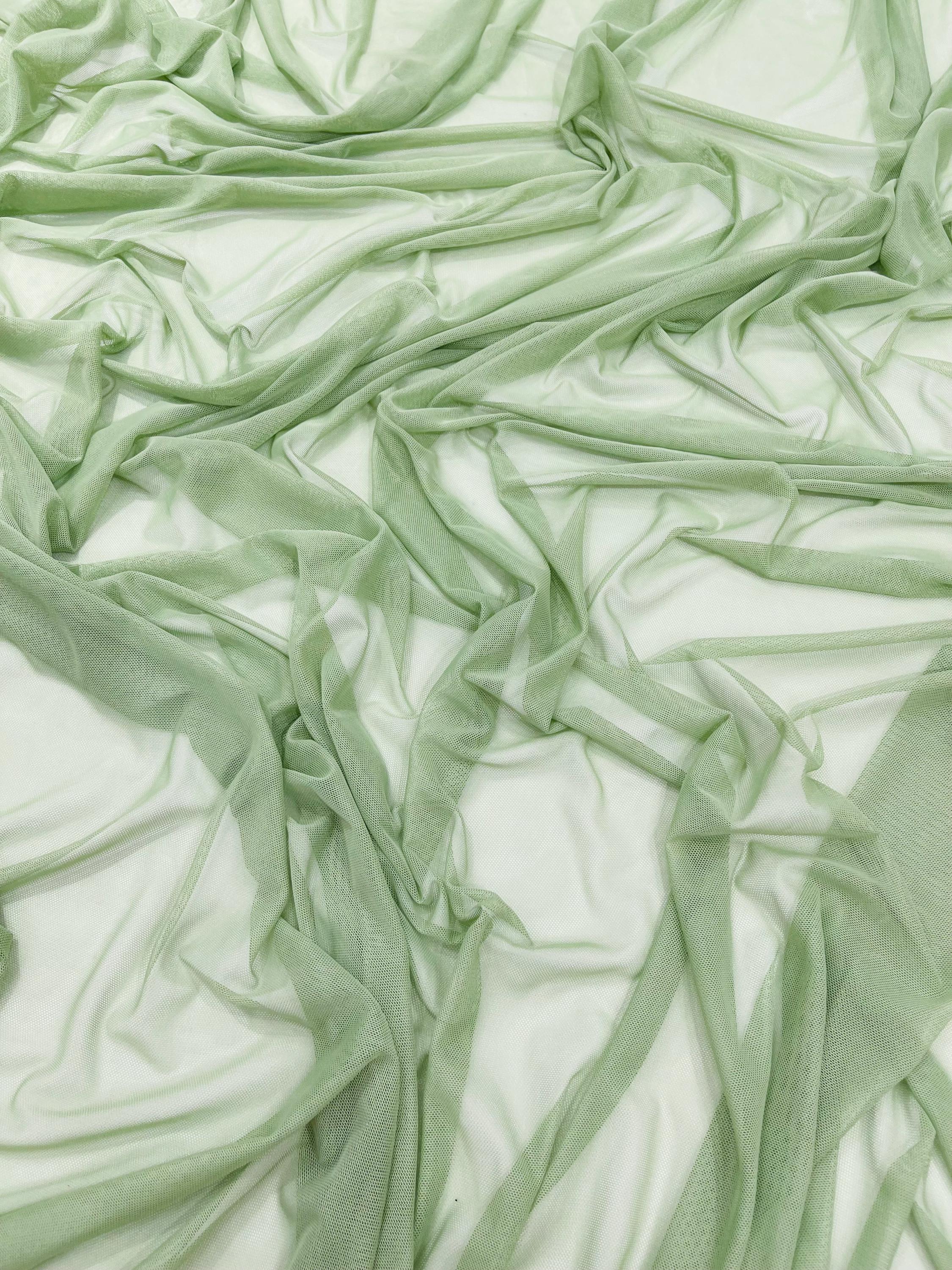 Sage Green Power Mesh Fabric, 4-Way Stretch, 60" Wide, By The Yard