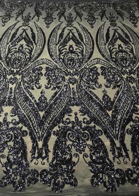 The sequins has especial and extraordinary design on the Mesh . It is super elegant and classy, The royalty design is embroidered with sequins on a mesh and can be used for dresses, tablecloths, backdrops, night gowns, skirts, prom dresses, wedding dresses, runners for tables, decorations and much more.
