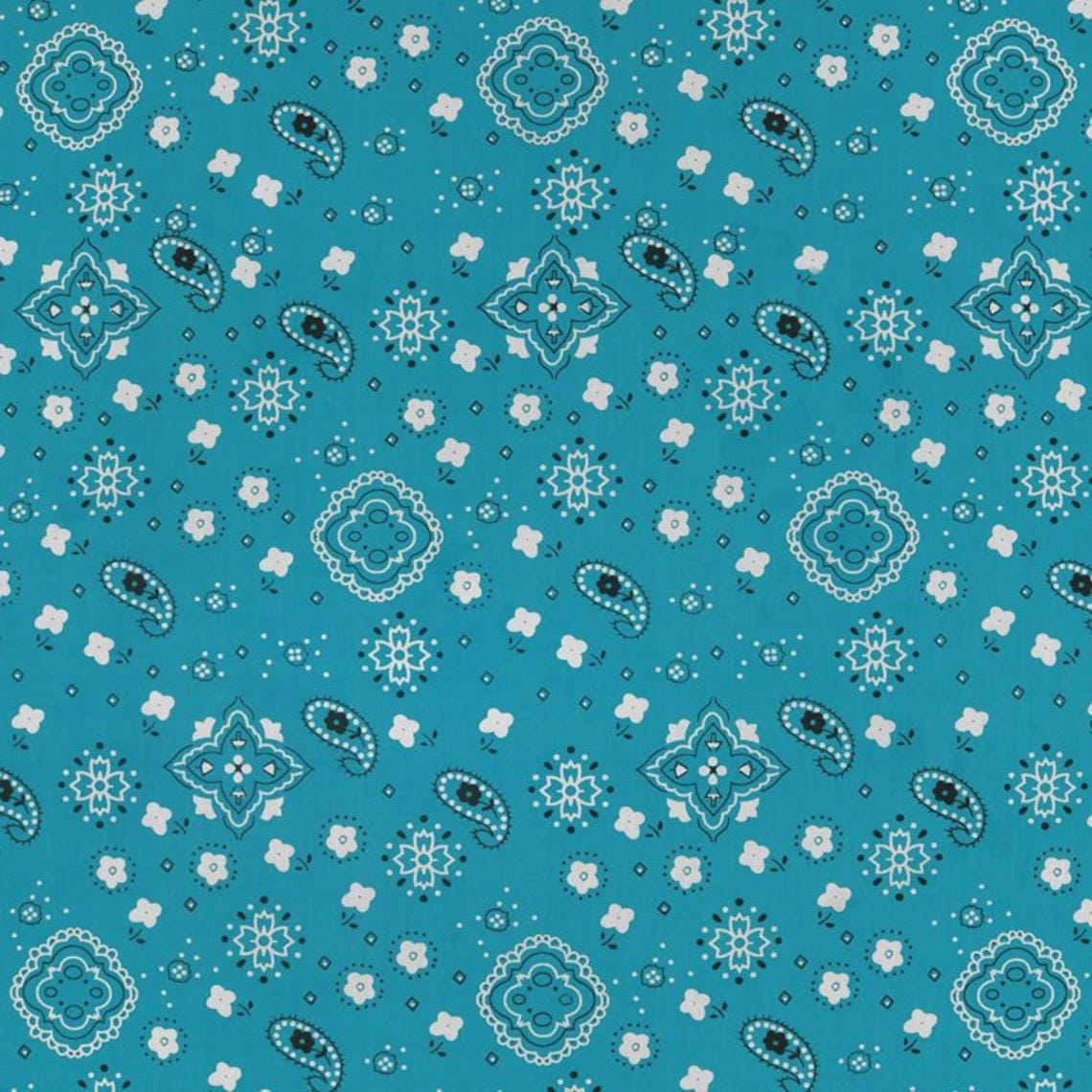 Wonderful bandanna print on a poly cotton fabric. Poly-cotton is a very inexpensive fabric that is light weight and breathable. Make some amazing table cover, runner, handkerchief, or an actual bandanna!