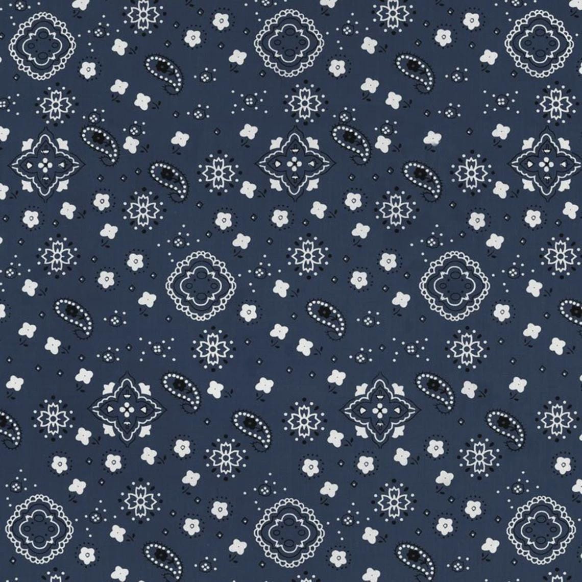 Navy Blue Bandana Print Fabric Cotton/Polyester Sold By The Yard