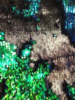This mermaid fish scales has a 2 way stretch to it .this design has two color tones on the design. When you brush it with your fingers it changes colors. All the sequins are stitched and they over lap each other to give it the full look. This sequins can be use for dresses, tablecloths, nightgowns, prom gowns, bridal gowns, wedding gowns.runners, Vegas shows,pillows, decoration and much more.