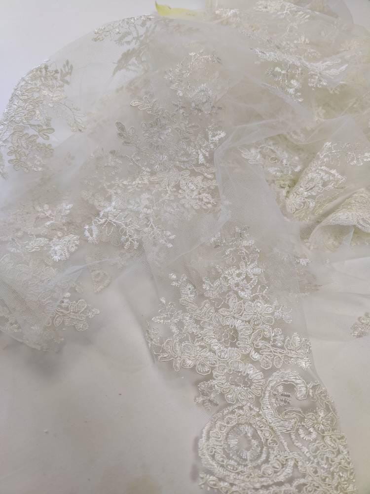 This beautiful fabric is embroider on a 2 way stretch mesh. The lace stretches on the width. This lace has a beautiful border on both sides of the width and beautifully stitch all over .The lace can be use for dresses, tablecloths, runners, decoration, skirts, jackets, nightgowns, prom dresses and much more, Wedding dress, evening gown, formal wear, dresses tops, skirts, costumes, crafts, etc.