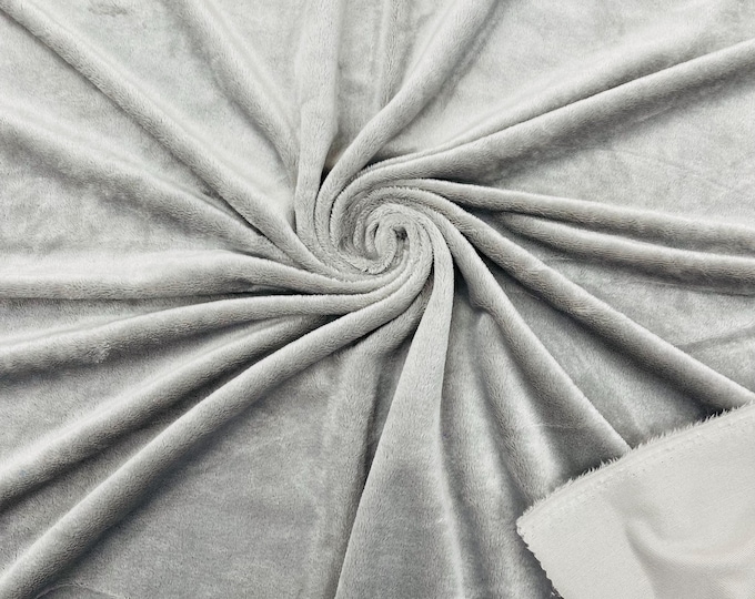 Silver Minky Fabric By The Yard: Ultra Soft 2-Way Stretch, 60" Wide